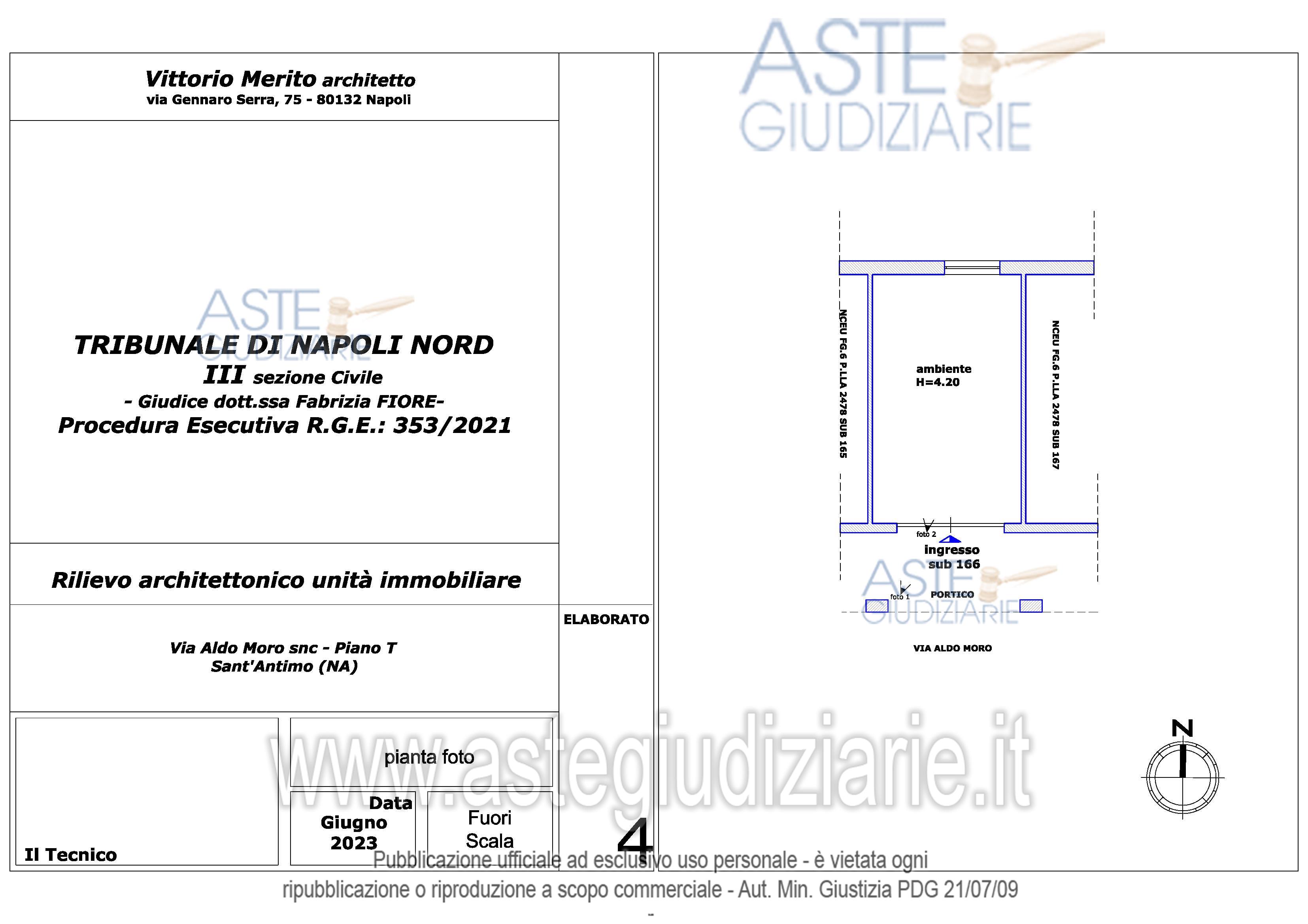 Vendita all'asta Senza incanto, con gara telematica asincrona - LOTTO 5: Locale commerciale. L’unità immobiliare, oggetto del pignoramento, è ubicata nel Comune di Sant’Antimo (Na) a via Aldo Moro snc, piano T – “Parco Omissis”. Il cespite staggito è composto da: n. 1 ambiente. L’immobile risulta allo stato grezzo e ingombro di materiali di risulta. Prezzo base € 37.640,00 (offerta minima € 28.230,00). Data inizio operazioni di vendita: 27/11/2025 ore 16:00. Custode Giudiziario Dott. Francesco Russo - Email "studiocasillorusso@libero.it"; Tel. 0815404454. Rif. Tribunale di Napoli Nord - Esecuzione immobiliare post legge 80 n. 353/2021