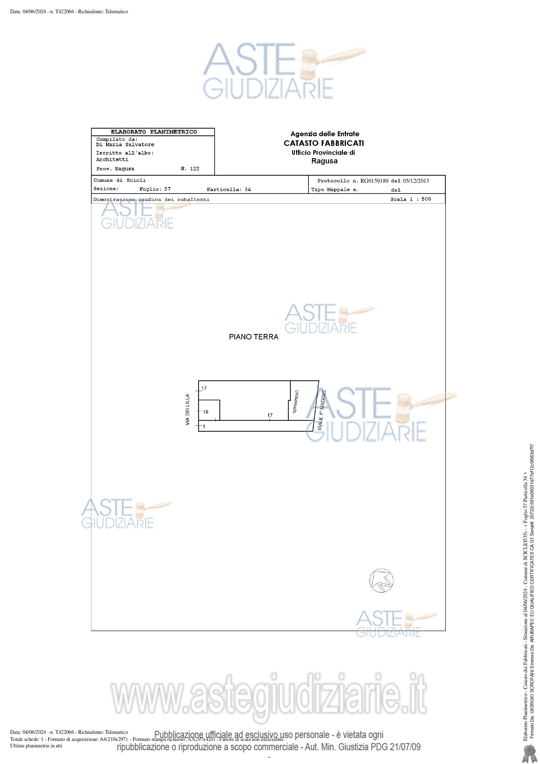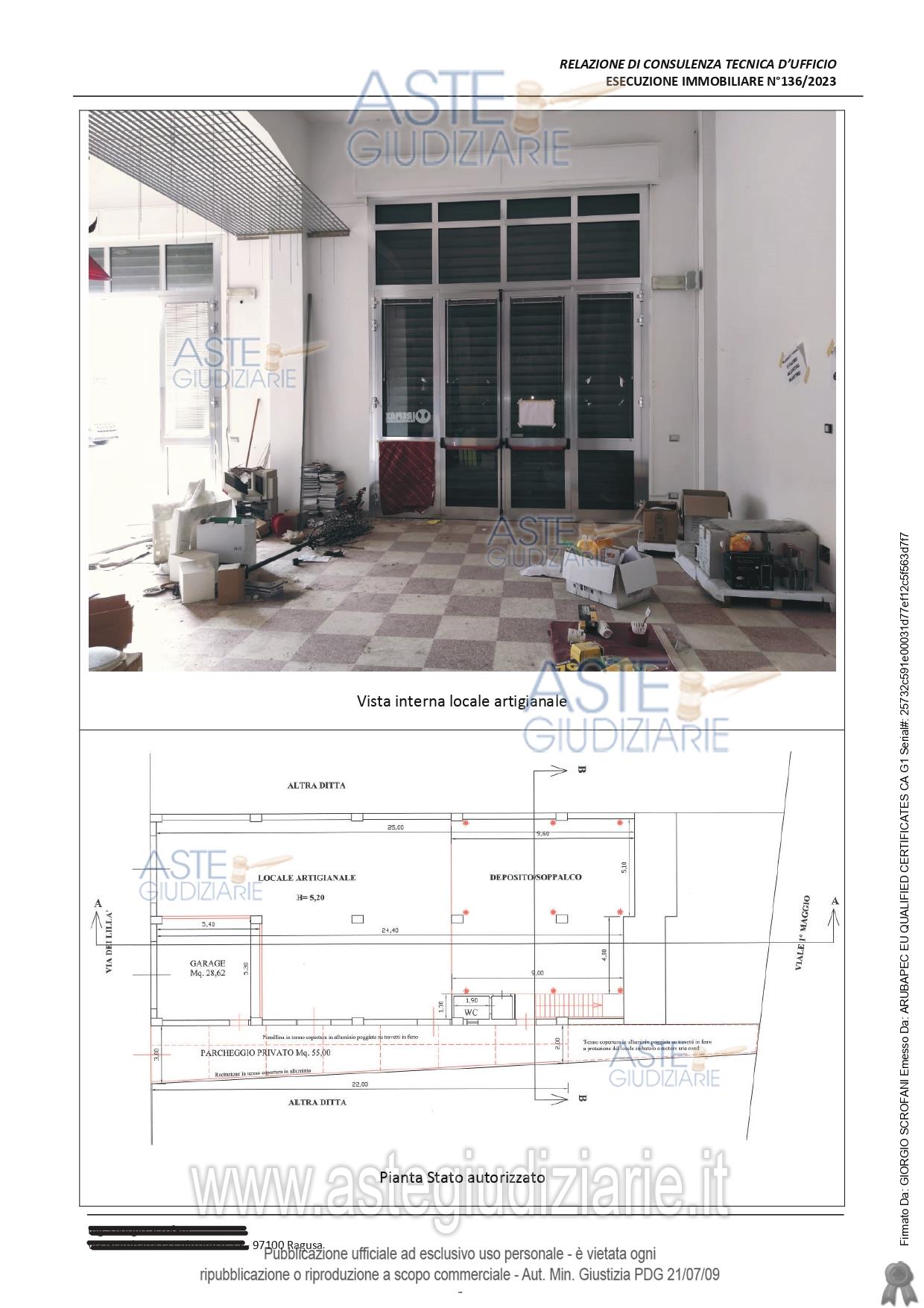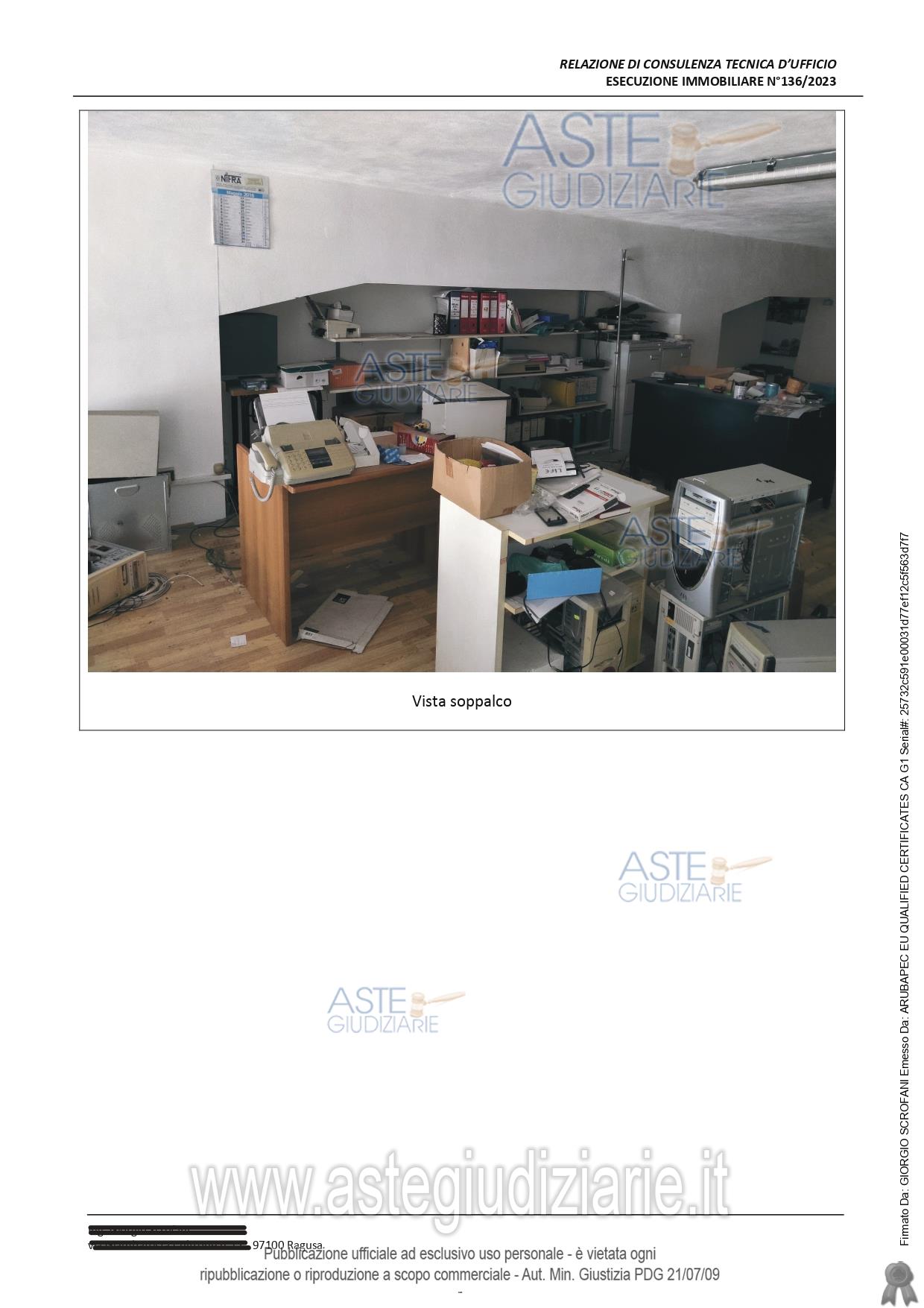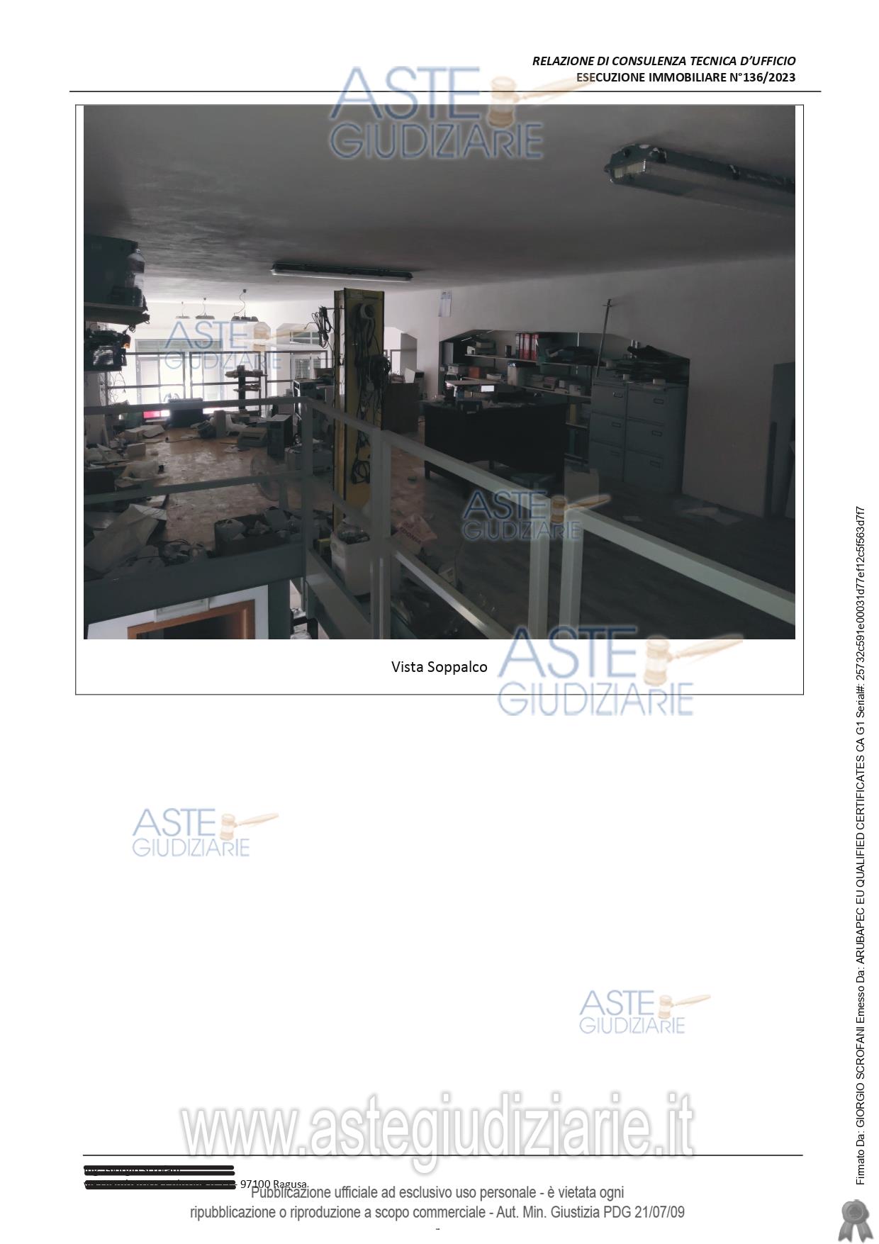 Vendita all'asta Senza incanto, con gara telematica sincrona mista - LOTTO UNICO: Piena proprietà di fabbricato per attività commerciale ricadente nella zona B2 del P.R.G. ed al piano terra di un palazzo multipiano. La superficie complessiva è di 387,06 mq. Prezzo base € 96.609,38 (offerta minima € 72.457,04). Data vendita 11/12/2025 ore 16:00. Giudice Carlo Di Cataldo. Professionista delegato alla vendita Avv. Pietro Belluardo - Email "pbelluardo@virgilio.it". Custode Giudiziario Avv. Pietro Belluardo - Email "pbelluardo@virgilio.it"; Tel. 0932764104. Rif. Tribunale di Ragusa - Espropriazione immobiliare (cartabia) n. 136/2023
