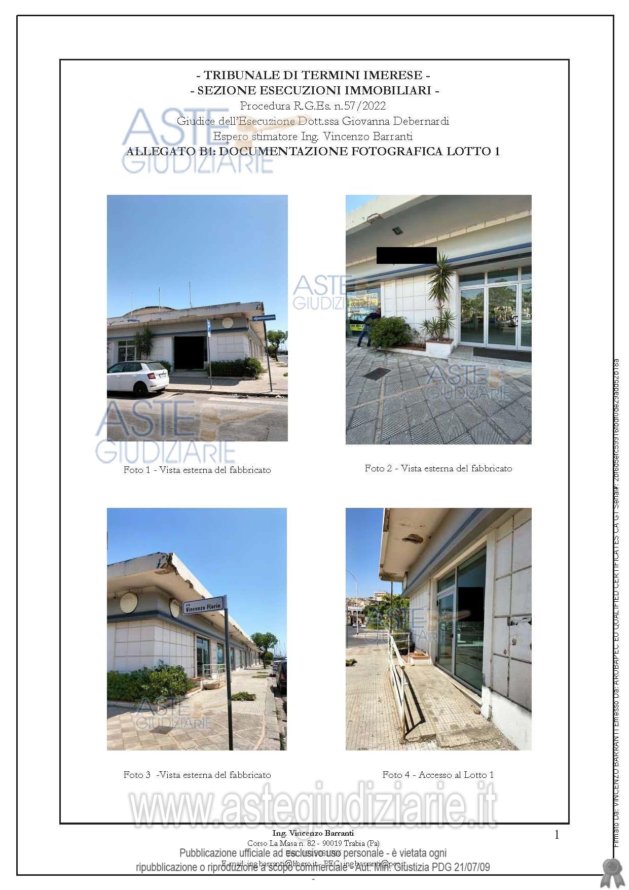 Vendita all'asta Senza incanto, con gara telematica sincrona - LOTTO 1: Piena proprietà di un’unità immobiliare adibita ad attività commerciale, sita al piano terra di un fabbricato. Prezzo base € 1.316.172,42 (offerta minima € 987.129,32). Data vendita 14/04/2026 ore 14:30. Giudice Marouene Balsano. Professionista delegato alla vendita Avv. Tommaso Greco - Email "tommasogreco@legalmail.it"; Cell. 3687217251. Custode Giudiziario Avv. Tommaso Greco - Email "tommasogreco@legalmail.it"; Cell. 3687217251. Rif. Tribunale di Termini Imerese - Esecuzione immobiliare post legge 80 n. 57/2022