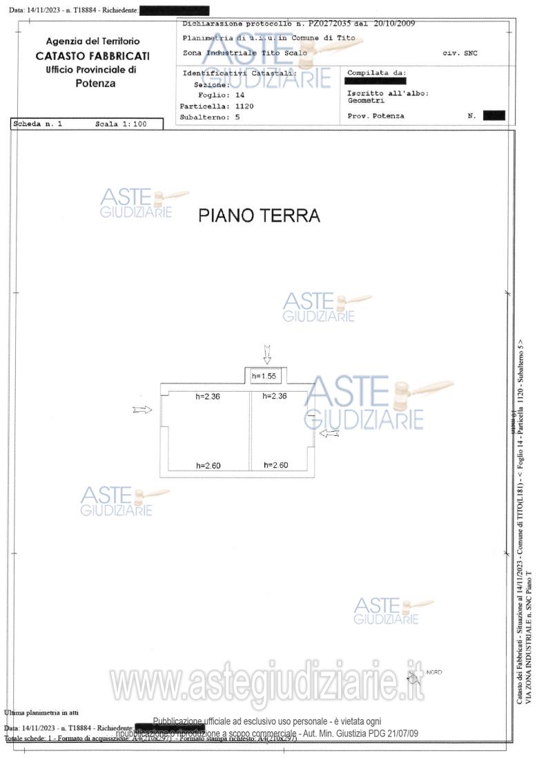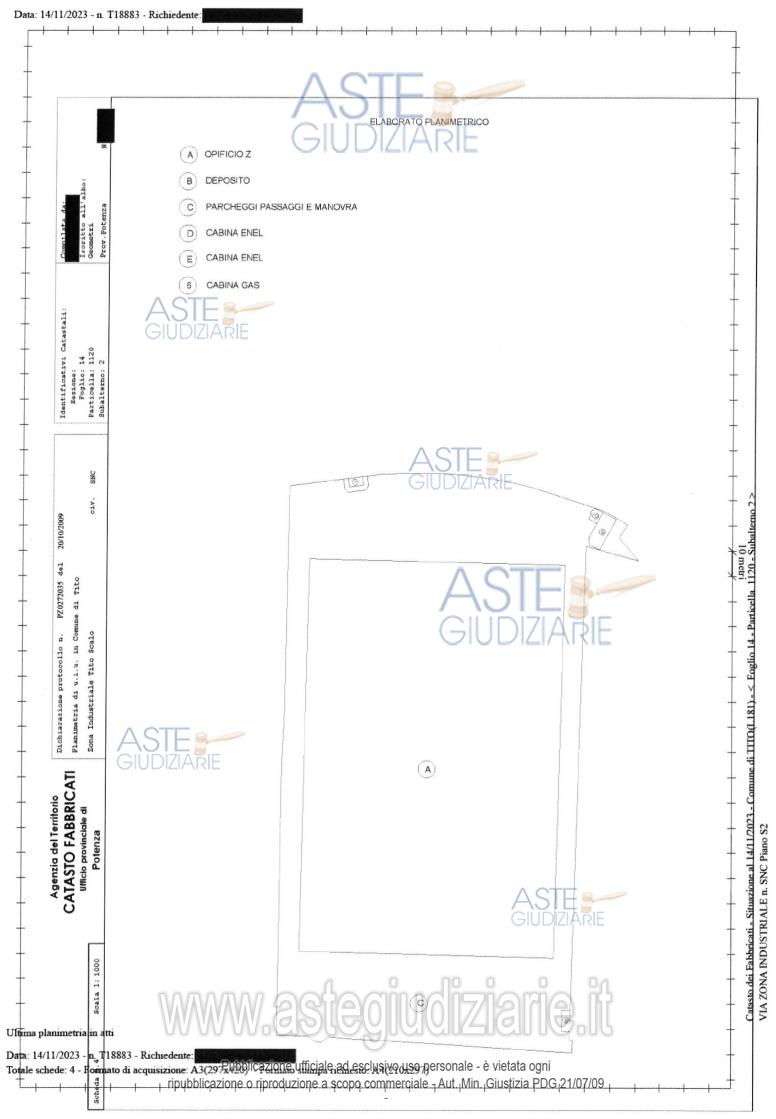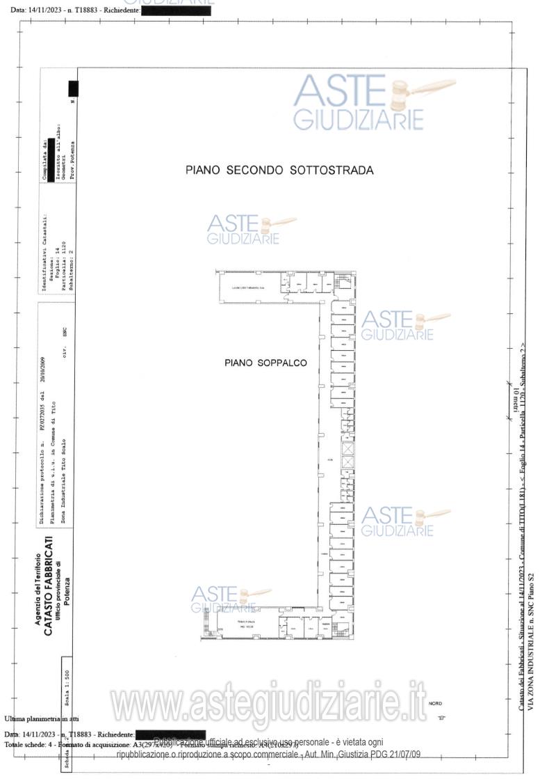 Vendita in attesa dell'emissione del nuovo bando d'asta. LOTTO UNICO: Complesso edilizio in Tito alla Zona Industriale di Tito Scalo di circa 18.500 mq. costituito da: immobile destinato ad attività commerciale all’ingrosso di prodotti alimentari e attività di centro distributivo, soppalco destinato ad uffici e servizi, deposito, tettoia e area esterna destinata a viabilità e parcheggi, cabina elettrica e cabina trasformazione gas in catasto al foglio 14 particella 1120 sub 2,5 e7.Costituisce pertinenza dei fabbricati la particella 1120 sub 1 come bene comune non censibile. Ultimo prezzo base € 6.030.000,00 (offerta minima € 4.522.500,00). Giudice Davide Visconti. Professionista delegato alla vendita Not. Francesco Carretta - Email "fcarretta@notariato.it"; Tel. 097283380. Custode Giudiziario Not. Francesco Carretta - Email "fcarretta@notariato.it"; Tel. 097283380. Rif. Tribunale di Potenza - Esecuzione immobiliare post legge 80 n. 78/2021