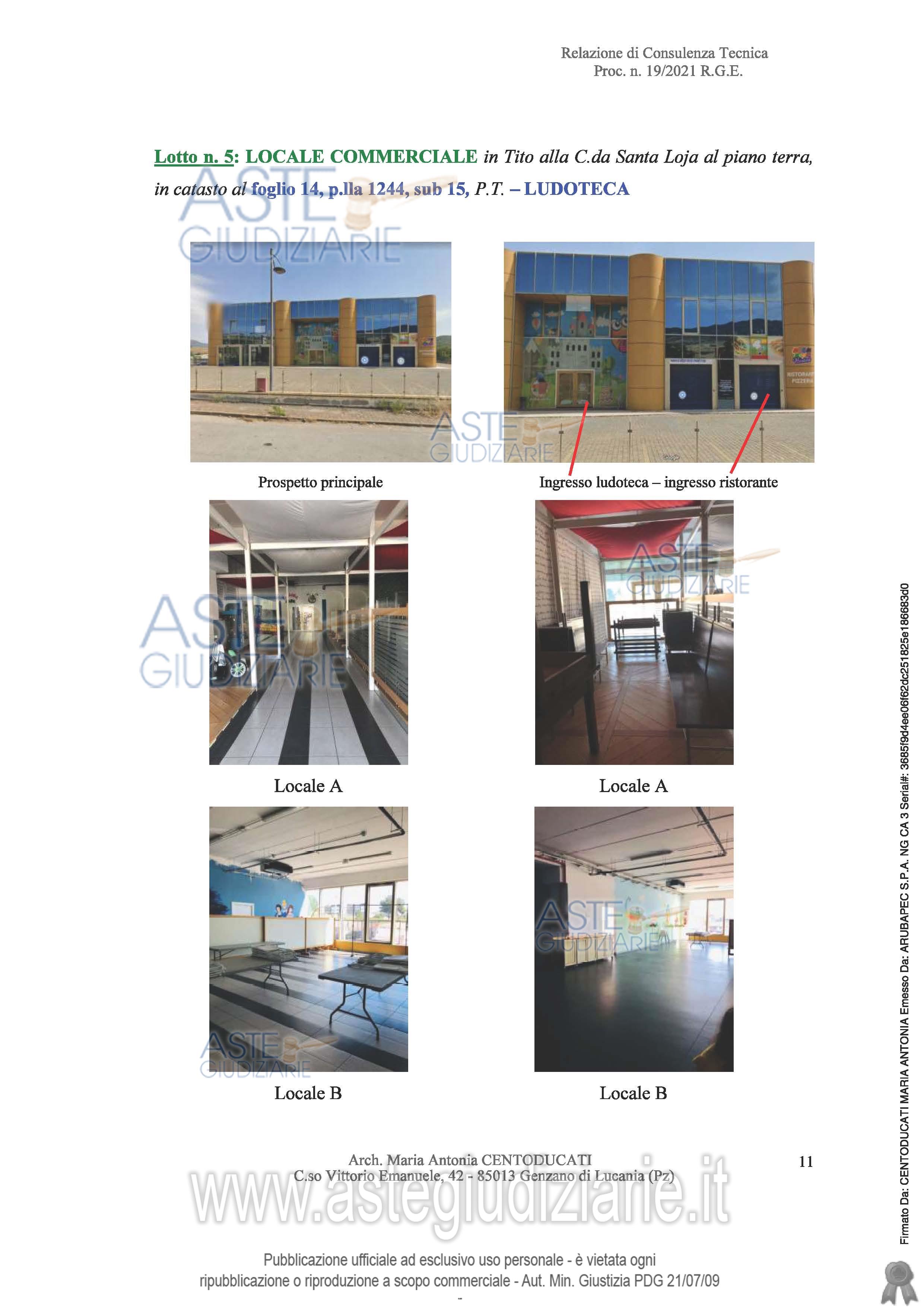 Vendita all'asta Senza incanto, con gara telematica asincrona - LOTTO 5: piena ed intera proprietà (1/1) di un locale commerciale di circa mq. 1.100, situato al piano terra di un fabbricato adibito ad attività commerciale situato alla c.da Santa Loja del comune di TITO (PZ). Prezzo base € 573.750,00 (offerta minima € 430.312,50). Data inizio operazioni di vendita: 25/06/2026 ore 11:00. Professionista delegato alla vendita: Avv. Francesco Missanelli - Email "francescomissanelli@gmail.com"; Tel. 0971/443116.