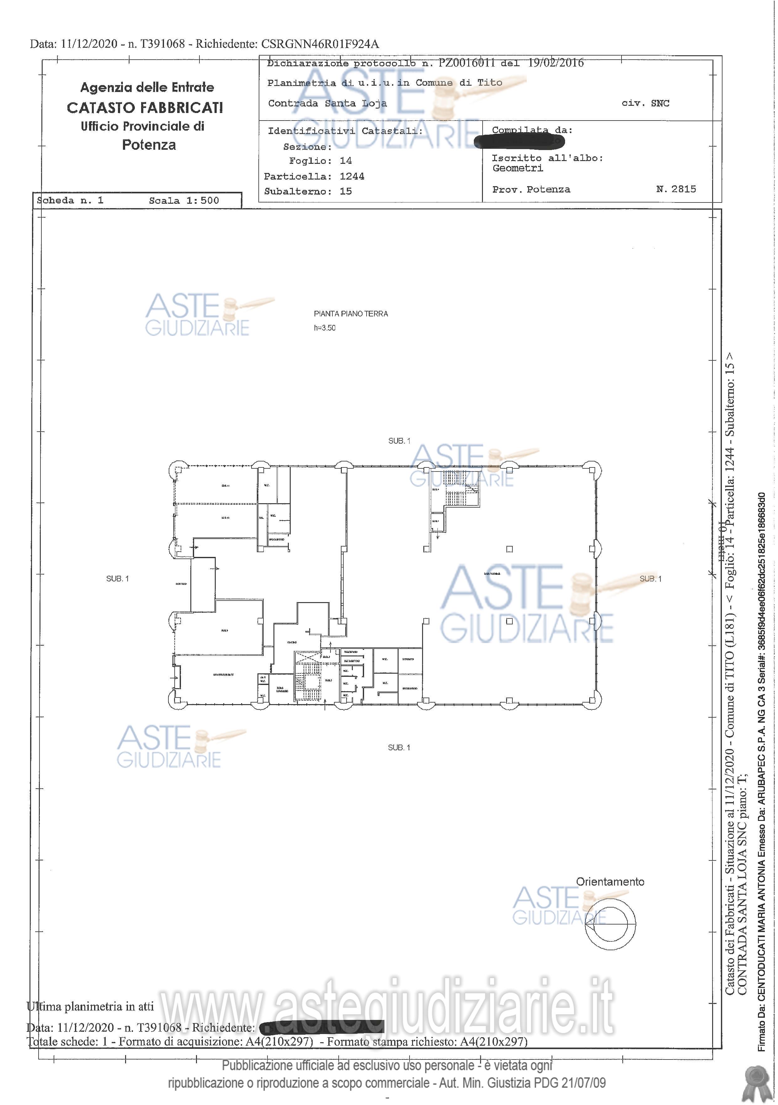 Custode Giudiziario: Avv. Monica Dea De Luca - Email "avv.monicadeadeluca@gmail.com"; Tel. 0971/287426.