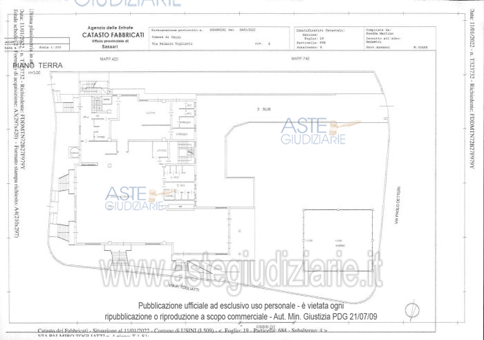 Vendita all'asta Senza incanto - LOTTO 1: Fabbricato ad uso commerciale ubicato in Usini alla Via P. Togliatti n.4, composto da ristorante, pizzeria bar, autorimessa e un bene comune non censibile, censiti rispettivamente al NCEU del Comune di Usini al foglio 19, mappale 684 sub.4 cat.C/1,piano S1-T-1, mappale 684 sub 2 cat.C/6, piano S1, e mappale 684 sub 3 cat.E.U. Sussistono irregolarità catastali e difformità edilizie, sanabili e non sanabili, come descritto nella perizia del Dr. Agr. Giovanni Battista Lupino a cui si rimanda. Prezzo base € 236.118,16 (offerta minima € 177.088,62). Data vendita 04/02/2026 ore 16:30. Professionista delegato alla vendita Avv. Francesca Pes - Email "info.slpessassari@gmail.com"; Tel. 079234937. Custode Giudiziario Istituto Vendite Giudiziarie Sassari - Email "visitaivgsassari@gmail.com"; Tel. 079260228. Rif. Tribunale di Sassari - Esecuzione immobiliare post legge 80 n. 137/2019