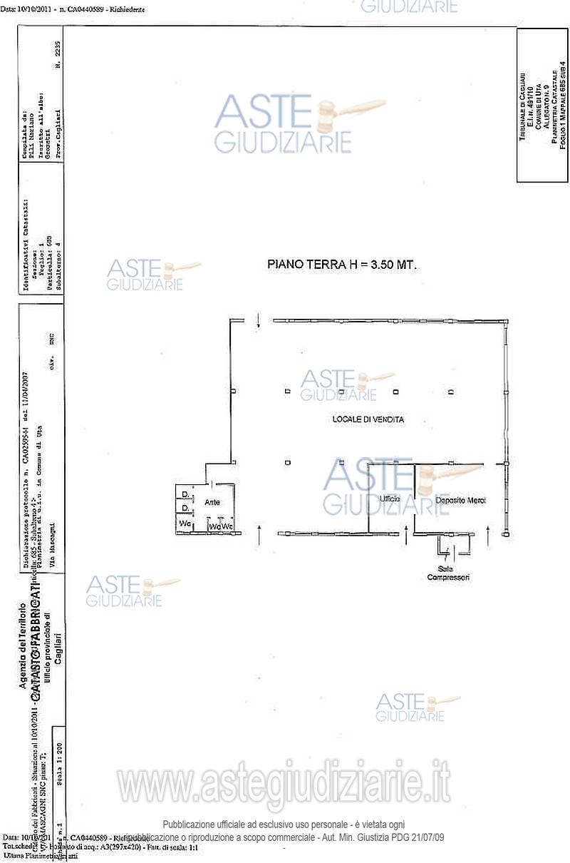 Vendita all'asta Senza incanto - LOTTO 2: Lotto n°2) Piena proprietà della porzione di fabbricato ad uso commerciale ubicato al piano terra e primo del maggior fabbricato, composto da: locale vendita, due magazzini, e area pertinenziale al piano terra; locale vendita, due uffici, antibagno, bagno e archivio al piano primo. Prezzo base € 180.500,00 (offerta minima € 135.375,00). Data vendita 29/10/2025 ore 11:00. Giudice Dott. Flaminia Ielo. Professionista delegato alla vendita Not. Paolo Tardiola - Email "andodero@studiododero.it"; Tel. 07060222574. Rif. Tribunale di Cagliari - Esecuzione immobiliare post legge 80 n. 491/2010