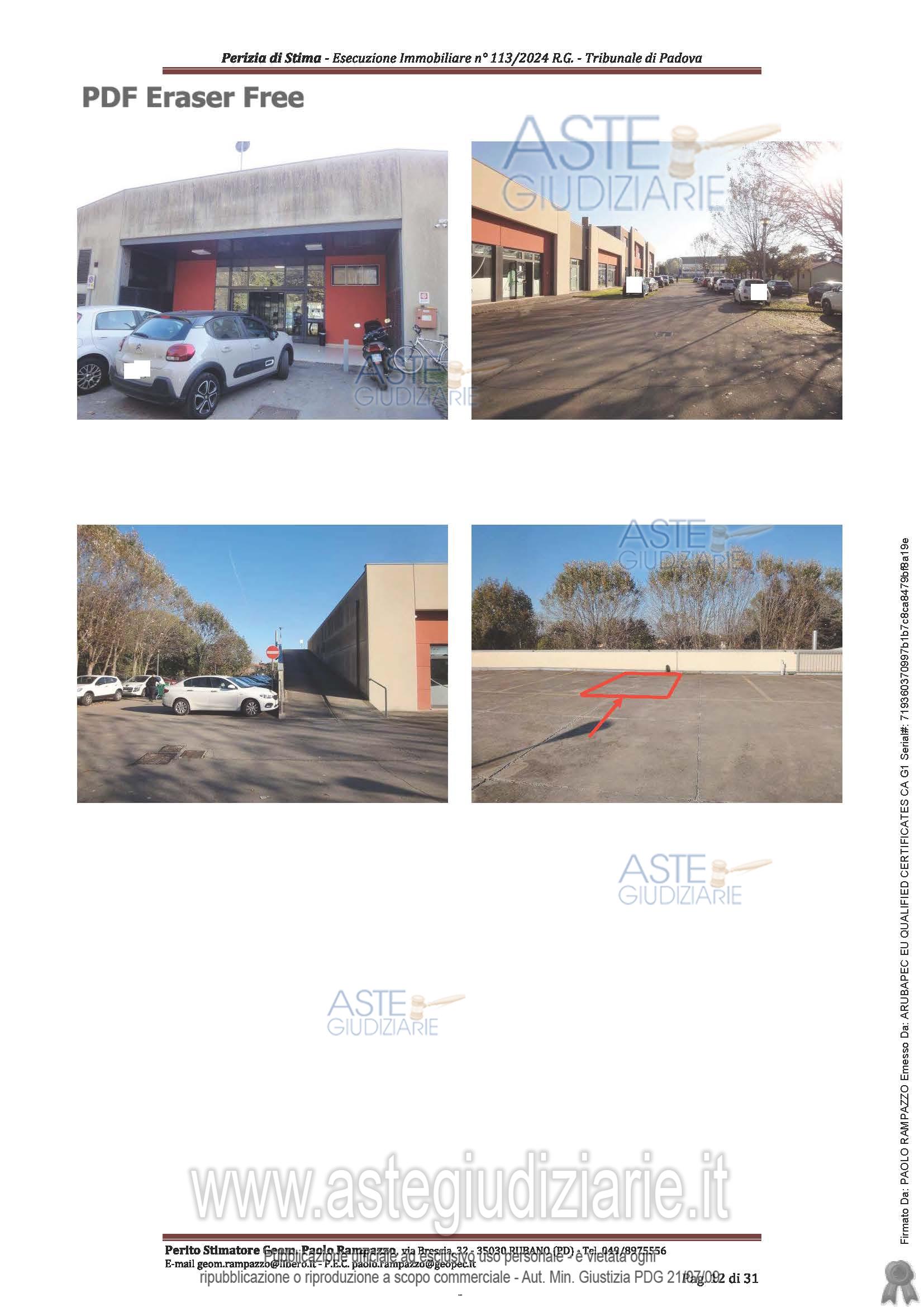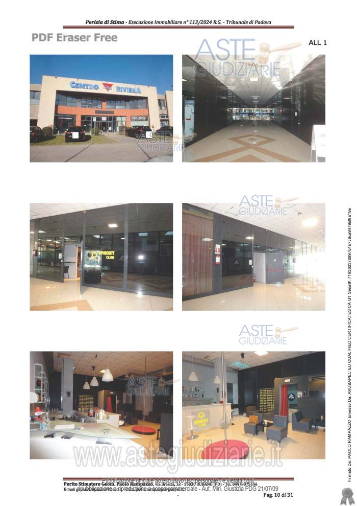 Vendita all'asta Senza incanto, con gara telematica sincrona - LOTTO UNICO: Locale commerciale al piano terra, fronte galleria, con compartimentazioniinterne, servizio igienico con antibagno e spogliatoio per complessivi lordi mq. 107,00 ca. Posto auto scoperto al piano p. Prezzo base € 90.400,00 (offerta minima € 67.800,00). Data vendita 06/05/2026 ore 16:00. Giudice Giovanni G Amenduni. Professionista delegato alla vendita Dott. Chiara Marchetto - Email "procedure@studiotmv.it". Custode Giudiziario Dott. Chiara Marchetto - Email "procedure@studiotmv.it"; Tel. 049652479. Rif. Tribunale di Padova - Espropriazione immobiliare (cartabia) n. 113/2024