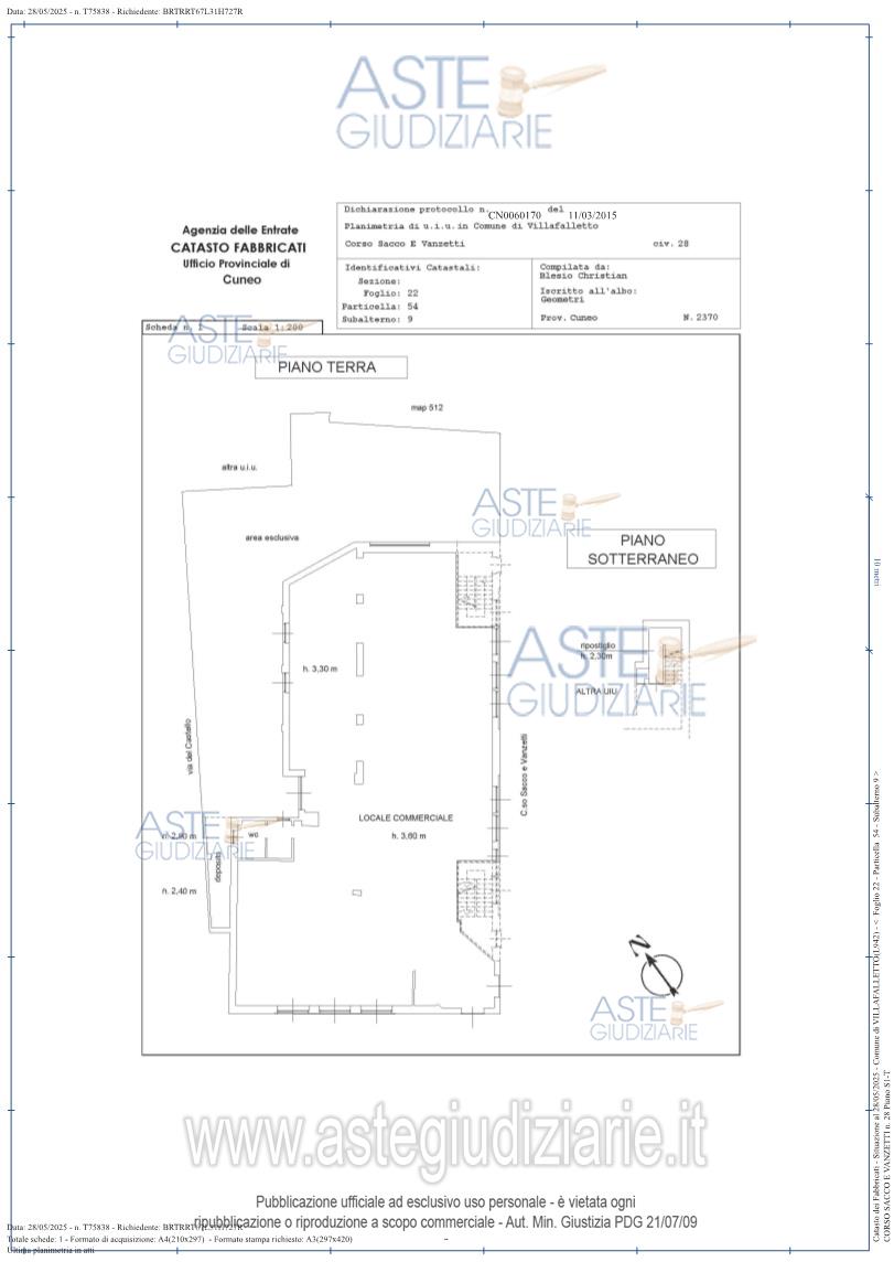 Vendita all'asta Senza incanto, con gara telematica asincrona - LOTTO UNICO: Lotto Unico in Comune di Villafalletto (CN) corso Sacco e Vanzetti n.28. Prezzo base € 370.800,00 (offerta minima € 278.100,00). Data inizio operazioni di vendita: 19/05/2026 ore 15:30. Professionista delegato alla vendita Dott. Rellecke Nasi Matteo - Email "studionasi@gmail.com". Custode Giudiziario Istituto Vendite Giudiziarie - Ifir Piemonte Ivg - Email "richiestevisite.cuneo@ivgpiemonte.it". Rif. Tribunale di Cuneo - Espropriazione immobiliare (cartabia) n. 52/2025