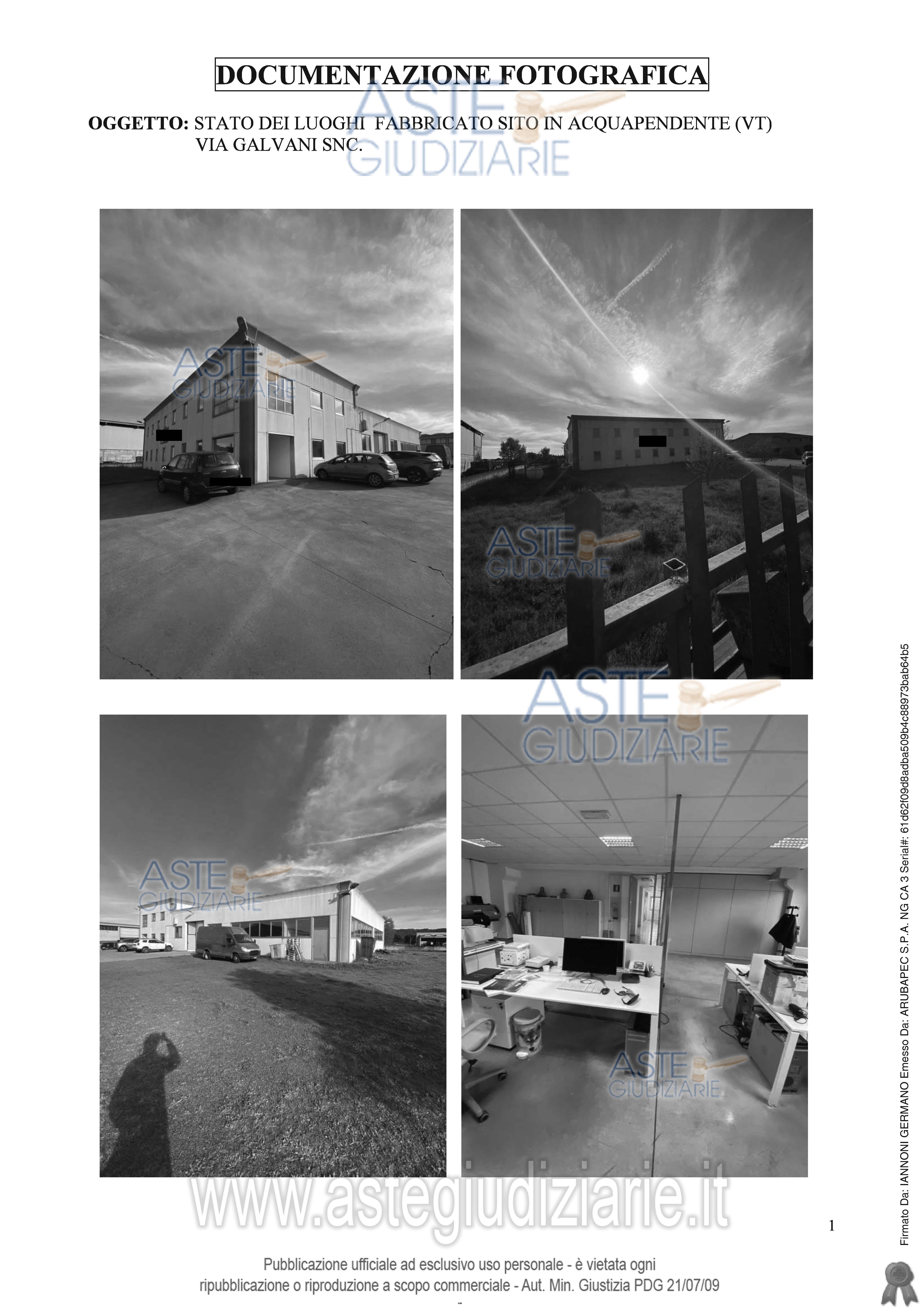 Vendita all'asta Senza incanto, con gara telematica asincrona - LOTTO 1: Fabbricato a destinazione industriale, ai piani terreno e primo, con accesso dalla strada comunale, costituito da capannone prefabbricato per una superficie utile di mq. 840,00 circa, oltre area di pertinenza di mq 265 circa, il tutto meglio descritto in avviso di vendita. Prezzo base € 356.250,00 (offerta minima € 267.188,00). Data inizio operazioni di vendita: 06/05/2026 ore 13:00. Professionista delegato alla vendita Not. Lauretta Casadei - Email "info@rasnoviri.it"; Tel. 0761351236. Custode Giudiziario Not. Lauretta Casadei - Email "info@rasnoviri.it"; Tel. 0761351236. Rif. Tribunale di Viterbo - Esecuzione immobiliare post legge 80 n. 75/2024