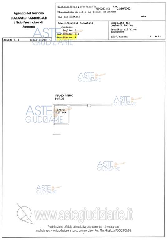 Vendita all'asta Senza incanto, con gara telematica asincrona - LOTTO 1: Locale caldaia e cabina elettrica. Prezzo base € 29.400,00 (offerta minima € 22.050,00). Data inizio operazioni di vendita: 21/04/2026 ore 12:15. Professionista delegato alla vendita Dott. Gabriele Vacca. Custode Giudiziario Dott. Gabriele Vacca - Email "info@studiogvacca.it". Rif. Tribunale di Ancona - Espropriazione immobiliare (cartabia) n. 22/2025