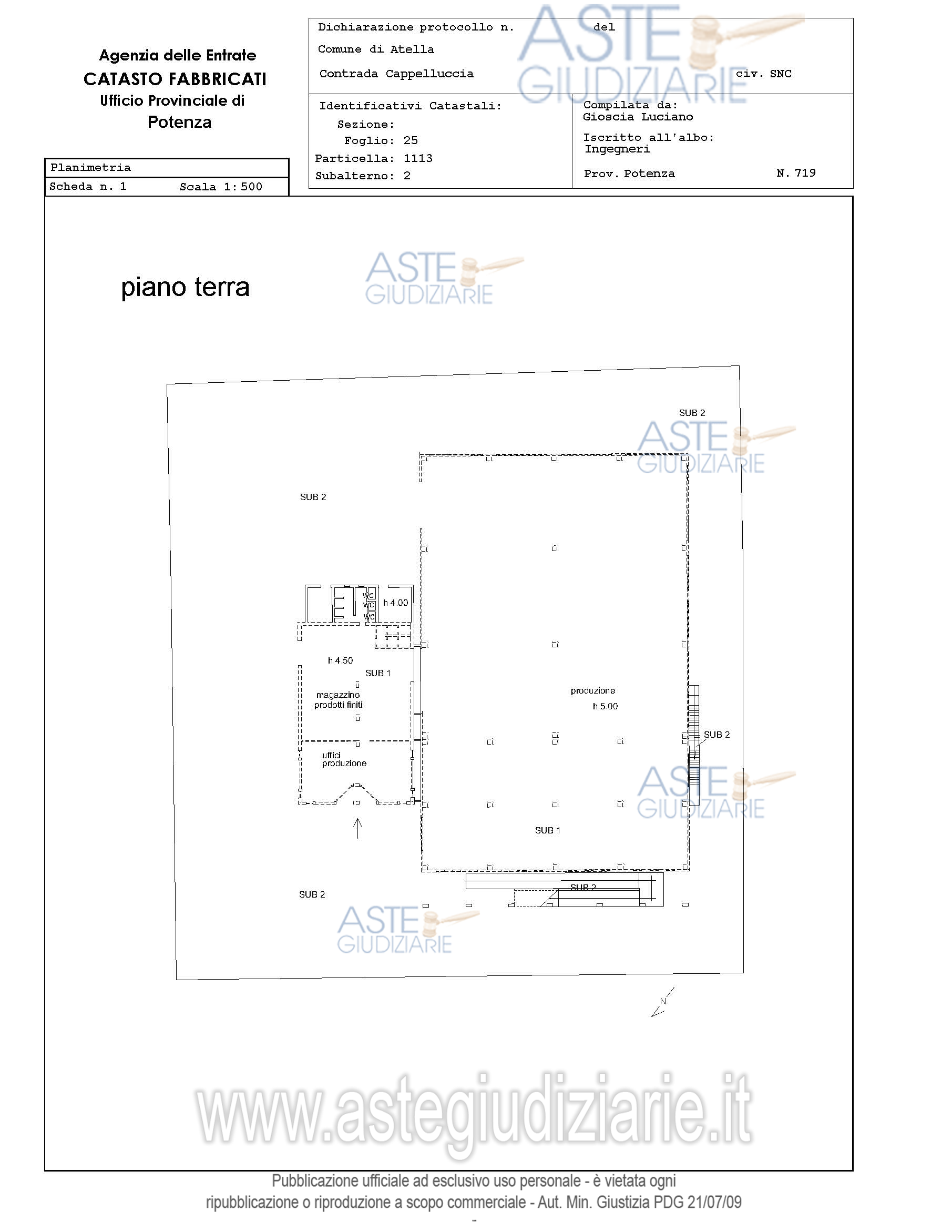 Vendita all'asta Senza incanto - LOTTO UNICO: Complesso Immobiliare in zona PIP - Atella - C/da Cappelluccia costituito da Fabbricato destinato ad uffici produzione e magazzino prodotti finiti;Capannone prefabbricato adibito a reparto produzione e lavorazione; - Uffici ed esposizione al piano primo; Locali tecnici ; Area esterna destinata a viabilità, piazzali e verde - oltre attrezzature e macchinari. Prezzo base € 309.937,50 (offerta minima € 232.453,00). Data vendita 07/02/2026 ore 09:30. Professionista delegato alla vendita Avv. Antonio Calice - Email "studiocalice@virgilio.it"; Cell. 3356090455; Tel. 0972720015. Curatore Avv. Bruno Campione - Email "avv.brunocampione@gmail.com"; Cell. 3385672329; Tel. 0815634258. Rif. Tribunale di Potenza ex Tribunale di Melfi - Fallimentare (nuovo rito) n. 578/2008
