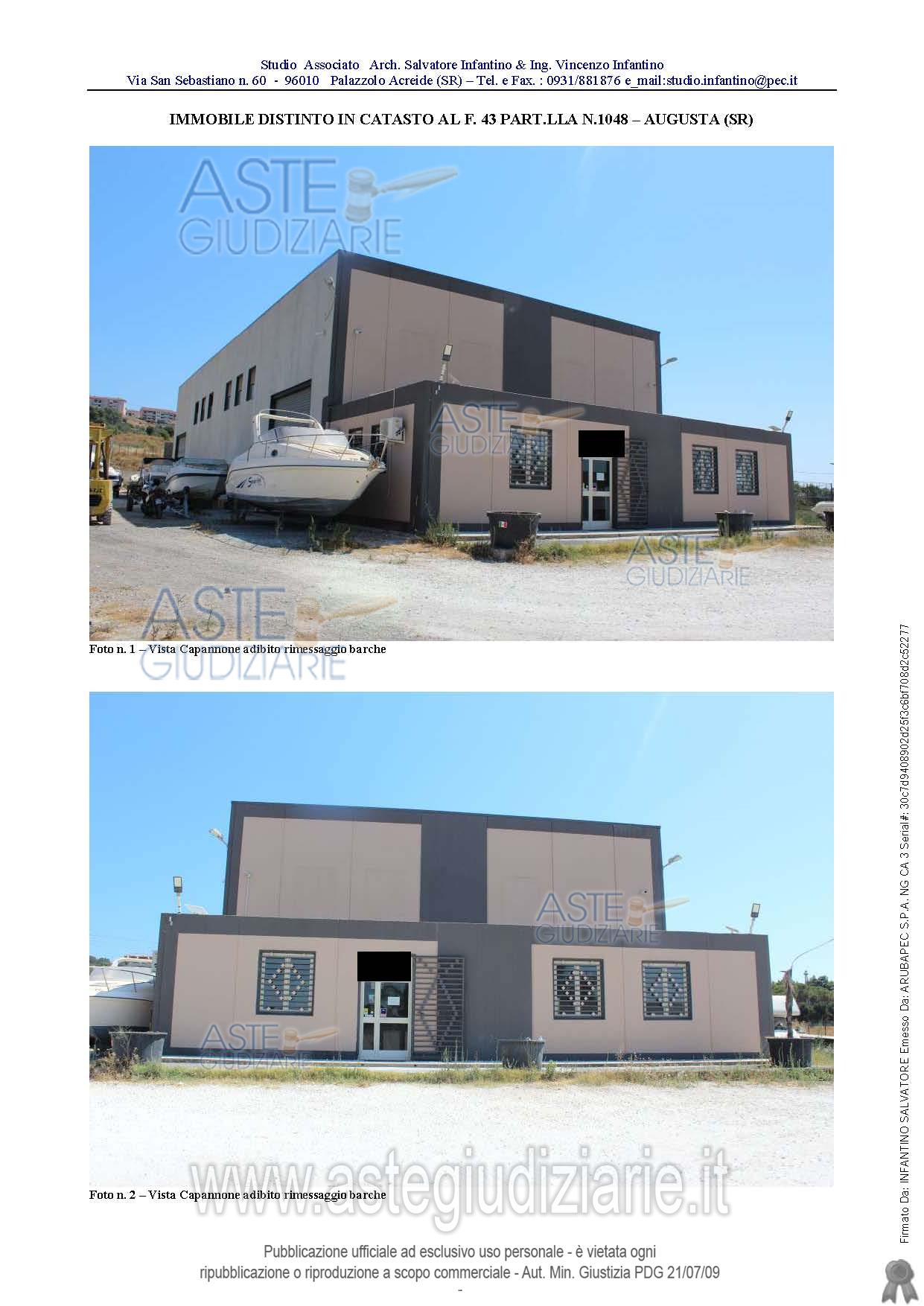 Vendita all'asta Senza incanto, con gara telematica sincrona mista - LOTTO 1: Capannone per attività industriale attualmente adibito a rimessaggio barche . Prezzo base € 191.250,00 (offerta minima € 143.438,00). Data vendita 16/01/2026 ore 11:00. Professionista delegato alla vendita Avv. Antonio Carpinteri - Email "avv.antoniocarpinteri@gmail.com"; Cell. 3515000728. Custode Giudiziario Avv. Antonio Carpinteri - Email "avv.antoniocarpinteri@gmail.com"; Cell. 3515000728. Rif. Tribunale di Siracusa - Esecuzione immobiliare post legge 80 n. 62/2021