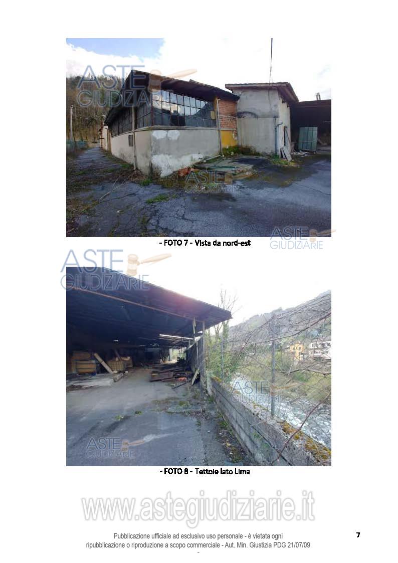 Vendita in attesa dell'emissione del nuovo bando d'asta. LOTTO 1: Diritti piena proprietà su Capannone artigianale in Comune di Bagni di Lucca,Strada Statale n.12 dell’Abetone e del Brennero n.128, fraz.Ponte a Serraglio,superficie 4.554 mq.L’edificio è costituito da vari corpi di fabbrica,elevati in parte ad uno ed in parte a due piani fuori terra, oltre manufatti accessori adiacenti ai lati sud-ovest, nord-ovest e nord-est ad un unico piano fuori terra. Ultimo prezzo base € 443.173,95 (offerta minima € 332.380,46). Professionista delegato alla vendita Avv. Michele Avvocato Giorgetti - Email "avv.giorgetti@gmail.com"; Tel. 0583316928. Custode Giudiziario Ivg Lucca Sofir Srl - Email "custodieivg@gmail.com"; Tel. 0583418555. Rif. Tribunale di Lucca - Esecuzione immobiliare post legge 80 n. 155/2018