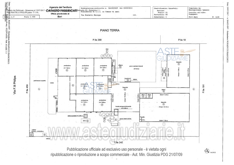 Vendita all'asta Senza incanto, con gara telematica asincrona - LOTTO UNICO: Industrial building divided into several sections, including external facilities. Prezzo base € 1.500.000,00 (offerta minima € 1.125.000,00). Data inizio operazioni di vendita: 21/04/2026 ore 11:00. Giudice Dott. Raffaella Simone. Custode Giudiziario Aste Giudiziarie Inlinea S.P.A. - Email "vendite@astegiudiziarie.it"; Tel. 0586 201480. Curatore Avv. Fabio Di Cagno - Tel. 080 5227572. Rif. Tribunale di Bari - Fallimentare (nuovo rito) n. 43/2017
