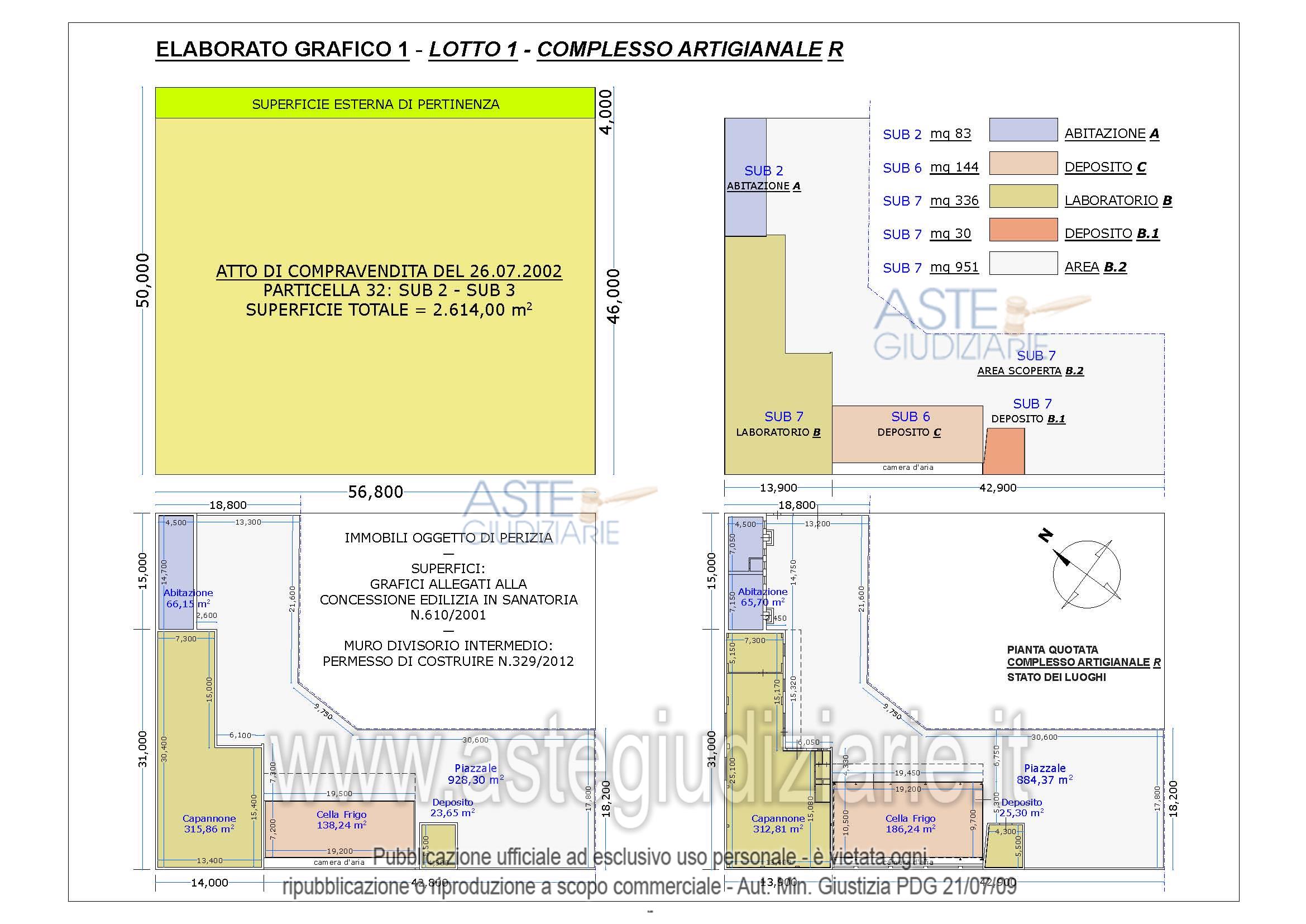 Vendita all'asta Senza incanto, con gara telematica asincrona - LOTTO UNICO: Propriété pleine et parfaite du complexe immobilier composé de plusieurs unités, destiné à un usage artisanal et industriel, plus précisément :