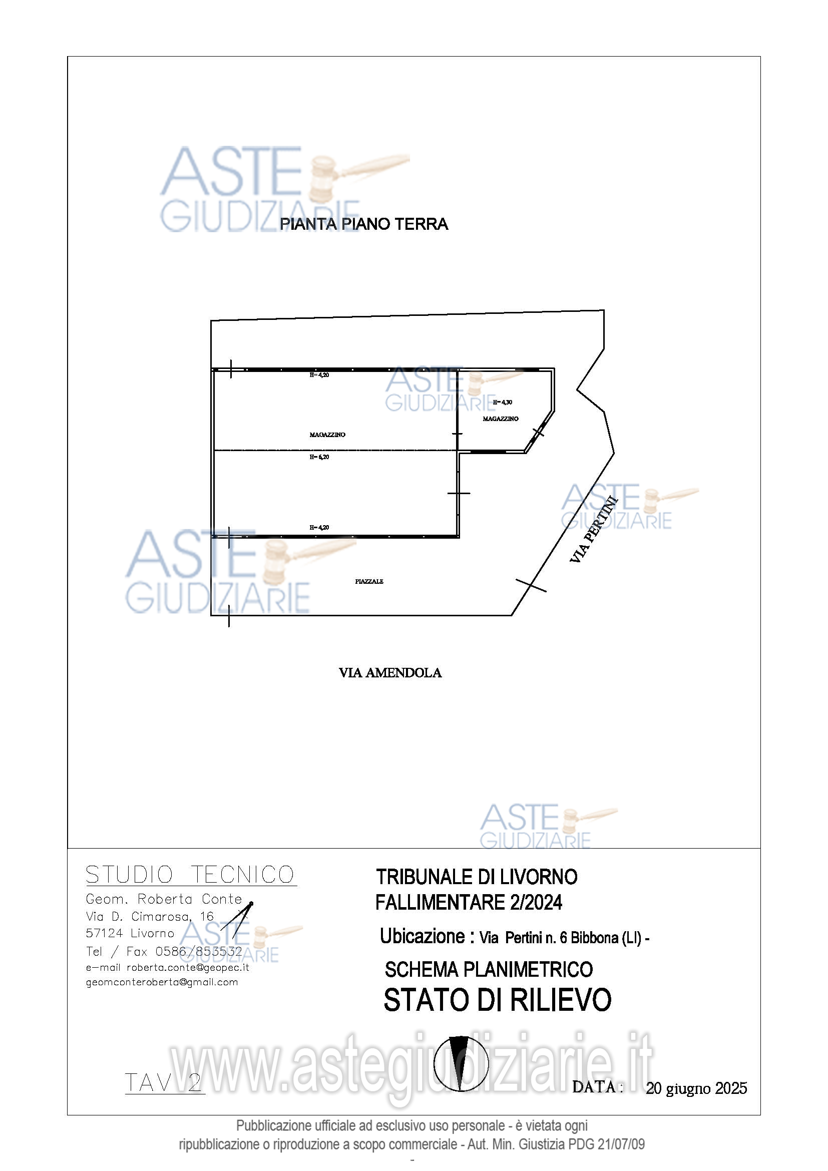 Vendita in attesa dell'emissione del nuovo bando d'asta. LOTTO 3: Capannone a destinazione artigianale oltre ad una area esterna di 475 mq. Ultimo prezzo base € 244.000,00 (offerta minima € 183.000,00). Giudice Elisa Pinna. Custode Giudiziario Dott. Michele Lorenzini - Email "michele@lorenziniboni.it"; Tel. 0586684721. Curatore Dott. Michele Lorenzini - Email "michele@lorenziniboni.it". Rif. Tribunale di Livorno - Fallimentare (nuovo rito) n. 2/2024