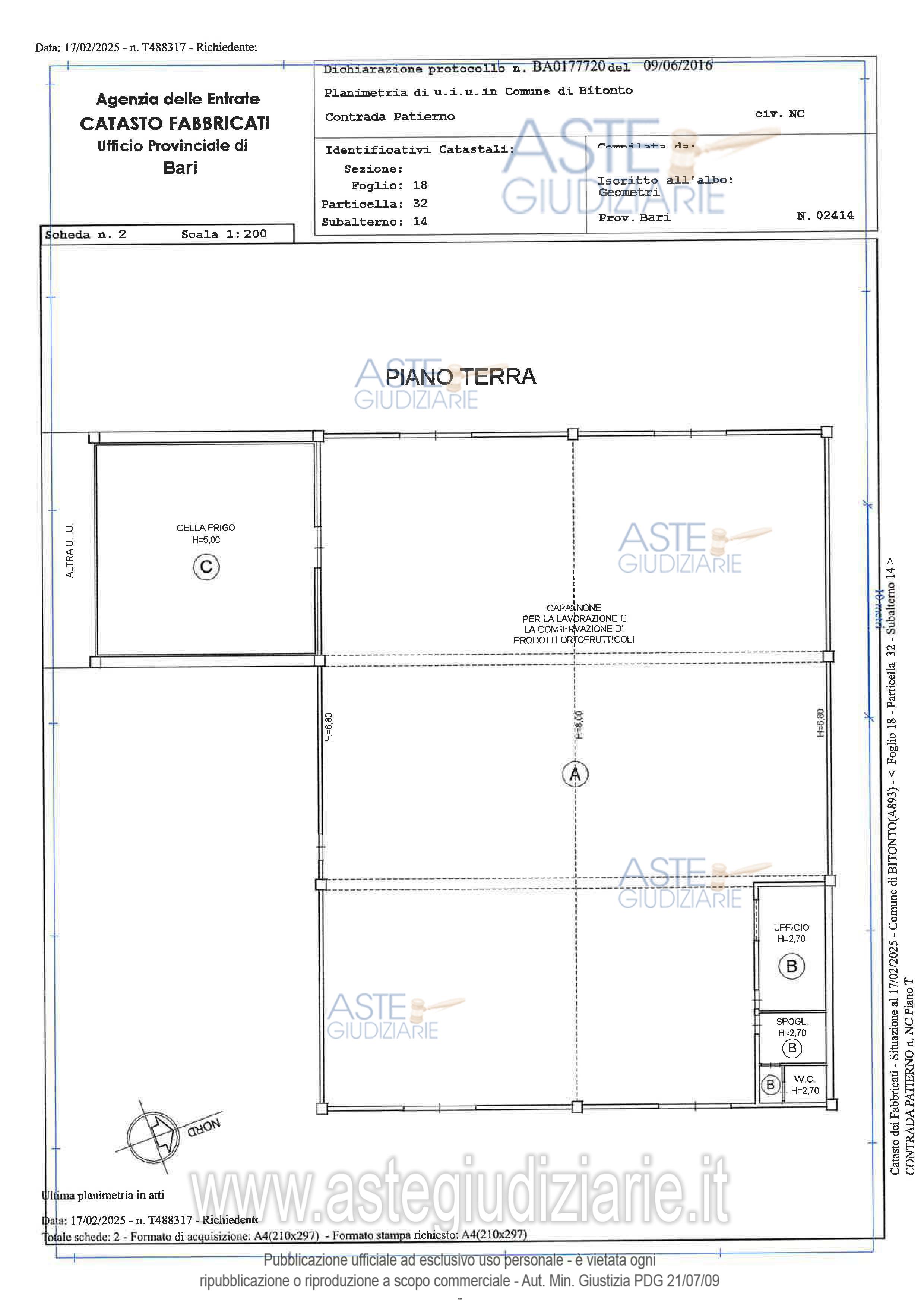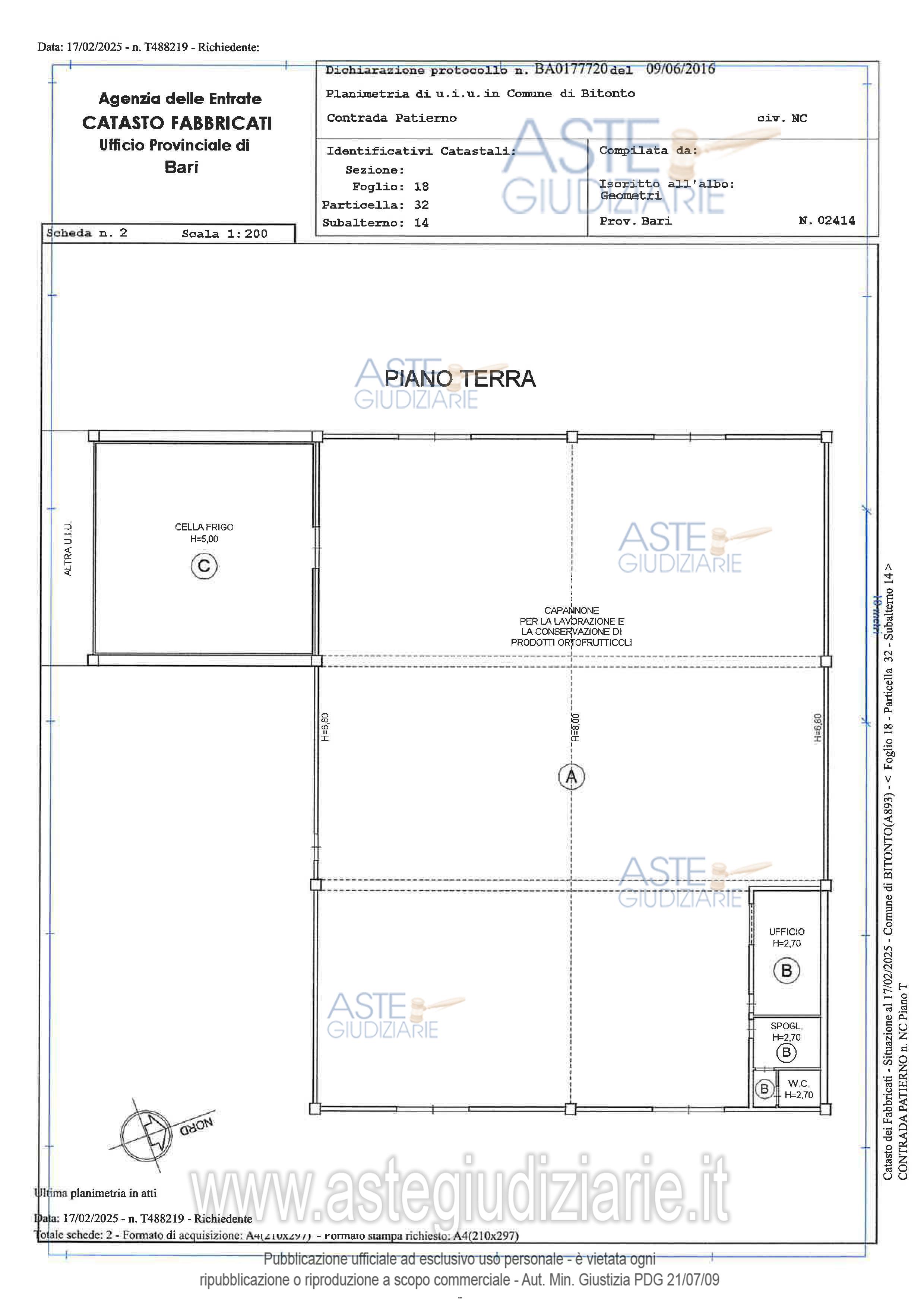 Vendita all'asta Senza incanto, con gara telematica asincrona - LOTTO 4: Piena e perfetta proprietà di un capannone industriale al piano terra, ubicato in Zona Agricola, in Contrada Patierno, con accesso dalla via Patierno composto di: un unico ambiente della superficie di metri quadri 750 circa adibito alla lavorazione e conservazione di prodotti ortofrutticoli con annessa cella frigorifera di metri quadri 118, una zona ufficio-spogliatoio-bagno di mq. 43. Prezzo base € 273.123,75 (offerta minima € 204.842,81). Data inizio operazioni di vendita: 16/06/2026 ore 12:00. Giudice Dott. Michele De Palma. Rif. Tribunale di Bari - Liquidazione controllata(cci) n. 9/2025