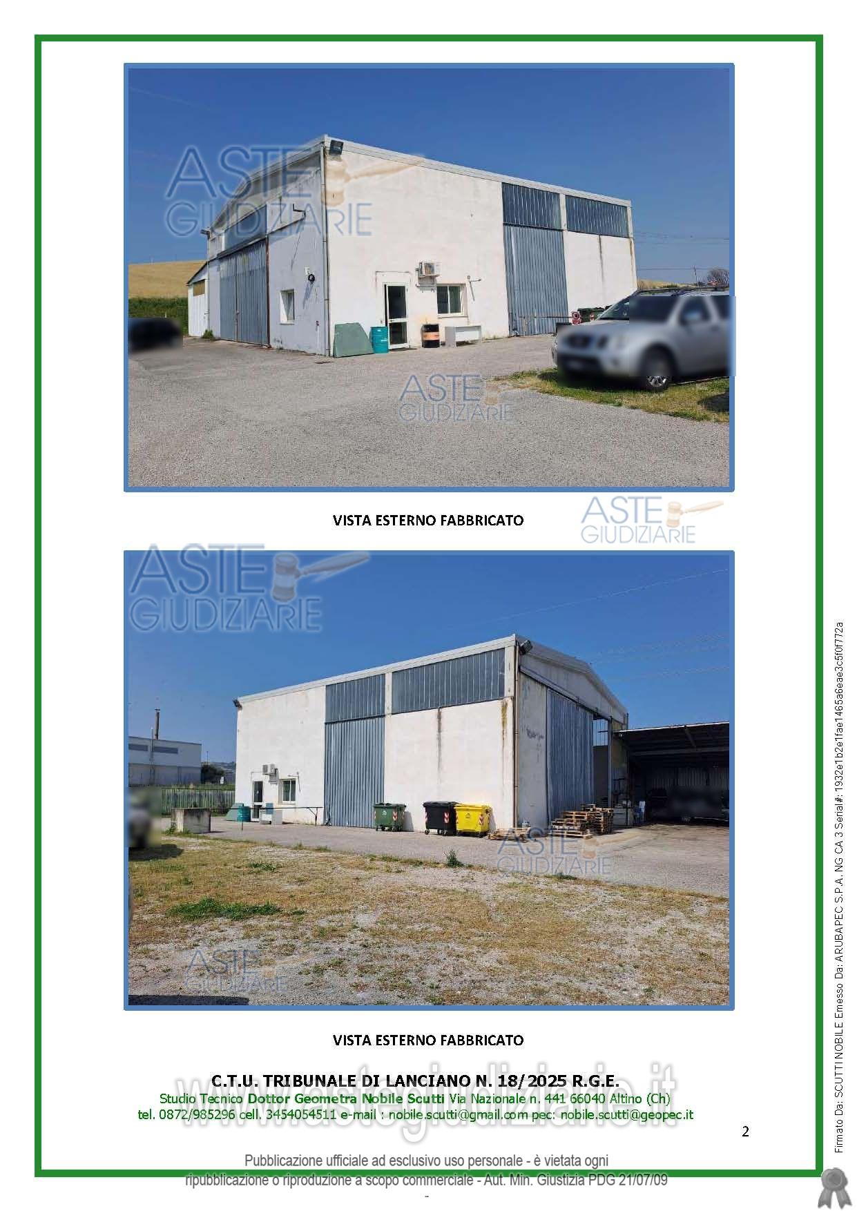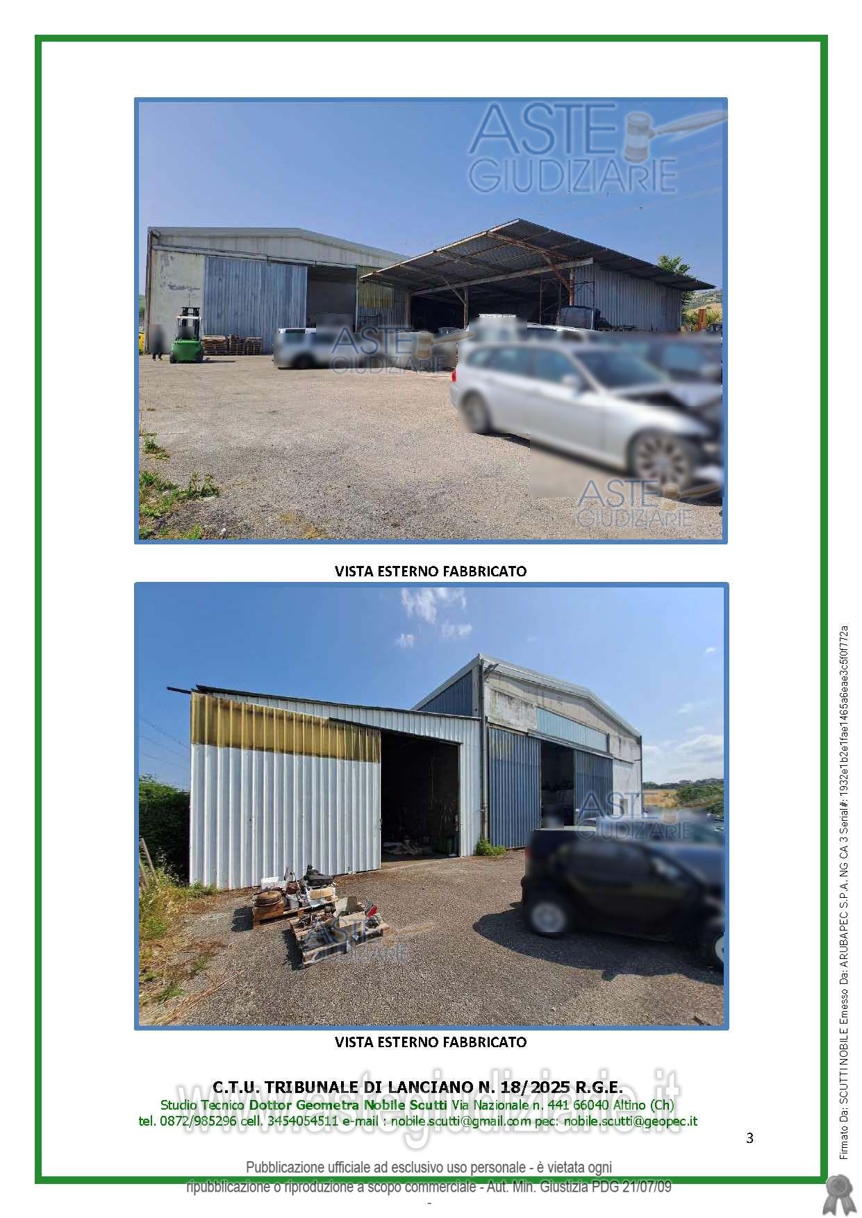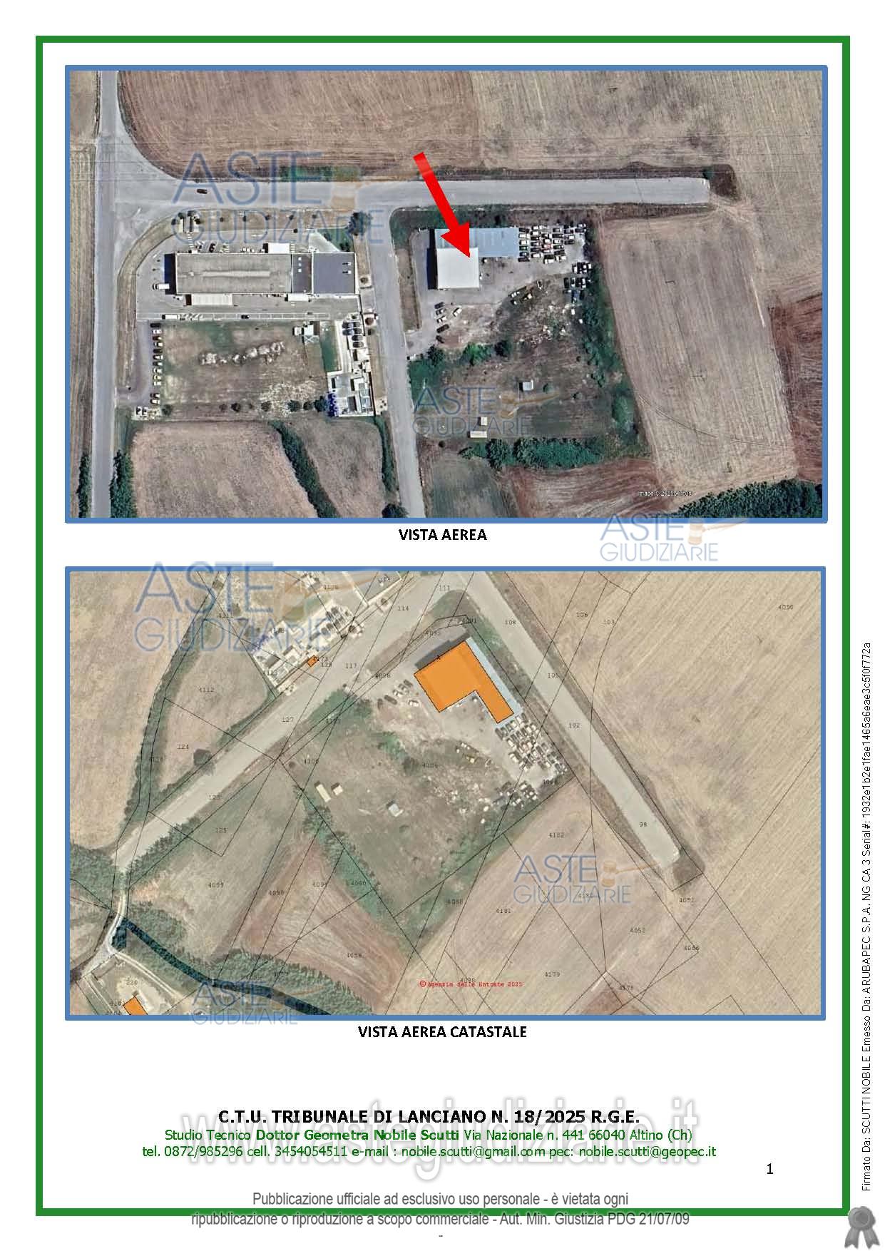 Vendita all'asta Senza incanto, con gara telematica asincrona - LOTTO UNICO: Diritti di piena proprietà su un fabbricato per attività industriale con circostante terreno, ubicato nell’agglomerato industriale di Castel Frentano (Agglomerato Industriale A.R.A.P. già Consorzio per lo Sviluppo Industriale del Sangro) località Paludi snc nella zona a confine con il Comune di Sant’Eusanio del Sangro. Prezzo base € 180.000,00 (offerta minima € 135.000,00). Data inizio operazioni di vendita: 28/04/2026 ore 10:00. Giudice Chiara D'alfonso. Professionista delegato alla vendita Avv. Angela Giancristofaro - Email "angelagiancristofaro@studiolegalelamorgia.it"; Cell. 3384433002. Custode Giudiziario Ivg - Email "ivglanciano@gmail.com"; Tel. 0872715361. Rif. Tribunale di Lanciano - Espropriazione immobiliare (cartabia) n. 18/2025