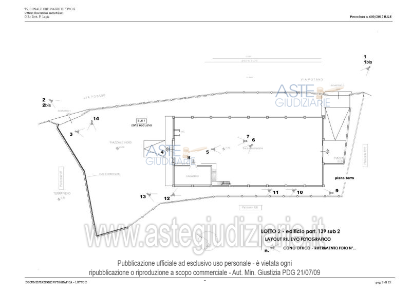 Vendita all'asta Senza incanto, con gara telematica asincrona - LOTTO 02: capannone ad uso industriale della superficie coperta di 808 mq per un’altezza di m 8,00 piano T e 1, con annessa area pertinenziale dotata di n. 2 accessi da Via Potano della superficie di 1.091 mq. Prezzo base € 408.083,78 (offerta minima € 306.062,83). Data inizio operazioni di vendita: 24/06/2026 ore 14:00. Giudice Dott. Lupia. Professionista delegato alla vendita Avv. Daniele Grimaldi. Custode Giudiziario Ivg Di Roma Srl - Email "pvp@visiteivgroma.it"; Tel. 0689569801. Rif. Tribunale di Tivoli - Esecuzione immobiliare post legge 80 n. 600/2017