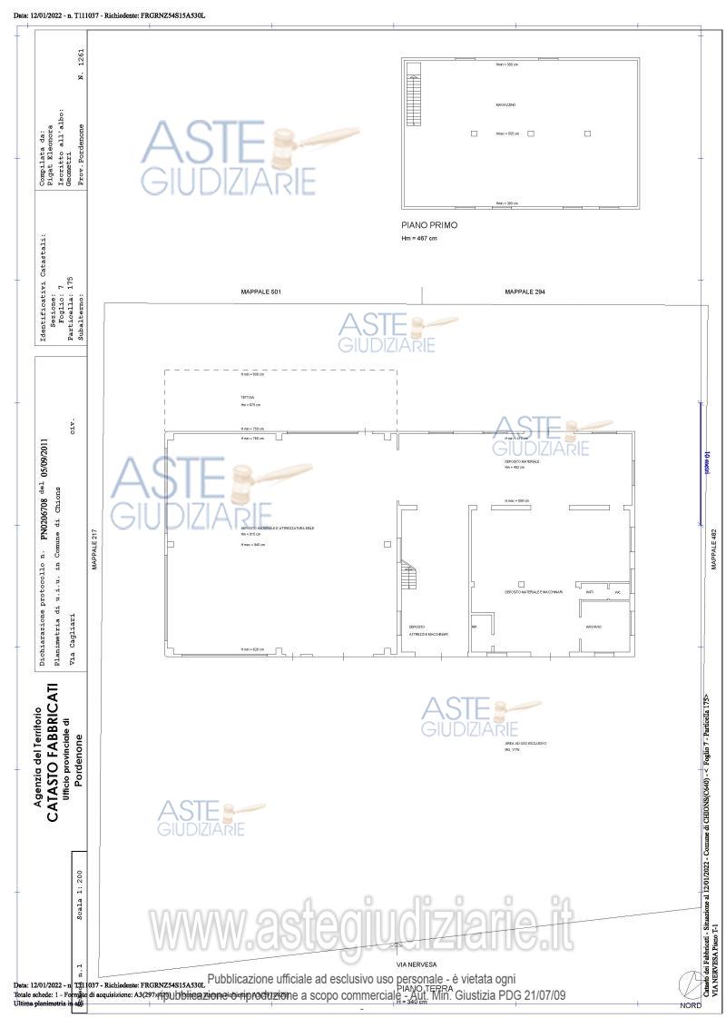 Vendita all'asta Senza incanto, con gara telematica sincrona mista - LOTTO UNICO: Capannone ad uso deposito materiale e attrezzature edili, su area di base e di pertinenza di mq 2635. Il piano terra ha 4 vani ad uso deposito, uno ad uso ripostiglio, servizio igienico con anti-wc e archivio, questi ultimi non completati. A sud est c'è una tettoia esterna. In adiacenza una seconda tettoia. Al primo piano c’è un magazzino. Completa il lotto un terreno coltivato a pioppeto (libero), con accesso da deposito edile (occupato). Difformità catastali e difformità edilizie sanabili. Prezzo base € 198.615,19 (offerta minima € 148.962,00). Data vendita 11/11/2025 ore 15:00. Giudice Dott. Elisa Tesco. Professionista delegato alla vendita Not. Orazio Greco - Email "ogreco@notariato.it". Custode Giudiziario Custode Giudiziario - Email "custodi@associazionenotarile.pn.it"; Tel. 3294536349. Rif. Tribunale di Pordenone - Esecuzione immobiliare post legge 80 n. 19/2020