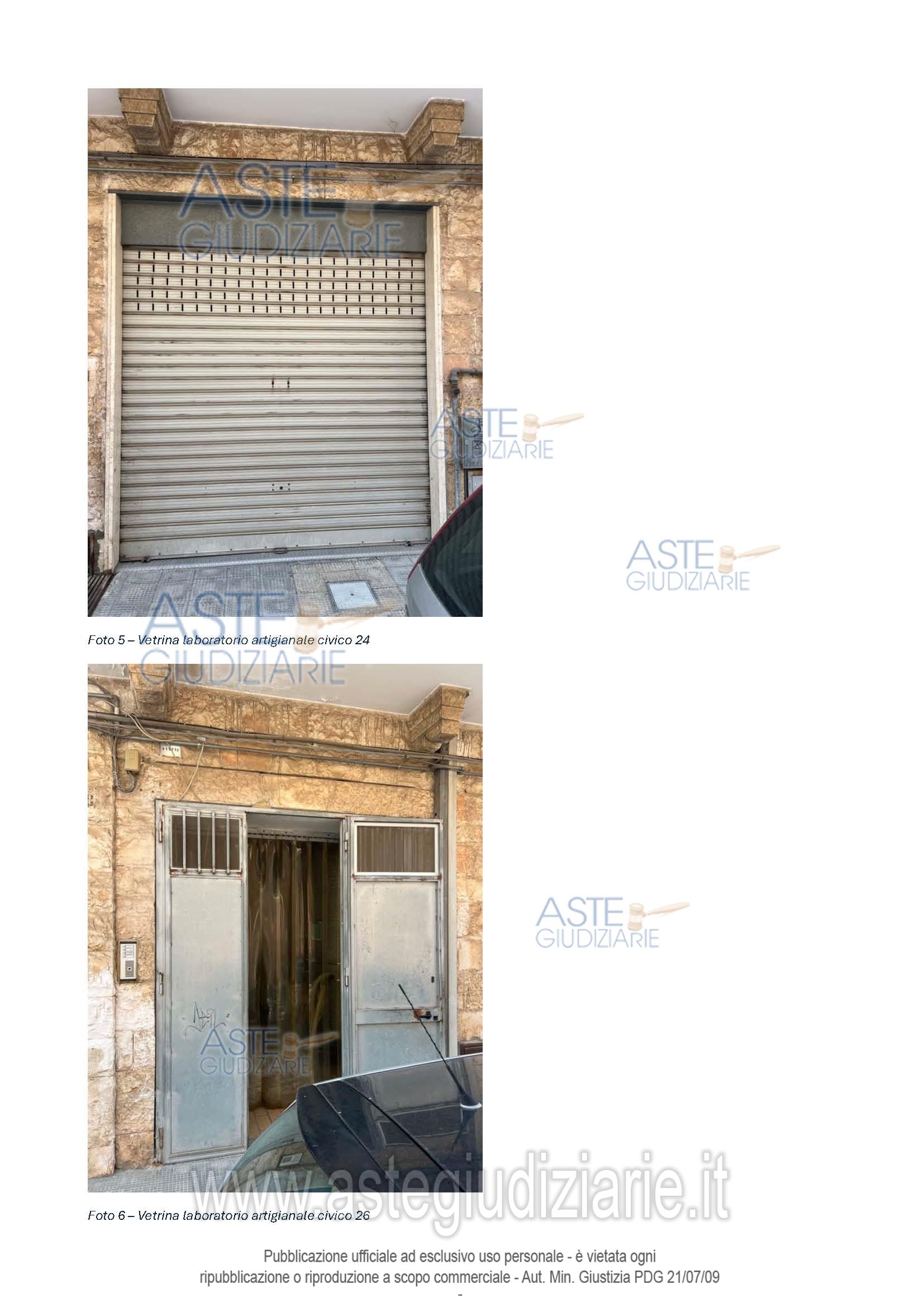 Vendita all'asta Senza incanto, con gara telematica asincrona - LOTTO 4: Laboratorio ad uso artigianale (caseificio) di 3 vani ed accessori, depositi e corte posto al piano terra e al piano interrato. Prezzo base € 129.000,00 (offerta minima € 96.750,00). Data inizio operazioni di vendita: 15/10/2025 ore 16:30. Giudice Dott. Marisa Attollino. Professionista delegato alla vendita Avv. Giuseppe Ficele - Email "avv.ficelegiuseppe@gmail.com". Custode Giudiziario Avv. Giuseppe Ficele - Email "avv.ficelegiuseppe@gmail.com". Rif. Tribunale di Bari - Esecuzione immobiliare post legge 80 n. 280/2020