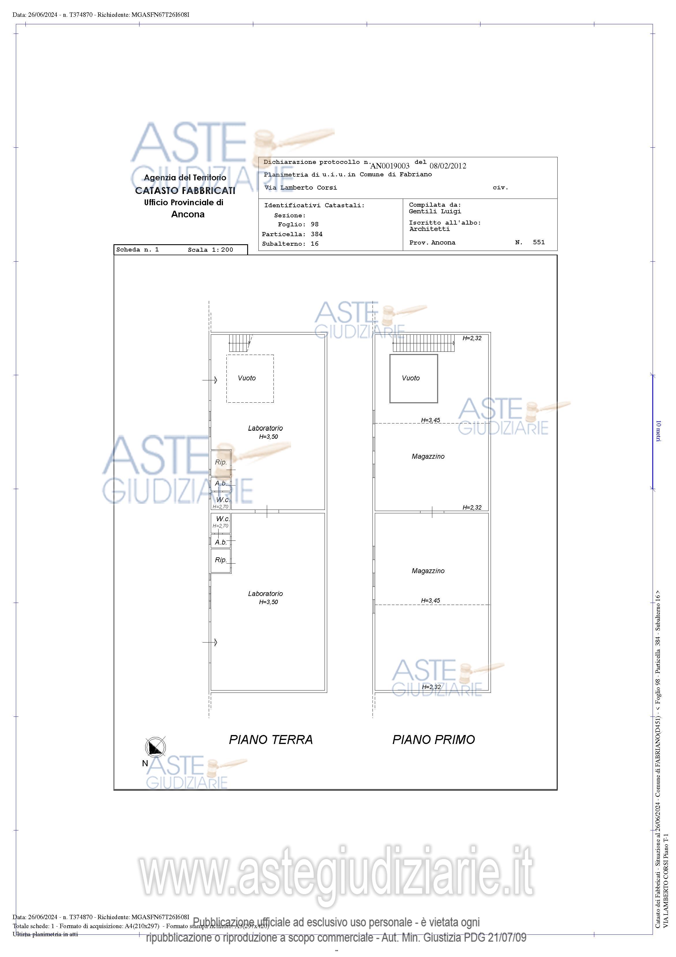 Vendita all'asta Senza incanto, con gara telematica asincrona - LOTTO 5: fabbricato industriale posto al piano terra. Prezzo base € 258.146,64 (offerta minima € 193.610,00). Data inizio operazioni di vendita: 26/03/2026 ore 09:45. Professionista delegato alla vendita Avv. Giulia Ginesi - Email "segreteria@asteavvocati.it"; Tel. 0719940177. Custode Giudiziario Avv. Giulia Ginesi - Email "ginesi@tardellaginesi.it"; Tel. 0712074299. Rif. Tribunale di Ancona - Esecuzione immobiliare post legge 80 n. 116/2021