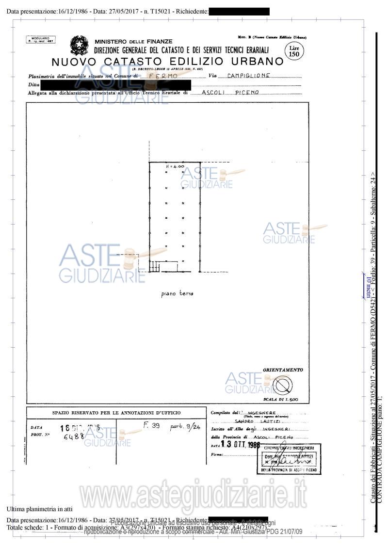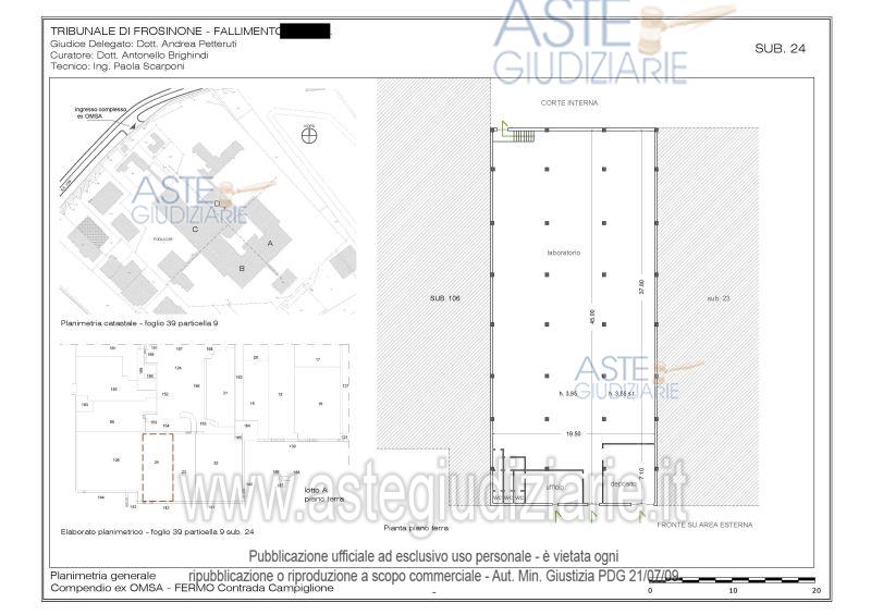 Vendita all'asta Senza incanto, con gara telematica asincrona - LOTTO 1: Diritti di piena proprietà su fabbricato categoria D/7, posto al piano T, sito nel Comune di Fermo, strada Provinciale 239, nel quartiere Campiglione, ricade all’interno del complesso industriale xxxxx. Di superficie pari a circa mq. 900,00 è destinato ad opificio; l’immobile viene attualmente utilizzato come laboratorio per la realizzazione e/o finitura di calzature. Prezzo base € 164.353,50 (offerta minima € 164.353,50). Data inizio operazioni di vendita: 18/06/2026 ore 12:00. Giudice Francesco Ferdinandi. Curatore Antonello Brighindi. Rif. Tribunale di Frosinone - Fallimentare (nuovo rito) n. 1/2008