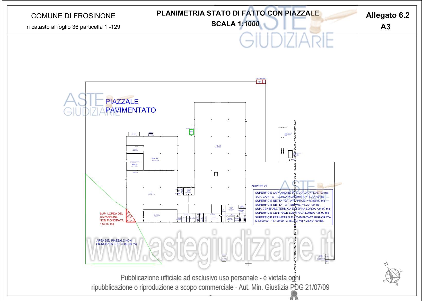 Vendita in attesa dell'emissione del nuovo bando d'asta. LOTTO UNICO: Diritti pari alla piena proprietà 1/1 di Capannone industriale situato in Frosinone – Via Armando Vona snc.L'immobile pignorato è costituito da capannone avente superficie tot. lorda di circa 11.004 mq (di cui circa 1.221,00 mq ad uso uffici e servizi e la restante parte ad uso deposito/magazzino - attività produttiva), costituito da unico piano terra e area esterna di circa 38.800,00 mq di cui circa 24.491,00 mq pavimentati. Ultimo prezzo base € 3.668.062,50 (offerta minima € 2.751.047,00). Giudice Dott. Simona Di Nicola. Professionista delegato alla vendita Dott. Antonio Fratangeli - Email "antonio@studiofratangeli.it"; Cell. 3271856240; Tel. 0775211218. Custode Giudiziario Dott. Antonio Fratangeli - Email "antonio@studiofratangeli.it"; Cell. 3271856240; Tel. 0775211218. Rif. Tribunale di Frosinone - Esecuzione immobiliare post legge 80 n. 95/2020