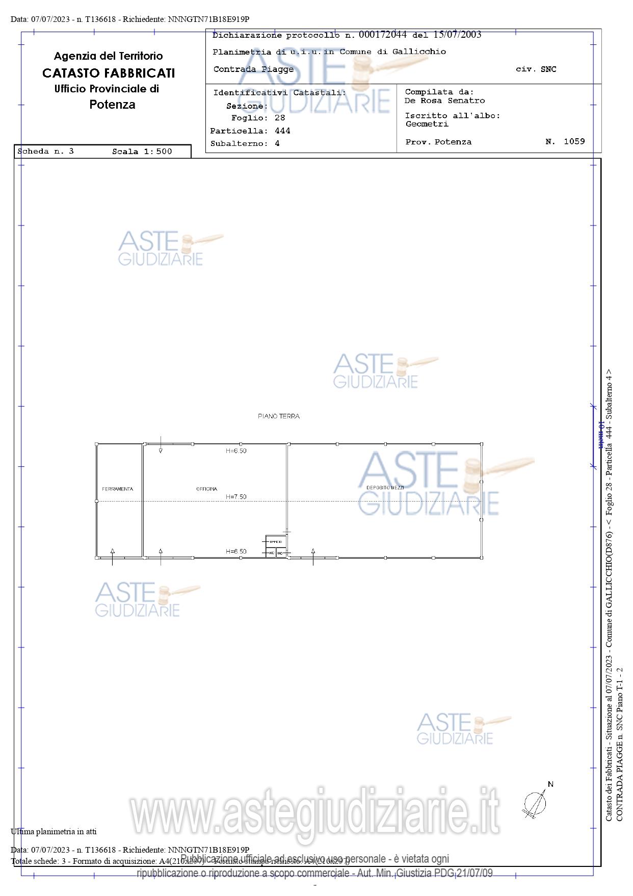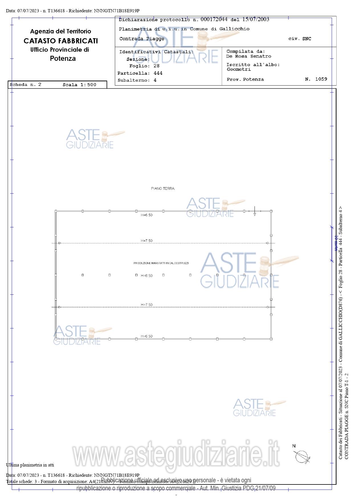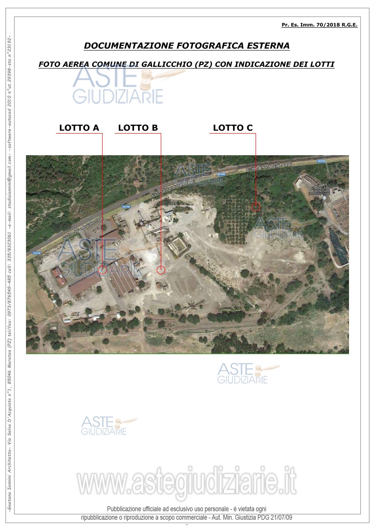 Vendita all'asta Senza incanto, con gara telematica asincrona - LOTTO 1: LOTTO UNO: Piena ed esclusiva proprietà di compendio immobiliare ubicato nel Comune di Gallicchio (PZ) alla contrada Piagge sulla S.S.598. Il compendio è composto da un fabbricato e capannoni, i quali fanno parte della sede operativa di un’azienda industriale, che si occupava prevalentemente di produzione di calcestruzzo, di prefabbricati vari in cls e della realizzazione di opere pubbliche private. Prezzo base € 480.591,28 (offerta minima € 360.443,46). Data inizio operazioni di vendita: 17/12/2025 ore 15:30. Giudice Aniello Maria De Piano. Professionista delegato alla vendita Avv. Marcello De Giorgio - Email "avvmarcellodegiorgio@libero.it"; Cell. 3358360365; Tel. 0815801274. Custode Giudiziario Avv. Maria Santoro - Email "mariasantoro.maratea@tiscali.it"; Cell. 3387495879; Tel. 0973877004. Rif. Tribunale di Lagonegro - Esecuzione immobiliare post legge 80 n. 78/2007