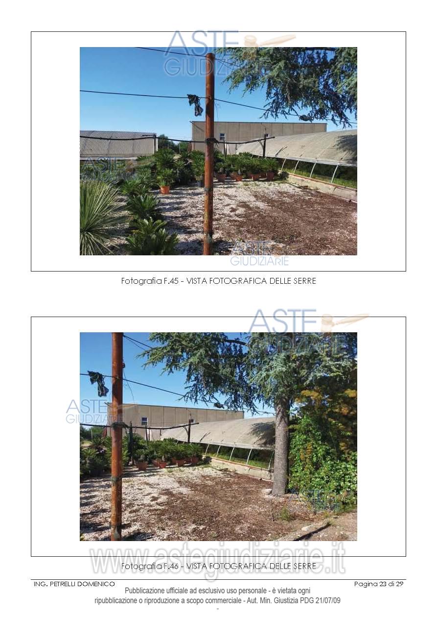 Vendita all'asta Senza incanto, con gara telematica asincrona - LOTTO UNICO: Compendio immobiliare composto da laboratorio, capannone, spogliatoio, serre e cabina Enel. Prezzo base € 176.933,76 (offerta minima € 132.700,32). Data inizio operazioni di vendita: 10/03/2026 ore 16:30. Giudice Dott. Marina Cavallo. Professionista delegato alla vendita Avv. Giuseppina Ostuni - Email "studiolegalegostuni@gmail.com". Custode Giudiziario Avv. Giuseppina Ostuni - Email "studiolegalegostuni@gmail.com". Rif. Tribunale di Bari - Esecuzione immobiliare post legge 80 n. 654/2019