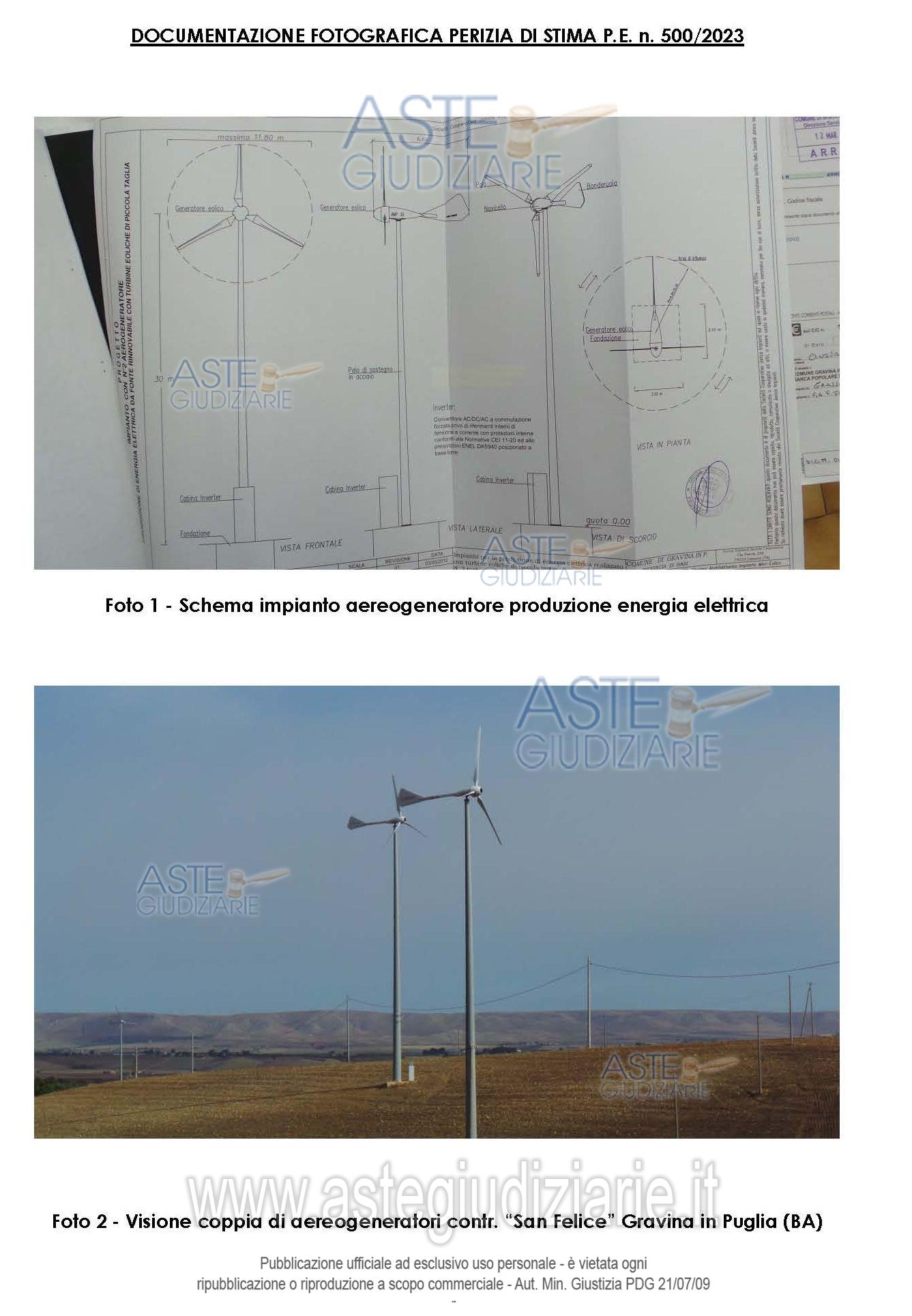 Vendita in attesa dell'emissione del nuovo bando d'asta. LOTTO UNICO: Valori di stima di 40 pali eolici insistenti su fondi rustici di proprietà di terzi ubicati in agro di Gravina di Puglia e in agro di Poggiorsini. Ultimo prezzo base € 660.785,00 (offerta minima € 495.590,00). Giudice Dott. Antonio Ruffino. Professionista delegato alla vendita Avv. Domenico Ricciardelli - Email "ricciardellistudio@gmail.com"; Cell. 3332842249. Custode Giudiziario Avv. Domenico Ricciardelli - Email "ricciardellistudio@gmail.com"; Cell. 3332842249. Rif. Tribunale di Bari - Espropriazione immobiliare (cartabia) n. 500/2023