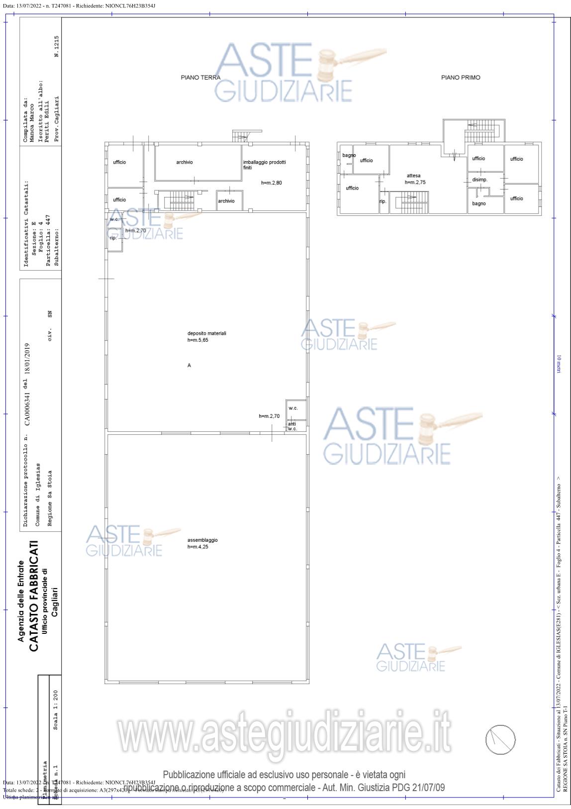 Vendita all'asta Senza incanto, con gara telematica asincrona - LOTTO UNICO: Piena proprietà di Fabbricato di tipo industriale piani terra e primo, superficie commerciale di circa mq. 1760,21. Prezzo base € 258.019,20 (offerta minima € 193.514,40). Data inizio operazioni di vendita: 29/01/2026 ore 16:00. Professionista delegato alla vendita Dott. Roberta Asuni - Email "roberta.asuni1@gmail.com"; Tel. 0704636855. Custode Giudiziario Lino Icilio Felice Fresi - Email "ivg.visiteimmobili@tiscali.it"; Tel. 0702299036. Rif. Tribunale di Cagliari - Esecuzione immobiliare post legge 80 n. 13/2021