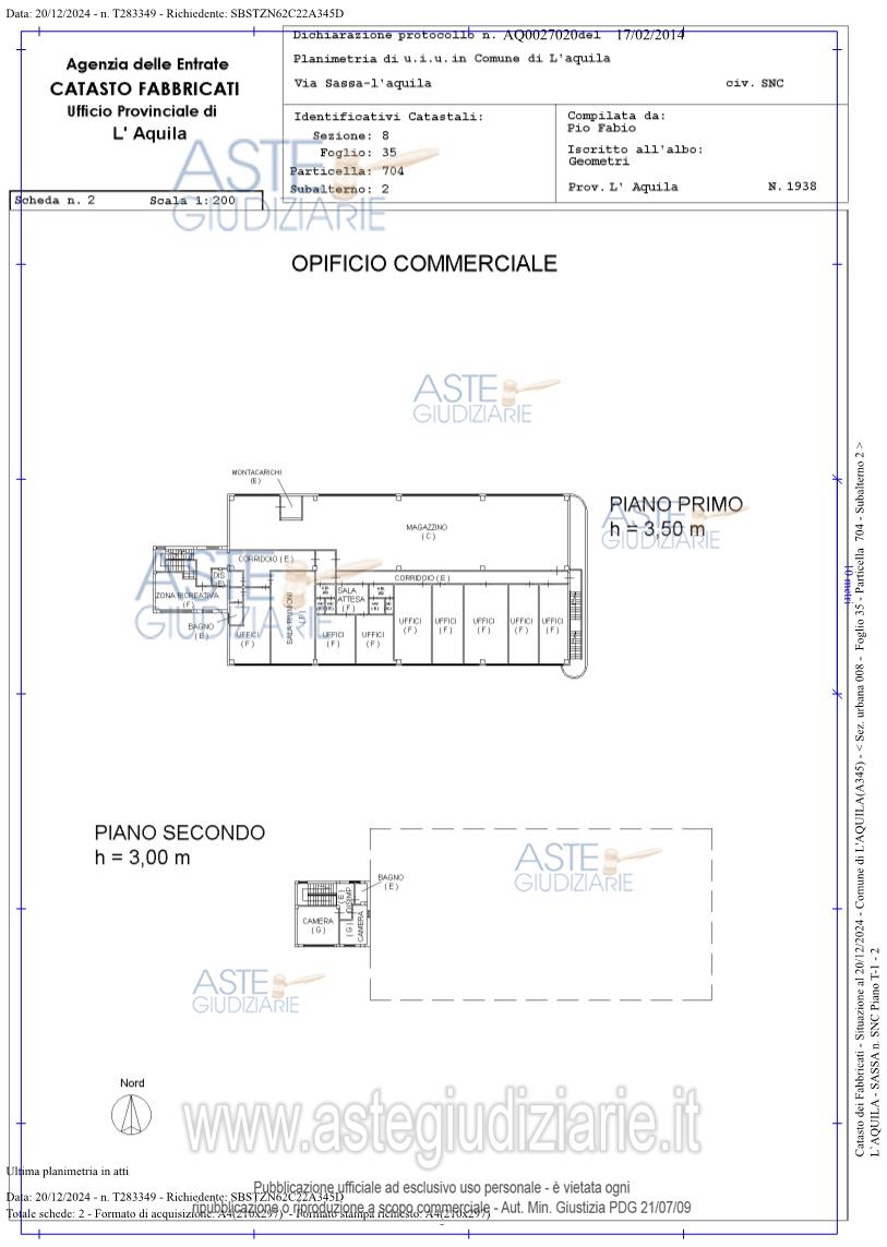 Custode Giudiziario: Dott. Istituto Vendite Giudiziarie Abruzzo - Email "ivgavezzano@gmail.com".