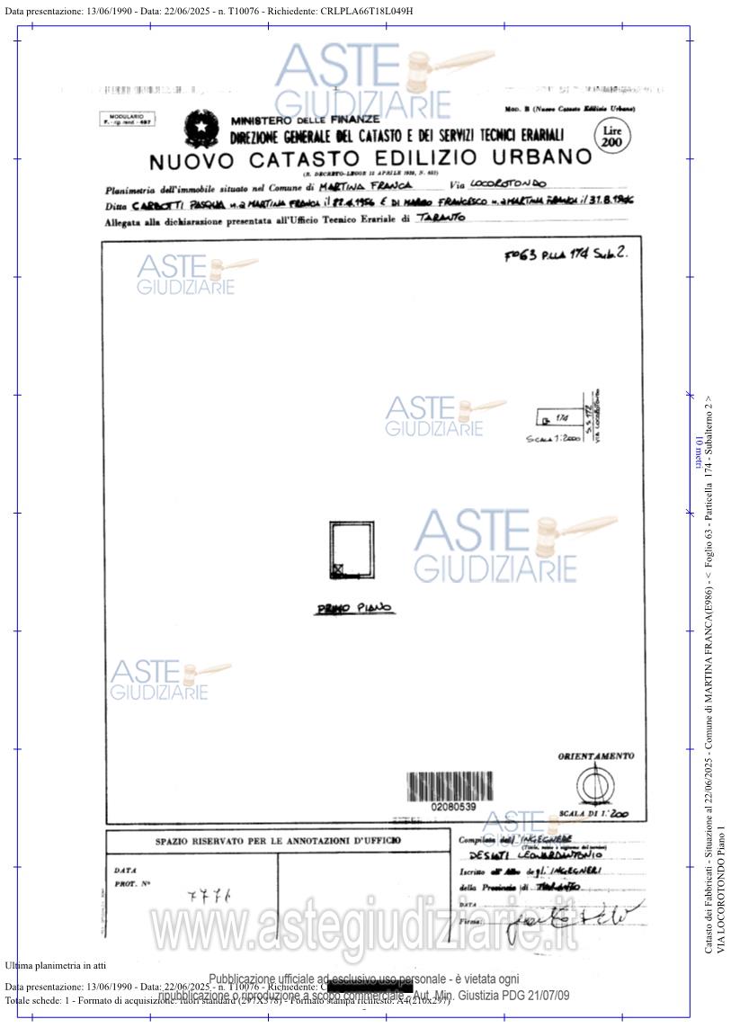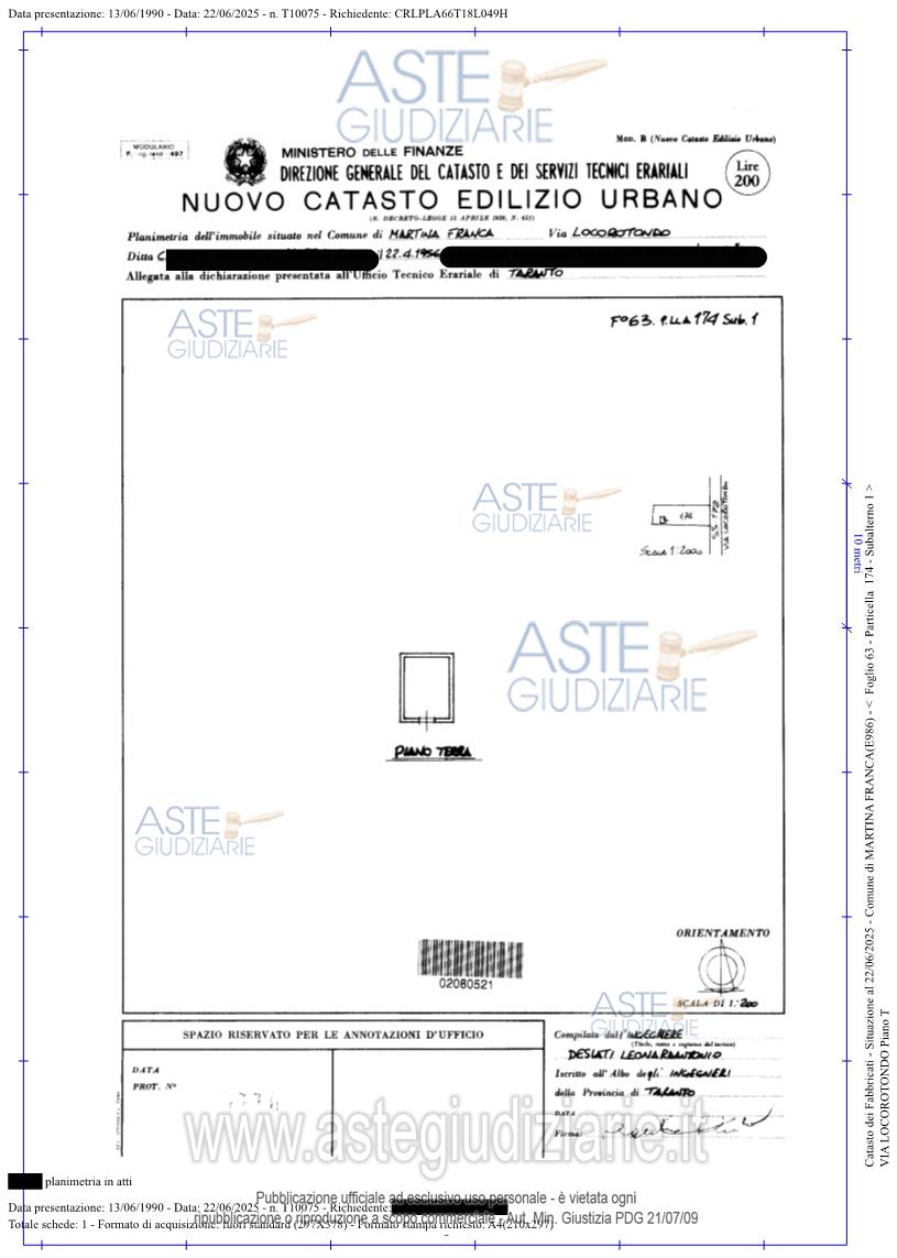 Vendita all'asta Senza incanto, con gara telematica asincrona - LOTTO UNICO: Piena proprietà della metà indivisa di un opificio e della cabina elettrica a servizio con area di pertinenza. Prezzo base € 110.000,00 (offerta minima € 82.500,00). Data inizio operazioni di vendita: 20/01/2026 ore 16:30. Giudice Andrea Paiano. Professionista delegato alla vendita Avv. Rosanna Caiazzo. Custode Giudiziario Avv. Rosanna Caiazzo - Email "avvocatocaiazzo71@gmail.com". Rif. Tribunale di Taranto - Espropriazione immobiliare (cartabia) n. 20/2025