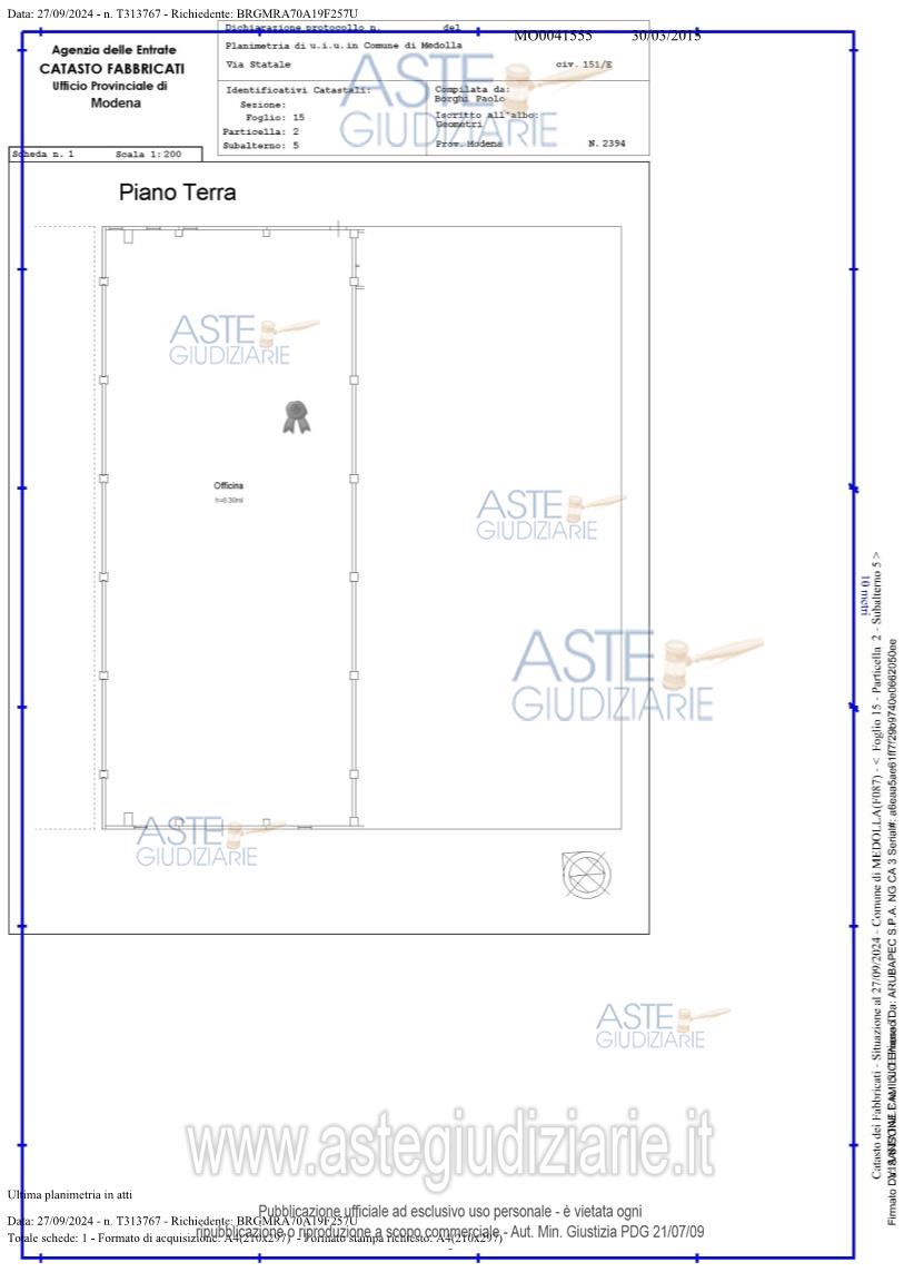 Vendita all'asta Senza incanto, con gara telematica asincrona - LOTTO UNICO: Porzioni di capannone a destinazione industriale, per complessivi 1140 metri quadri, sito in Comune di Medolla (MO) via Statale 151 e precisamente: 1) locale ad uso laboratorio posto al piano terra, con pertinenziale area cortiliva esclusiva riportato in Catasto Fabbricati al foglio15, particella 2 sub.4 e 10; 2) locale ad uso officina posto al piano terra, con pertinenziale area cortiliva esclusiva riportato in Catasto Fabbricati al foglio15, particella 2 sub. 5 e 11 . Prezzo base € 331.875,00 (offerta minima € 248.906,25). Data inizio operazioni di vendita: 21/04/2026 ore 15:00. Professionista delegato alla vendita Avv. Mario Lenzini - Email "mario.lenzini@alice.it". Custode Giudiziario Alex Manelli - Email "segreteria.mo@astagiudiziaria.com"; Tel. 059847301. Rif. Tribunale di Modena - Espropriazione immobiliare (cartabia) n. 97/2024