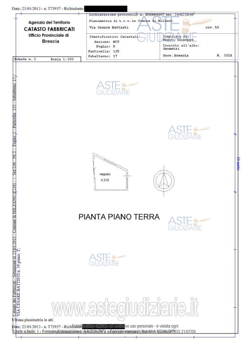 Vendita all'asta Senza incanto, con gara telematica asincrona - LOTTO 3: Piena ed esclusiva proprietà di magazzino - deposito al p. sottostrada, terra e primo con corte esclusiva. Negozio al p.t. adibito a supermercato . Negozio al p.t. adibito a tabaccheria, edicola, gioco con slot machine. Prezzo base € 65.920,59 (offerta minima € 49.440,44). Data inizio operazioni di vendita: 24/03/2026 ore 10:00. Professionista delegato alla vendita Not. Daniela Masucci - Email "dmasucci@notariato.it"; Tel. 030222849. Custode Giudiziario Dott. Vittorio Corniani - Email "ivgbrescia@ivgbrescia.com"; Tel. 030348410. Rif. Tribunale di Brescia - Esecuzione immobiliare post legge 80 n. 829/2012