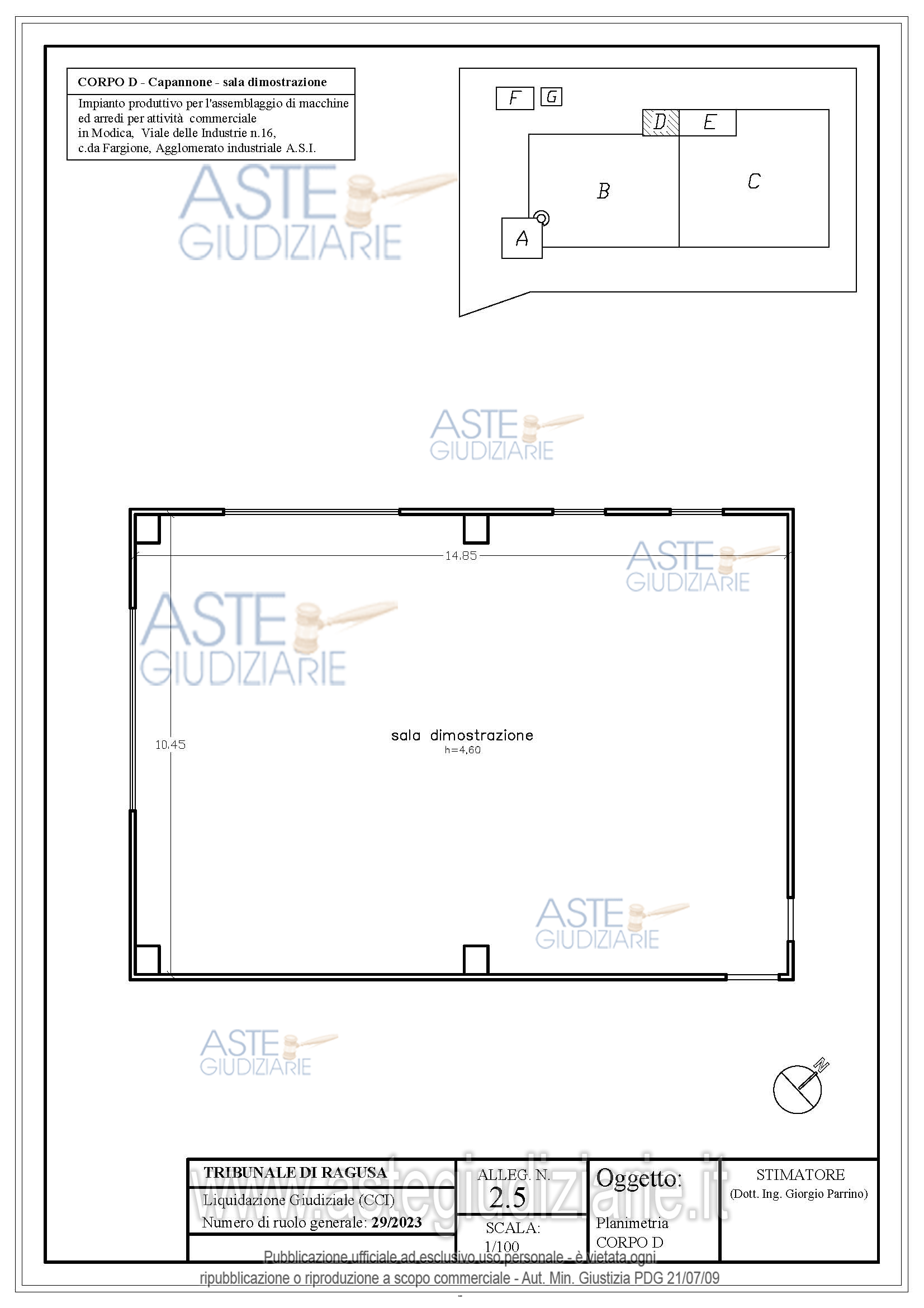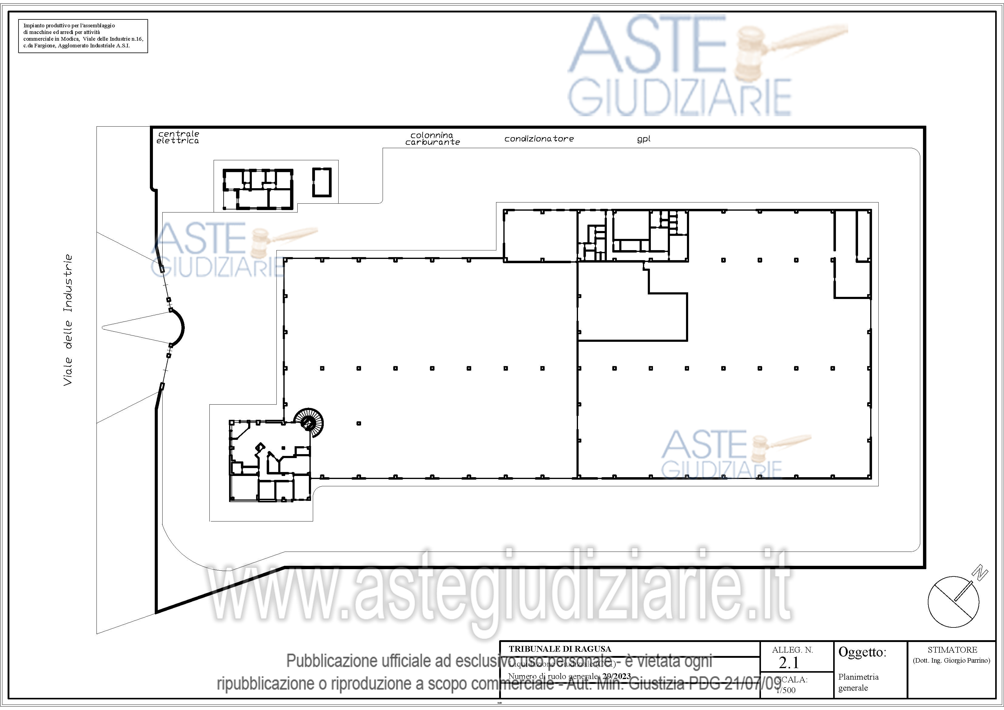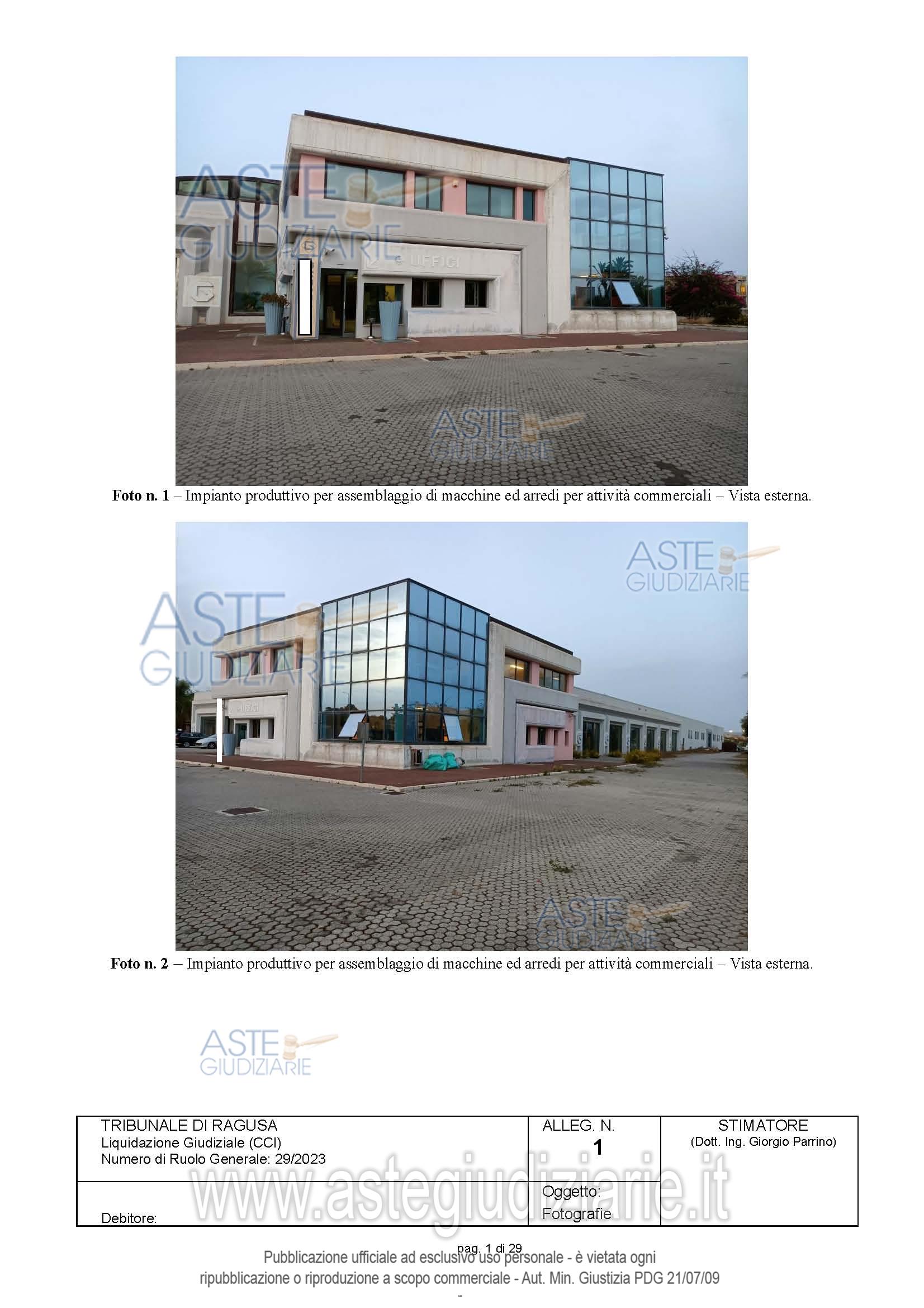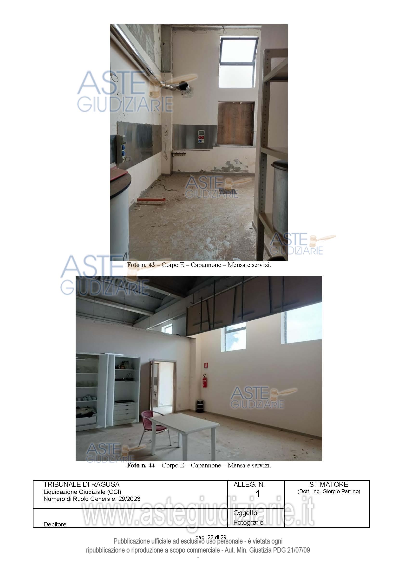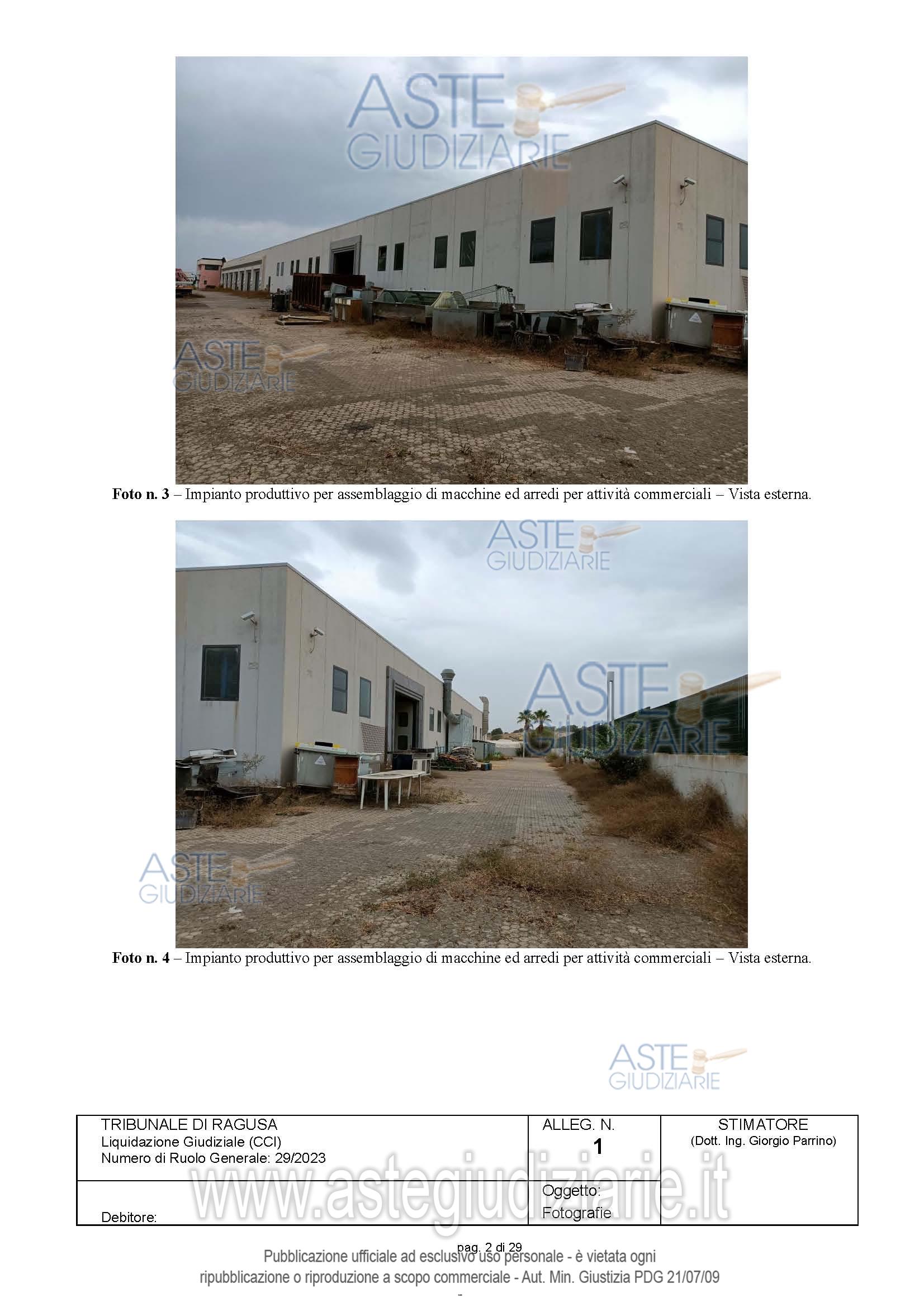 Vendita in attesa dell'emissione del nuovo bando d'asta. LOTTO 2: Complesso immobiliare realizzato su lotto di circa 14.000 mq, composto da capannone industriale con sala produzione,magazzino,sala dimostrazione, sala esposizione,,mensa e servizi,palazzina uffici disposta su 3 livelli,con piano scantinato destinato a magazzino,piano terra destinato ad accettazione e locali uffici,piano 1° destinato ad uffici,alloggio custode e locale pompe. Il fabbricato è dotato di impianto fotovoltaico da 12 kWp, una centrale elettrica, colonnina per il carburante e bombolone di gas gpl. Ultimo prezzo base € 2.757.825,00 (offerta minima € 2.757.825,00). Curatore Avv. Patrizia Gurrieri - Email "segreteria@studiolegalegurrieri.it"; Tel. 0932220000. Rif. Tribunale di Ragusa - Liquidazione giudiziale(cci) n. 29/2023