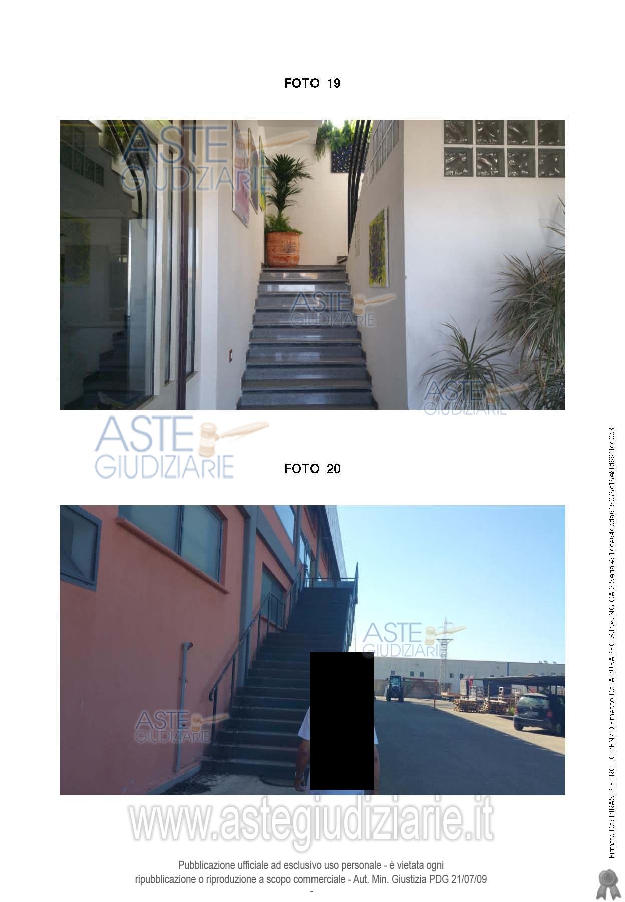 Vendita all'asta Senza incanto, con gara telematica asincrona - LOTTO 1: Loc. Matzeddu, quota pari all’intero del diritto di proprietà sul capannone su due livelli, e area di pertinenza esclusiva su tre lati, oltre quota pro indiviso sull’area di manovra sub 3 in comproprietà col capannone confinante. Prezzo base € 974.800,00 (offerta minima € 731.100,00). Data inizio operazioni di vendita: 13/02/2026 ore 11:00. Giudice Francesco De Giorgi. Professionista delegato alla vendita Dott. Antonio Garau - Email "ufficiouniconotai@pec.it"; Tel. 07060222574. Custode Giudiziario Ivg Cagliari - Email "ivg.visiteimmobili@tiscali.it"; Tel. 0702299036. Rif. Tribunale di Cagliari - Esecuzione immobiliare post legge 80 n. 89/2018