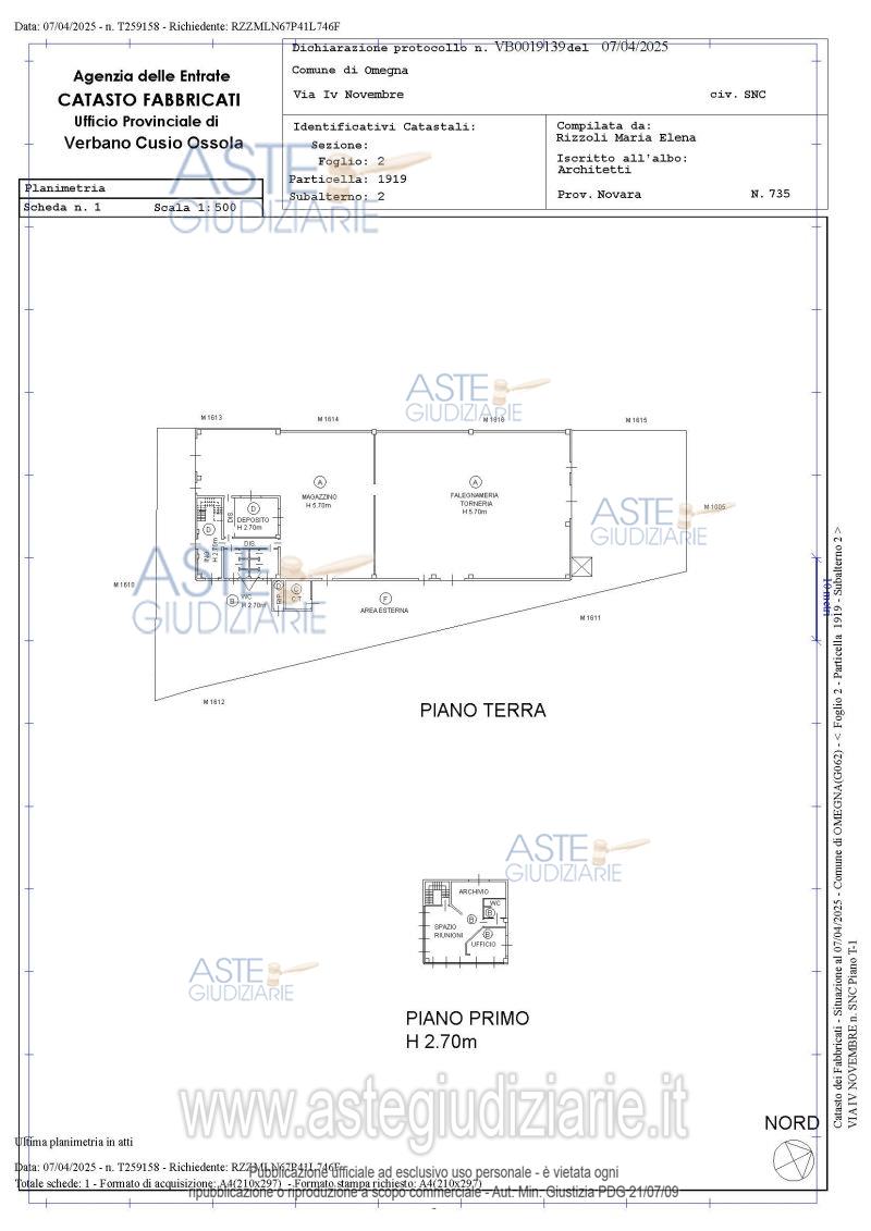 Vendita all'asta Senza incanto, con gara telematica asincrona - LOTTO 1: Fabbricato industriale. Prezzo base € 234.000,00 (offerta minima € 175.500,00). Data inizio operazioni di vendita: 23/06/2026 ore 10:00. Giudice Dott. Antonietta Sacco. Custode Giudiziario Aste Giudiziarie Inlinea Spa - Email "ufficiocustodie@astegiudiziarie.it". Rif. Tribunale di Verbania - Espropriazione immobiliare (cartabia) n. 56/2024