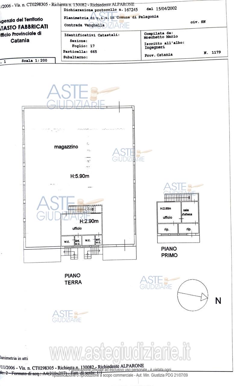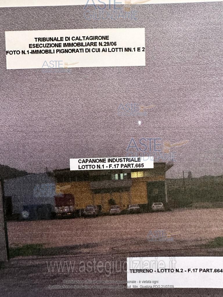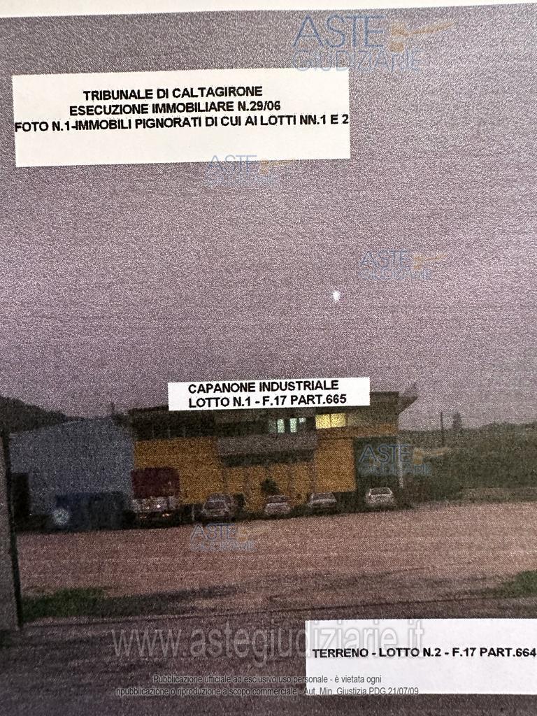 Vendita all'asta Senza incanto, con gara telematica sincrona mista - LOTTO 1: Capannone industriale con uffici sito in Palagonia (CT), c.da Vanghella s.n., piani terra e 1°, in atto adibito alla commercializzazione di agrumi, in catasto al f. 17 part. 665. Prezzo base € 87.585,89 (offerta minima € 65.689,42). Data vendita 26/05/2026 ore 10:30. Professionista delegato alla vendita Dott. Fulvio Cristina - Email "dott.fulvio.cristina@gmail.com"; Cell. 3356511101; Tel. 093356754. Custode Giudiziario Dott. Fulvio Cristina - Email "dott.fulvio.cristina@gmail.com"; Cell. 3356511101; Tel. 093356754. Rif. Tribunale di Caltagirone - Esecuzione immobiliare post legge 80 n. 29/2006