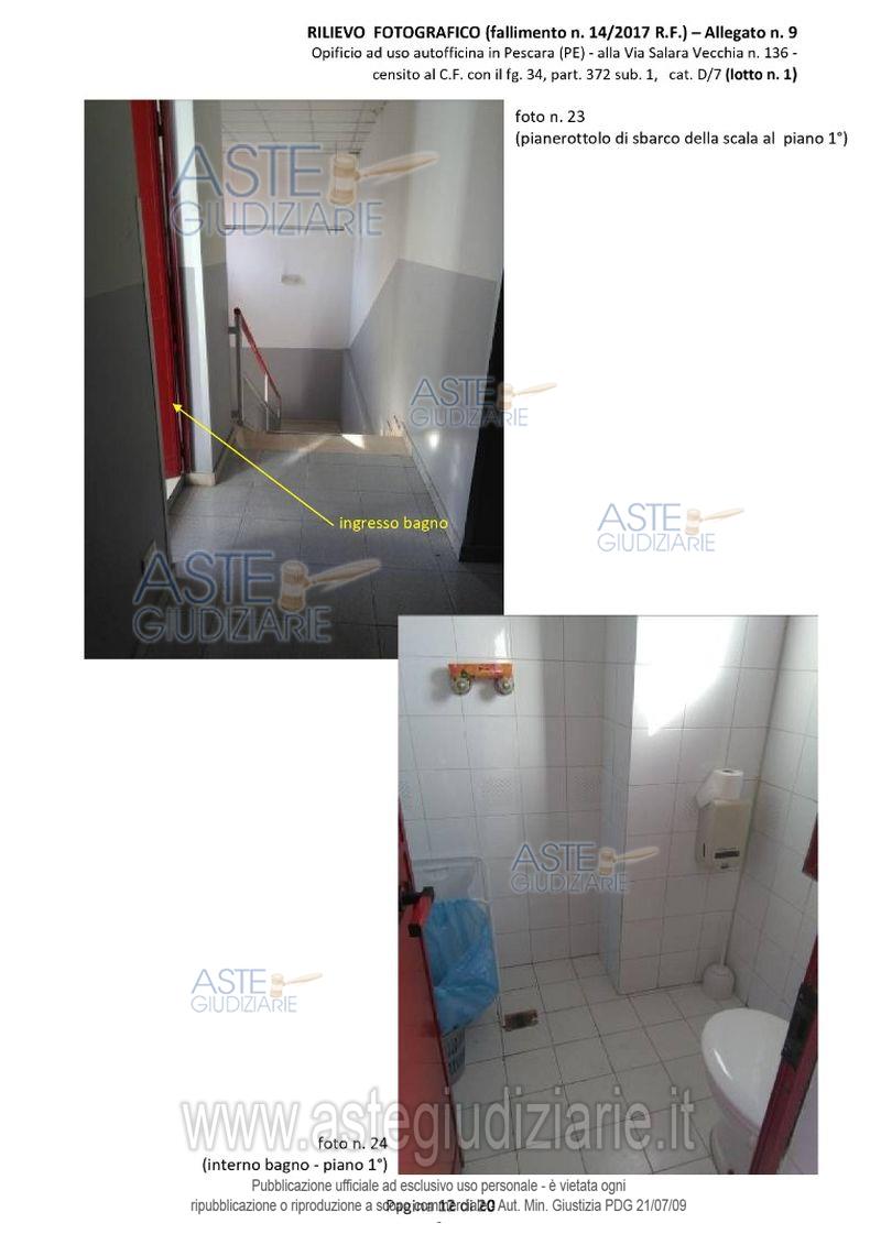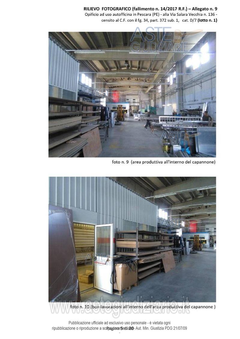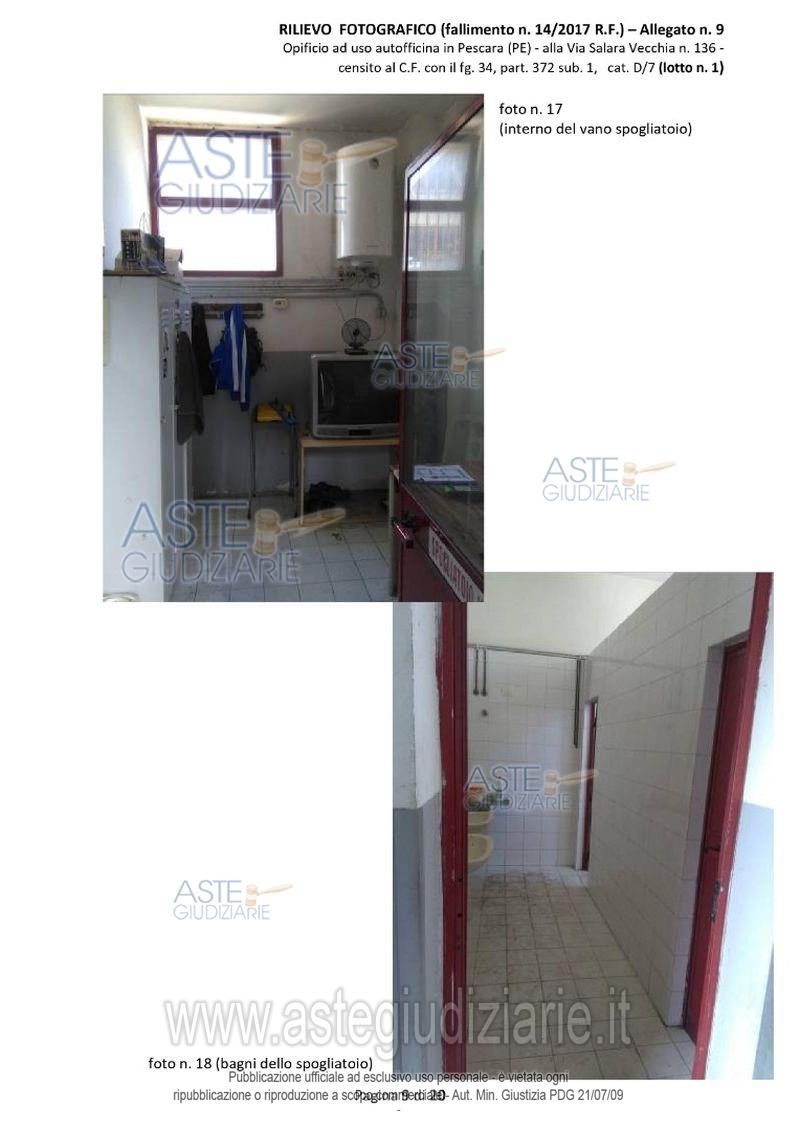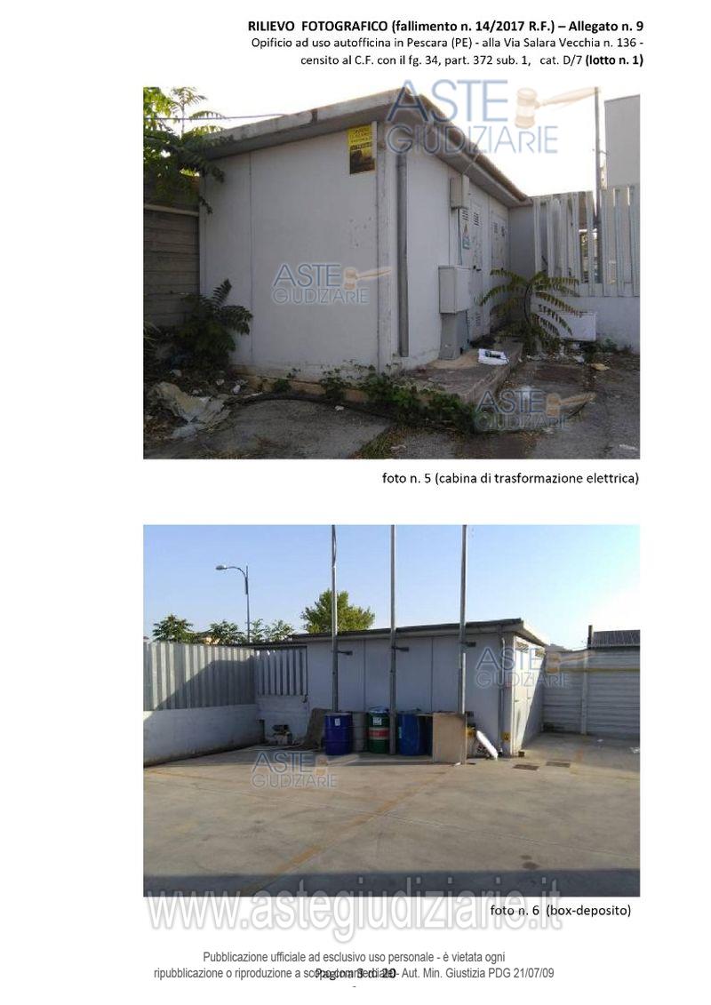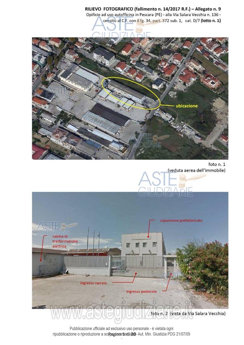 Vendita all'asta Con incanto - LOTTO 1: Diritto di piena proprietà per l'intero (1/1) immobile sito in Pescara alla Via Salara Vecchia n.136 costituito da intero fabbricato, da cielo a terra, parzialmente soppalcato, ad uso industriale al piano terra con annessi Uffici al piano primo, con circostante area di superficie, tra coperto e scoperto, di mq. 2454 circa, sulla quale insistono anche un locale prefabbricato utilizzato come box deposito, una cabina di trasformazione elettrica ed una porzione di area destinata a parcheggio ed area di manovra. Prezzo base € 312.824,54. Data vendita 31/03/2026 ore 15:30. Giudice Federica Colantonio. Curatore Avv. Ludovico De Benedictis - Email "segreteria.debenedictis@gmail.com"; Tel. 0852056417. Rif. Tribunale di Pescara - Fallimentare (nuovo rito) n. 14/2017