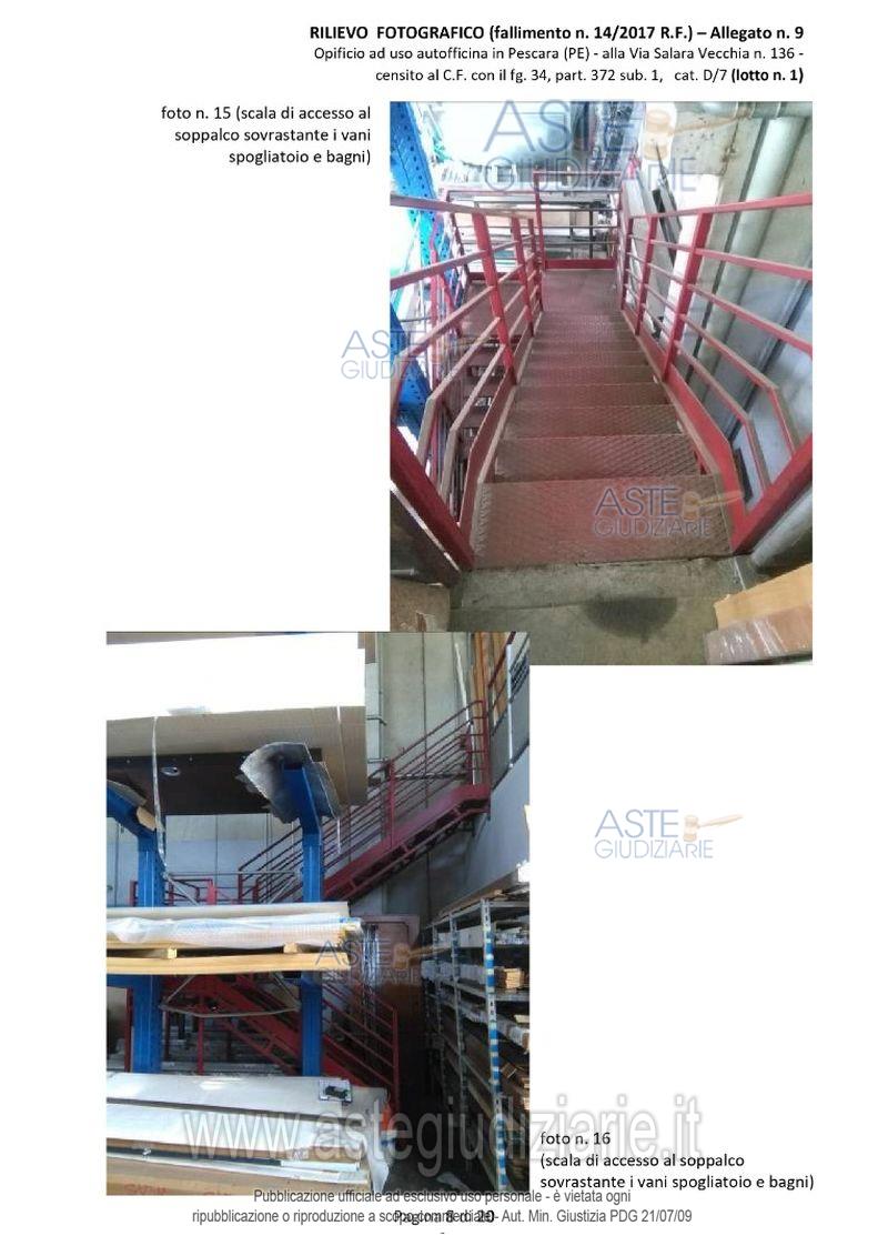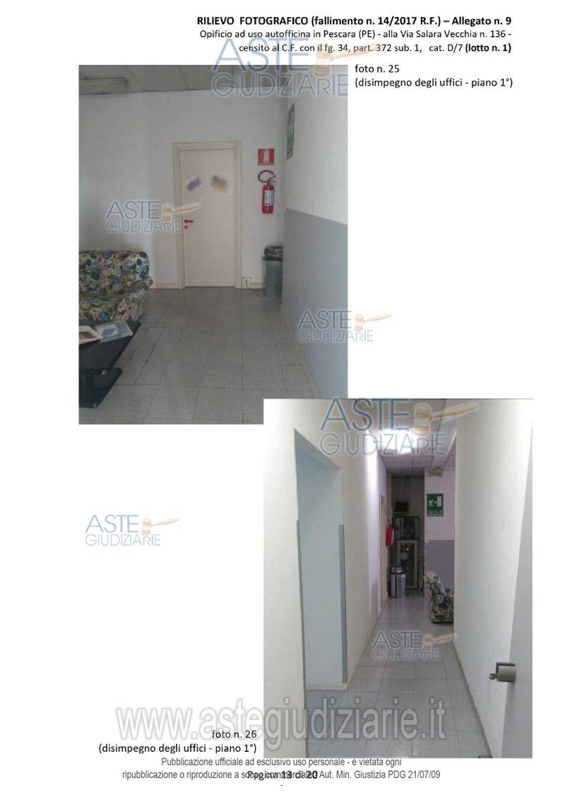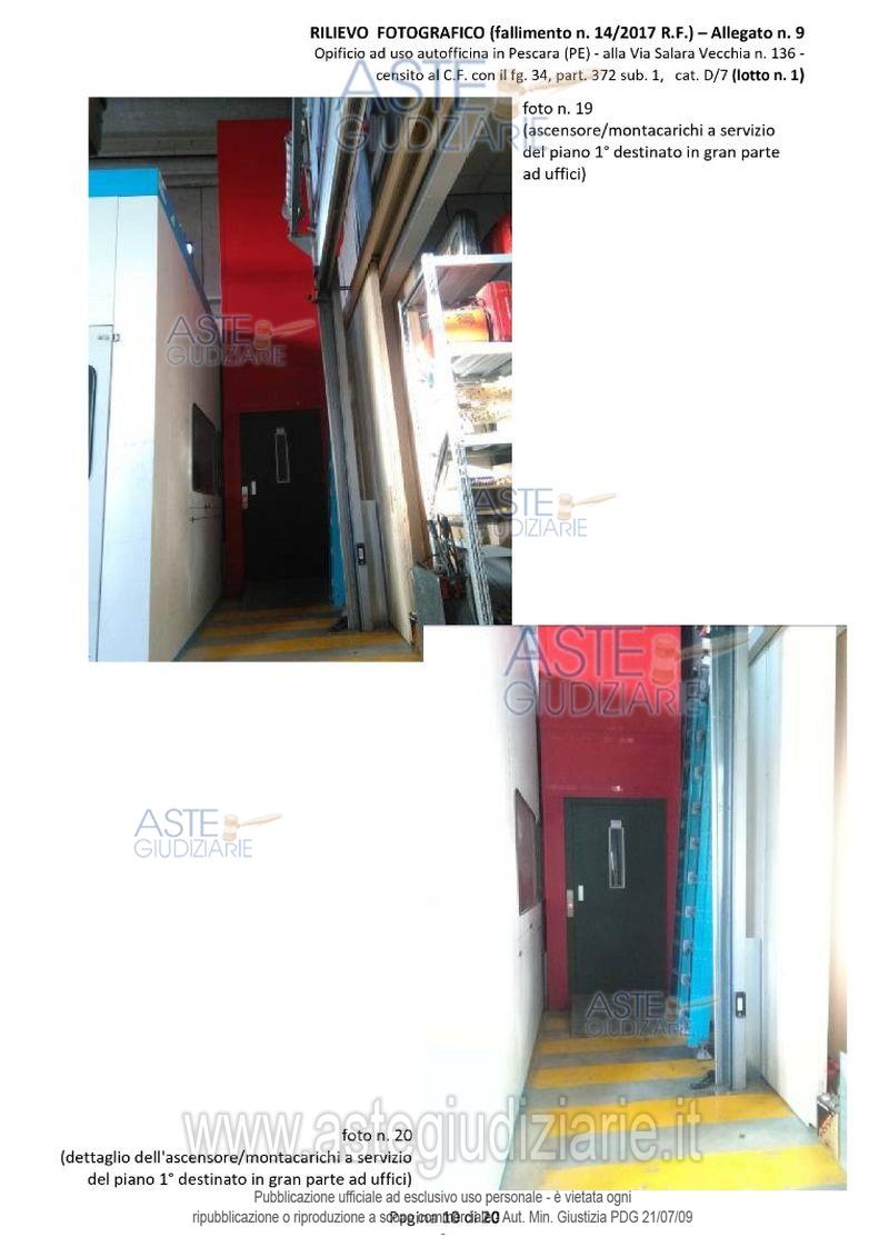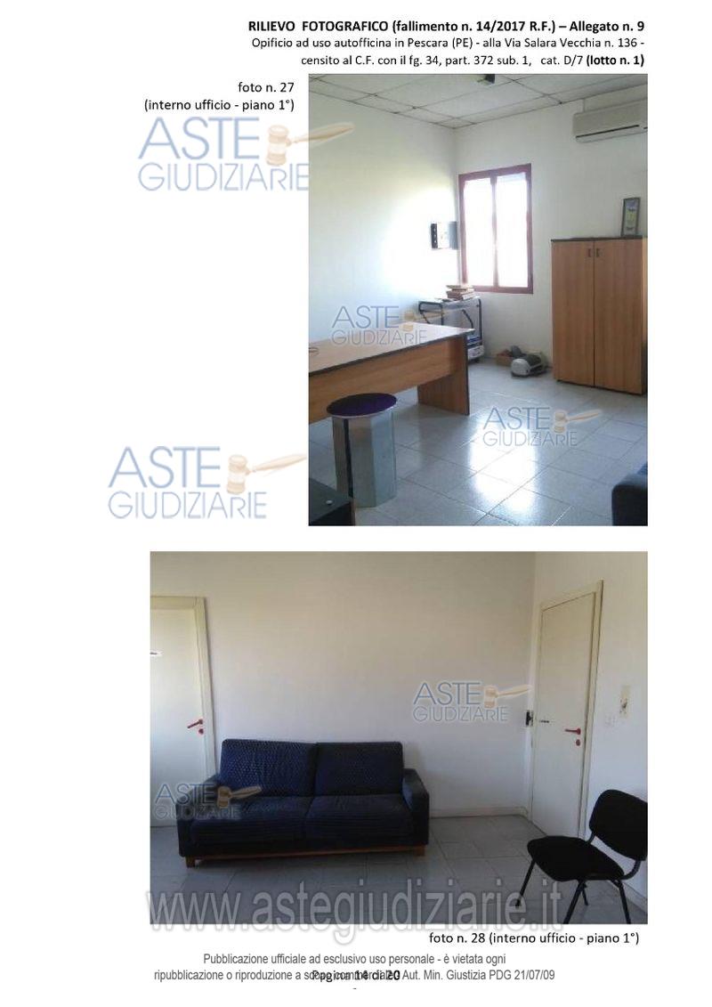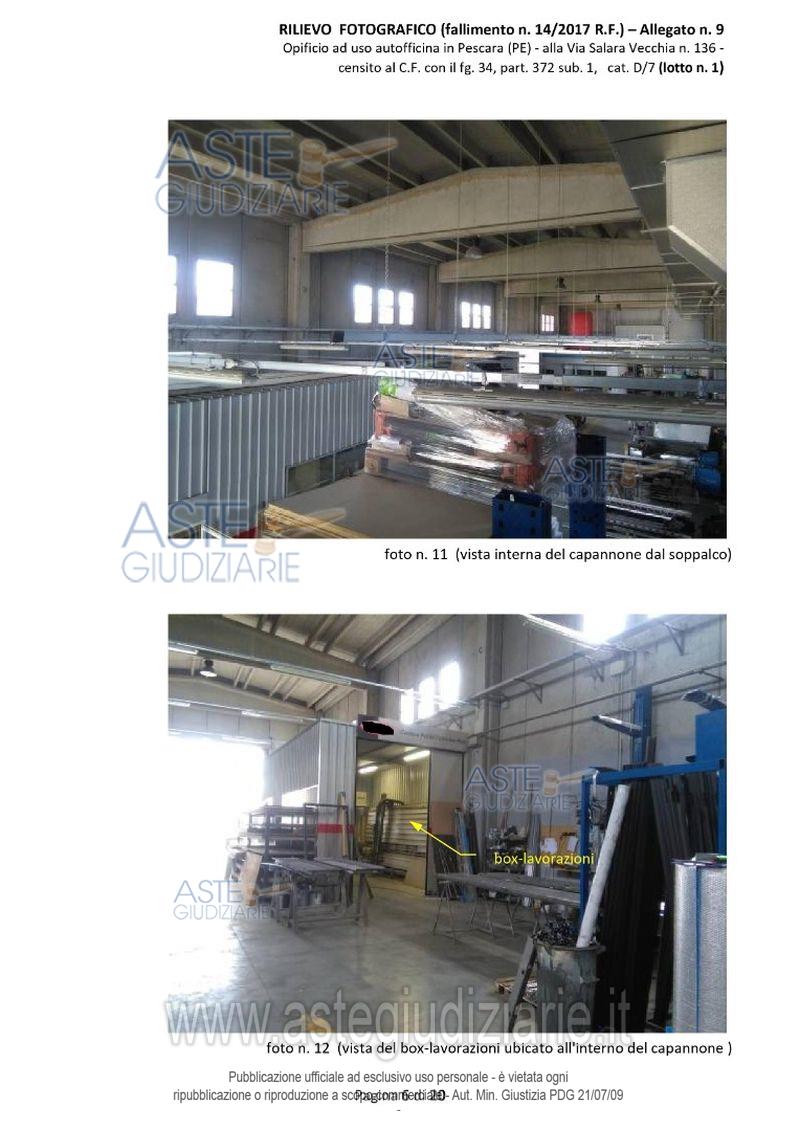 Vendita all'asta Con incanto - LOTTO 1: Diritto di piena proprietà per l'intero (1/1) immobile sito in Pescara alla Via Salara Vecchia n.136 costituito da intero fabbricato, da cielo a terra, parzialmente soppalcato, ad uso industriale al piano terra con annessi Uffici al piano primo, con circostante area di superficie, tra coperto e scoperto, di mq. 2454 circa, sulla quale insistono anche un locale prefabbricato utilizzato come box deposito, una cabina di trasformazione elettrica ed una porzione di area destinata a parcheggio ed area di manovra. Prezzo base € 312.824,54. Data vendita 31/03/2026 ore 15:30. Giudice Federica Colantonio. Curatore Avv. Ludovico De Benedictis - Email "segreteria.debenedictis@gmail.com"; Tel. 0852056417. Rif. Tribunale di Pescara - Fallimentare (nuovo rito) n. 14/2017