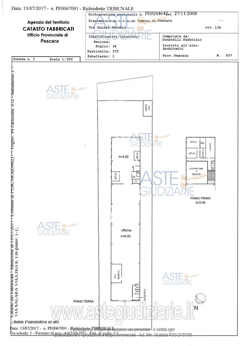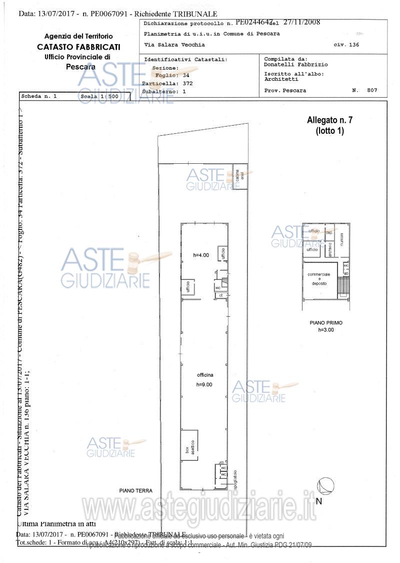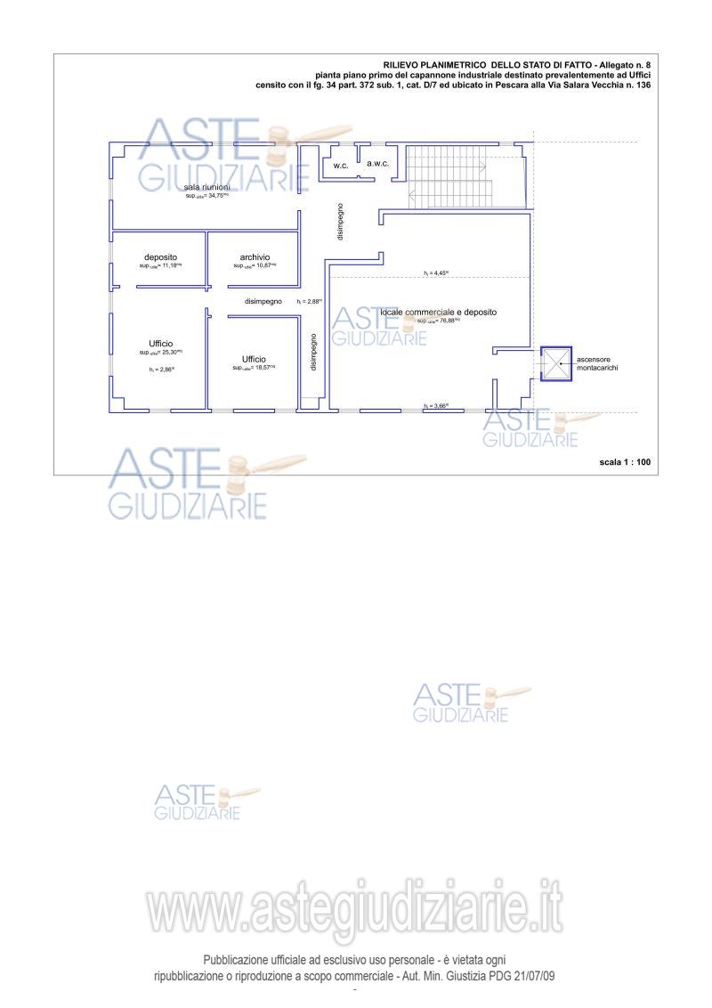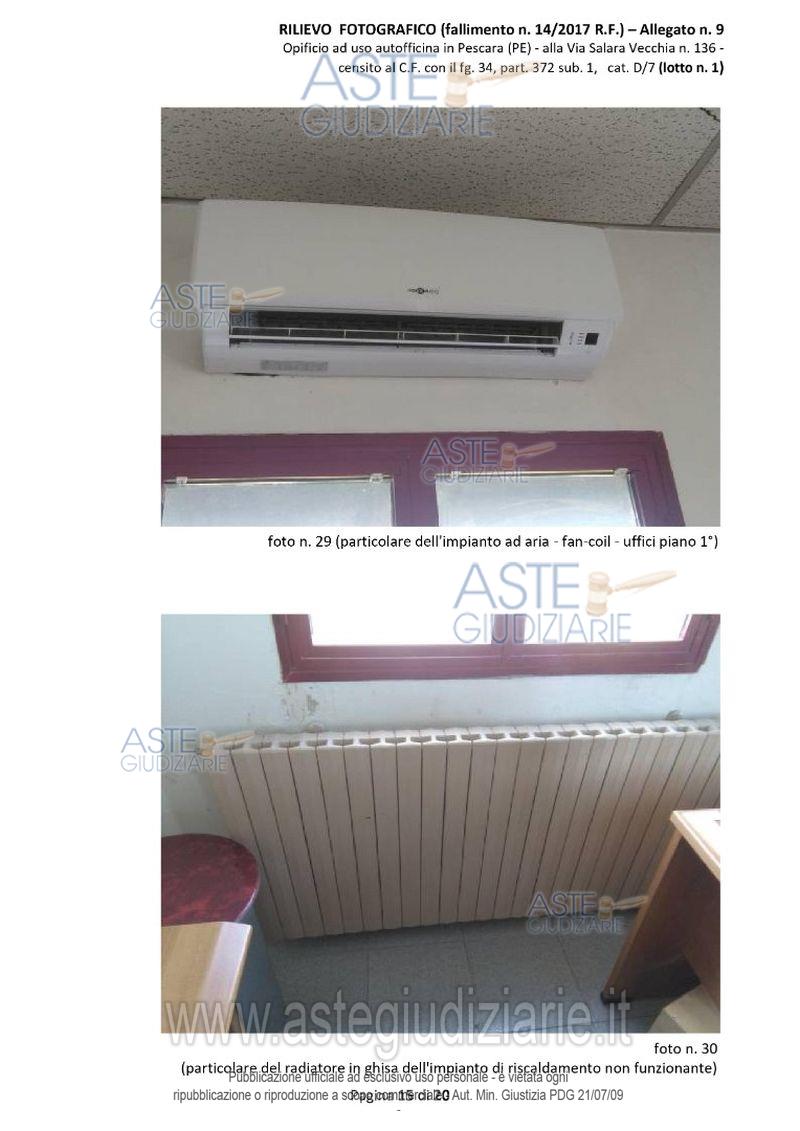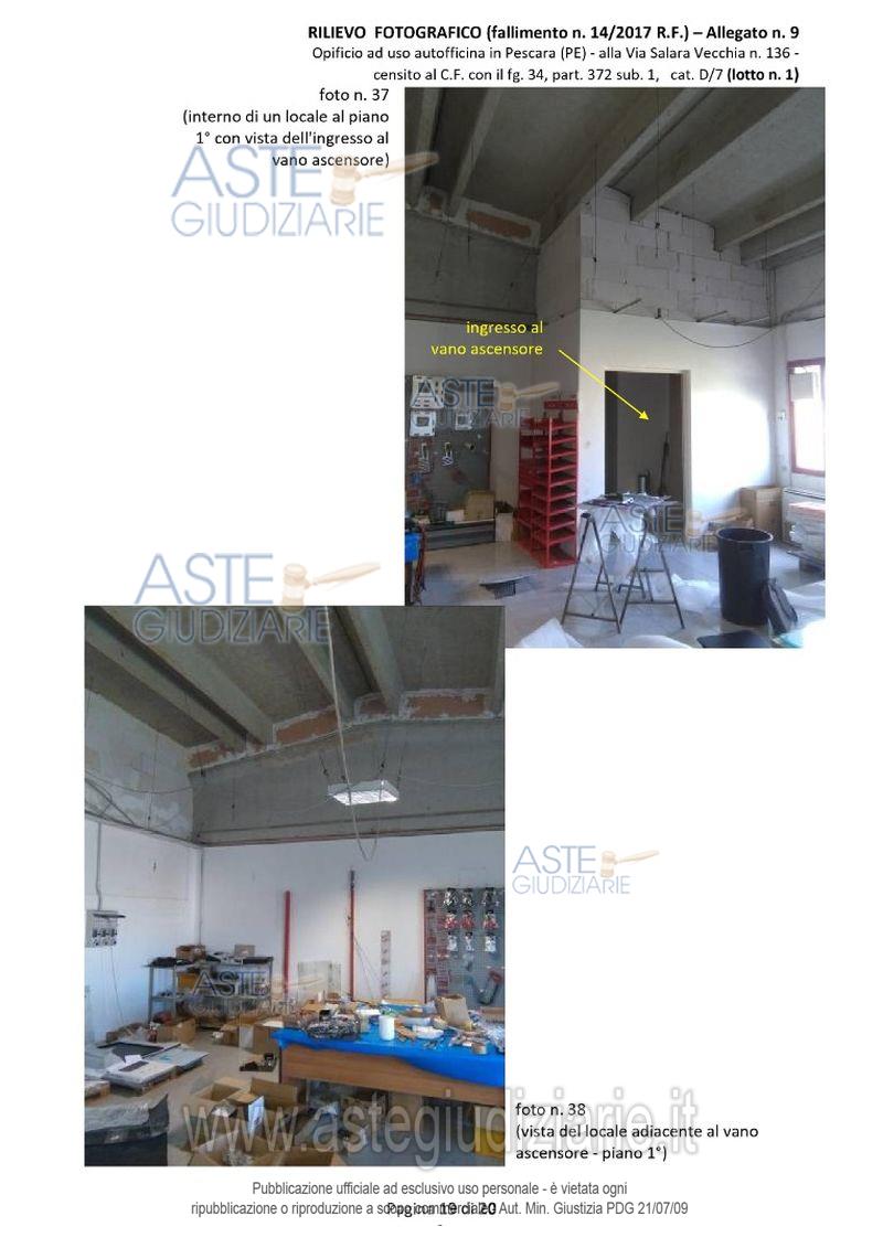 Vendita all'asta Con incanto - LOTTO 1: Diritto di piena proprietà per l'intero (1/1) immobile sito in Pescara alla Via Salara Vecchia n.136 costituito da intero fabbricato, da cielo a terra, parzialmente soppalcato, ad uso industriale al piano terra con annessi Uffici al piano primo, con circostante area di superficie, tra coperto e scoperto, di mq. 2454 circa, sulla quale insistono anche un locale prefabbricato utilizzato come box deposito, una cabina di trasformazione elettrica ed una porzione di area destinata a parcheggio ed area di manovra. Prezzo base € 312.824,54. Data vendita 31/03/2026 ore 15:30. Giudice Federica Colantonio. Curatore Avv. Ludovico De Benedictis - Email "segreteria.debenedictis@gmail.com"; Tel. 0852056417. Rif. Tribunale di Pescara - Fallimentare (nuovo rito) n. 14/2017