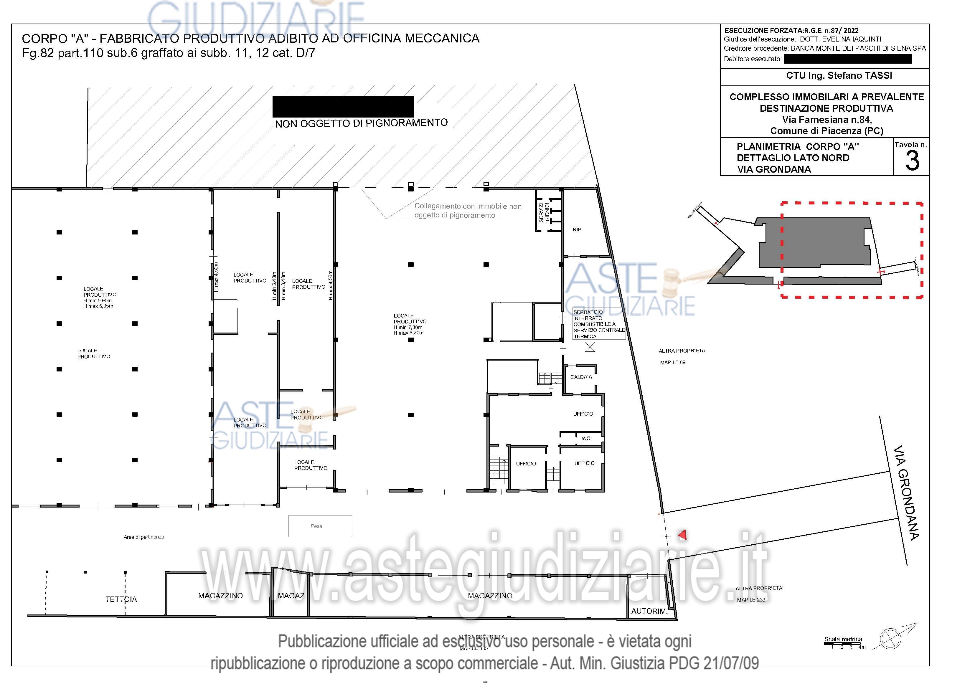 Vendita all'asta Senza incanto, con gara telematica asincrona - LOTTO 1: Piena proprietà di unità immobiliari a prevalente destinazione produttiva adibite ad officina meccanica comprendente anche uffici, appartamenti, tettoie e piazzali. Prezzo base € 763.341,00 (offerta minima € 572.505,75). Data inizio operazioni di vendita: 17/02/2026 ore 14:30. Giudice Esecuzione Giudice. Professionista delegato alla vendita Not. Silvia Bricchi - Email "sbricchi@notariato.it". Custode Giudiziario Avv. Silvia Opici - Email "silviaopici@libero.it"; Tel. 0523331990. Rif. Tribunale di Piacenza - Esecuzione immobiliare post legge 80 n. 87/2022