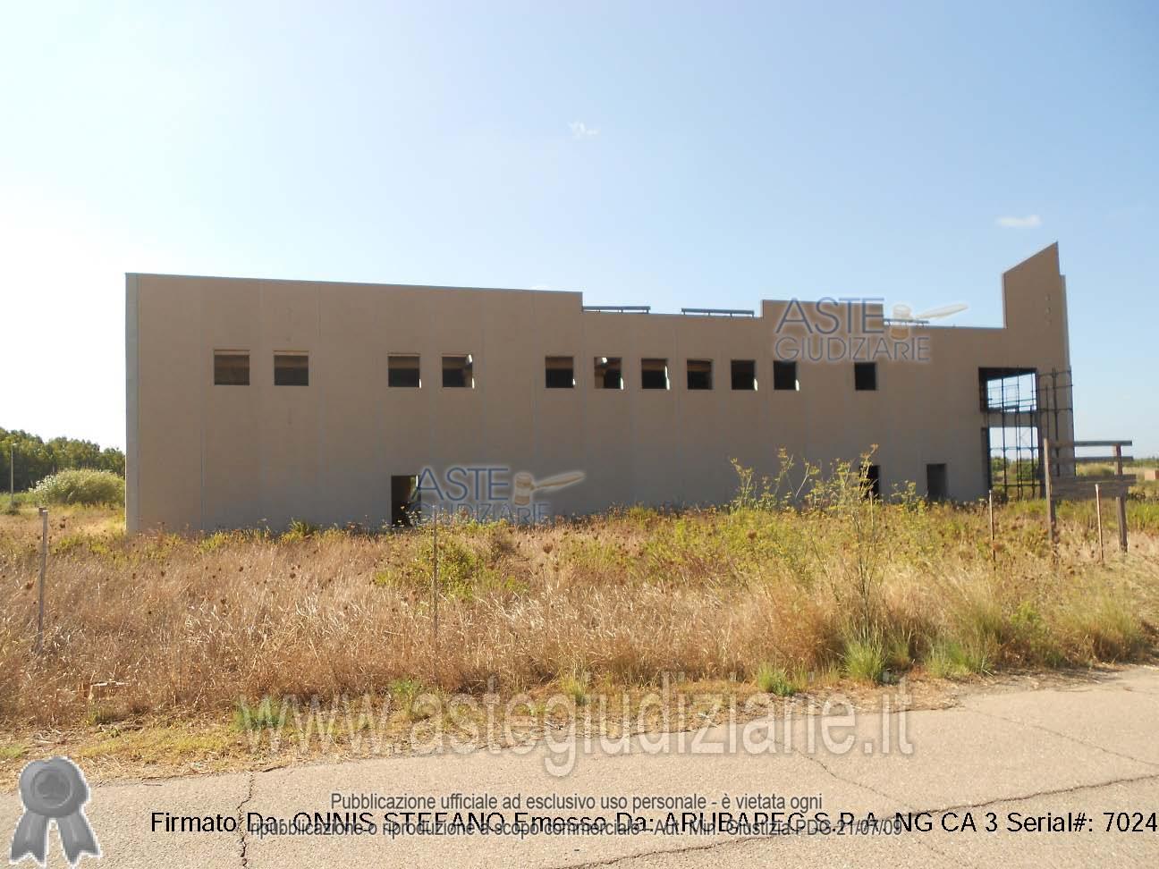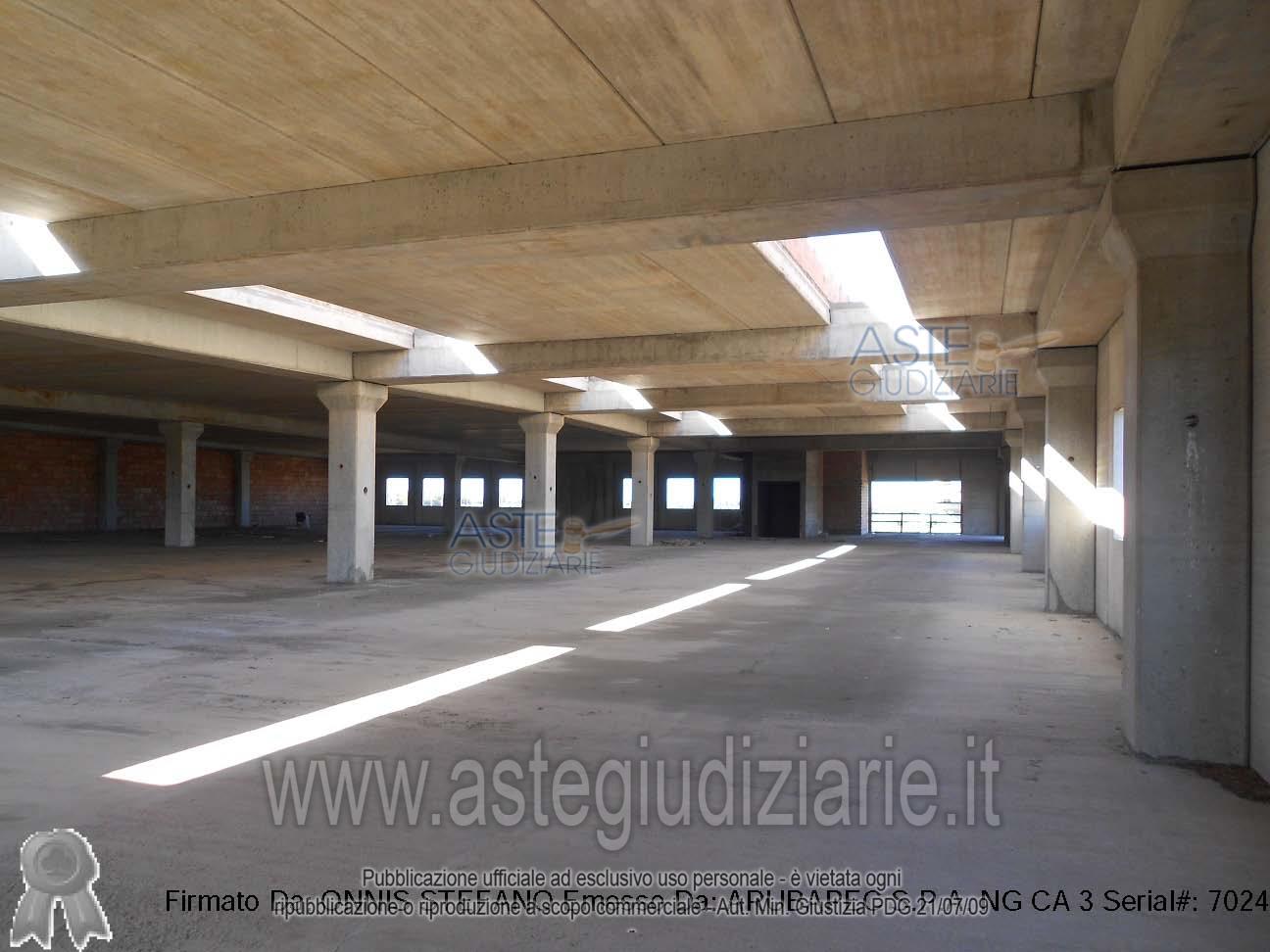 Vendita all'asta Senza incanto, con gara telematica asincrona - LOTTO 1: Full ownership rights of an industrial shed, currently in a raw state, complete only in the prefabricated structural parts consisting of the frame structure, floor slabs, and external walls. The lot, on which the building under construction sits, has a total area of 9,898.30 square meters and is easily accessible through the existing road network. According to the project data, the building had the following characteristics: located in a position almost central to the lot, rectangular in plan, with a covered area of 2,980.21 square meters and hosting rooms arranged on two levels. The outdoor areas are planned for parking, green spaces arrangement, and a logistics area for vehicle parking. . Prezzo base € 195.454,57 (offerta minima € 146.590,93). Data inizio operazioni di vendita: 21/04/2026 ore 11:00. Giudice Dott. Bruno Malagoli. Custode Giudiziario Aste Giudiziarie Inlinea S.P.A. - Email "commissionarioAT@astegiudiziarie.it"; Tel. 0586 201480. Curatore Dott. Gianmario Serri. Rif. Tribunale di Cagliari - Fallimentare (nuovo rito) n. 48/2017
