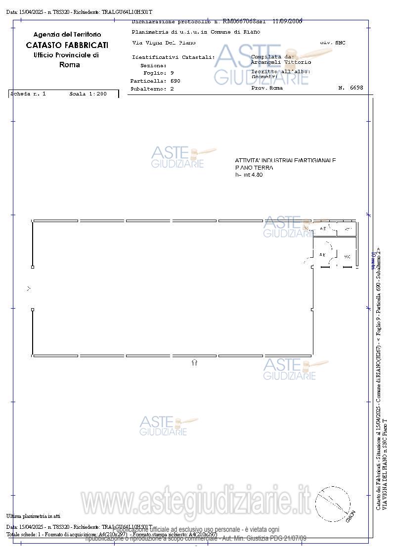 Vendita all'asta Senza incanto, con gara telematica asincrona - LOTTO UNICO: CAPANNONE INDUSTRIALE SITO IN RIANO (RM), ATTUALMENTE UTILIZZATO COME LAVANDERIA INDUSTRIALE. Prezzo base € 263.000,00 (offerta minima € 197.250,00). Data inizio operazioni di vendita: 07/07/2026 ore 15:00. Professionista delegato alla vendita: Avv. Adriana Iasciotti - Email "avv.adrianaiasciotti@gmail.com".