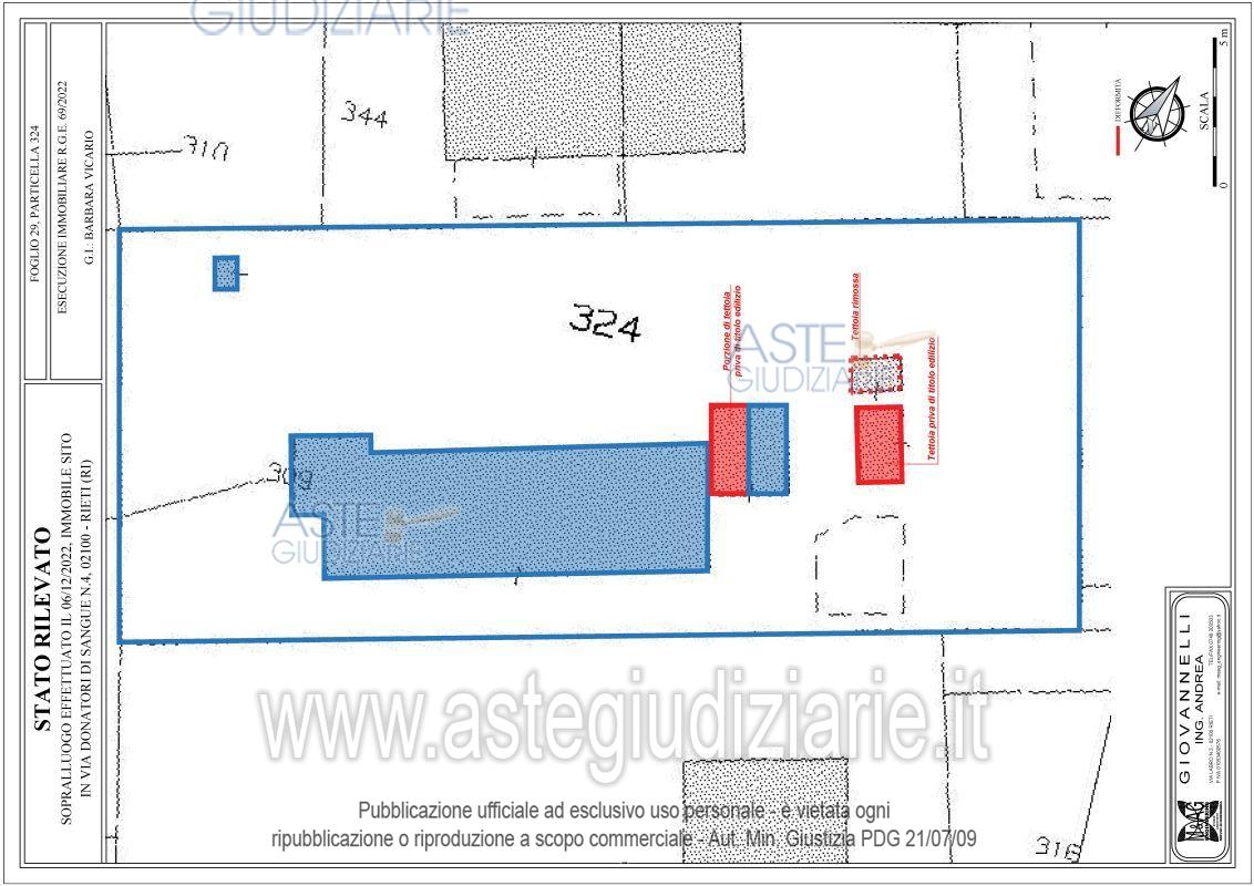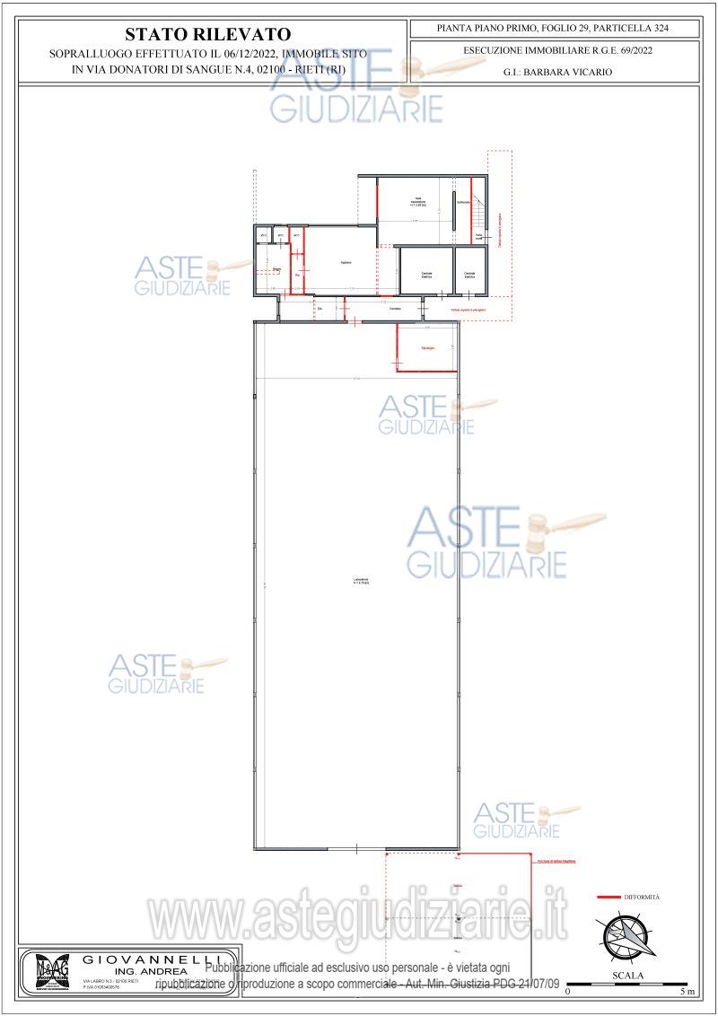 Vendita all'asta Senza incanto, con gara telematica asincrona - LOTTO UNICO: Piena proprietà per la quota 1/1 di capannone industriale sito in Rieti (02100 - RI), Loc. Nucleo Industriale di Rieti-Cittaducale, in Via Donatori di Sangue n. 4. Descrizione: Il bene in questione è un opificio composto da un capannone industriale con locali annessi a servizio dello stesso destinati ad uffici e servizi diversi . Prezzo base € 168.312,31 (offerta minima € 126.234,24). Data inizio operazioni di vendita: 10/12/2025 ore 10:15. Professionista delegato alla vendita Avv. Chiara Giuliani - Email "avv.chiaragiuliani@gmail.com"; Tel. 0765841334. Custode Giudiziario Avv. Chiara Giuliani - Email "avv.chiaragiuliani@gmail.com"; Tel. 0765841334. Rif. Tribunale di Rieti - Esecuzione immobiliare post legge 80 n. 69/2022
