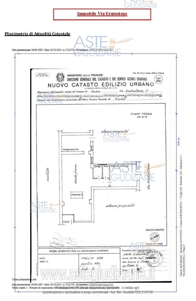 Vendita in attesa dell'emissione del nuovo bando d'asta. LOTTO UNICO: Quota 1/1 del diritto di piena proprietà di opificio sito nel Comune di Roma (zona semicentrale Casilino-Marranella) Via Eratostene n.7, posto al piano terra e composto da n.3 vani, della superficie convenzionale di mq.114,00. Ultimo prezzo base € 36.690,00 (offerta minima € 27.517,50). Giudice Dott. Romolo Ciufolini. Professionista delegato alla vendita Not. Natalia Sgromo. Custode Giudiziario  Ivg Di Roma Srl - Email "pvp@visiteivgroma.it"; Tel. 0689569801.  Rif. Tribunale di Roma - Esecuzione immobiliare post legge 80 n. 1300/2022