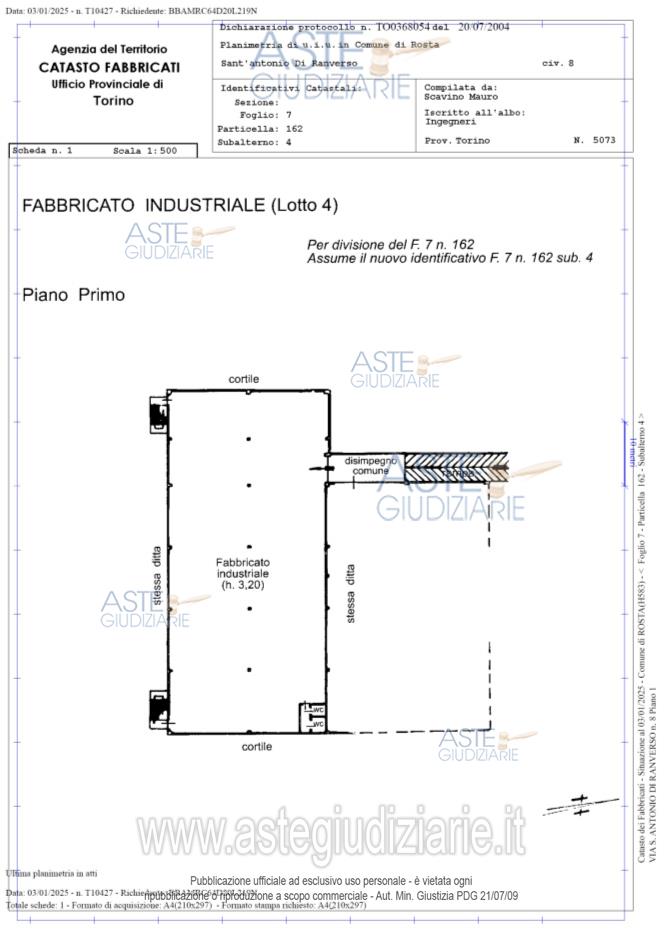 Vendita all'asta Senza incanto, con gara telematica asincrona - LOTTO UNICO: Opificio in Comune di Rosta (TO), in via Sant’Antonio di Ranverso n. 8. Accesso a nord da rampa carraio-pedonale comune, ed a sud da due scale; al piano primo un locale ad uso laboratorio e magazzino. L’unità immobiliare fa parte di un edificio multipiano a 2 piani f.t., a destinazione industriale. Prezzo base € 354.804,00 (offerta minima € 266.103,00). Data inizio operazioni di vendita: 05/05/2026 ore 14:30. Giudice Dott. Anna Castellino. Professionista delegato alla vendita Dott. Amedeo Gerbino - Email "a.gerbino@hotmail.it"; Tel. 01119702089. Custode Giudiziario Ifir Piemonte Ivg Srl - Email "richieste.visite@ivgpiemonte.it"; Tel. 011482822. Rif. Tribunale di Torino - Espropriazione immobiliare (cartabia) n. 881/2024