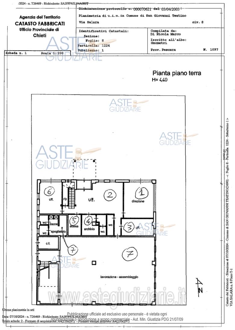 Vendita all'asta Competitiva, con gara telematica asincrona - LOTTO UNICO: Fabbricato industriale adibito ad attività di laboratorio di analisi chimiche industriali e sito in area industriale nel Comune di San Giovanni Teatino (Ch) con annessa tettoia realizzata in struttura metallica e relativa area scoperta costituente pertinenza di fatto (inclusa nella recinzione) del contiguo opificio. Prezzo base € 403.991,28 (offerta minima € 302.993,46). Data inizio operazioni di vendita: 27/01/2026 ore 09:30. Giudice Dott. Federica Colantonio. Custode Giudiziario Dott. Francesco Petitto - Email "fr.petitto@virgilio.it"; Tel. 0854213477. Curatore Dott. Francesco Petitto. Rif. Tribunale di Pescara - Liquidazione giudiziale(cci) n. 40/2024
