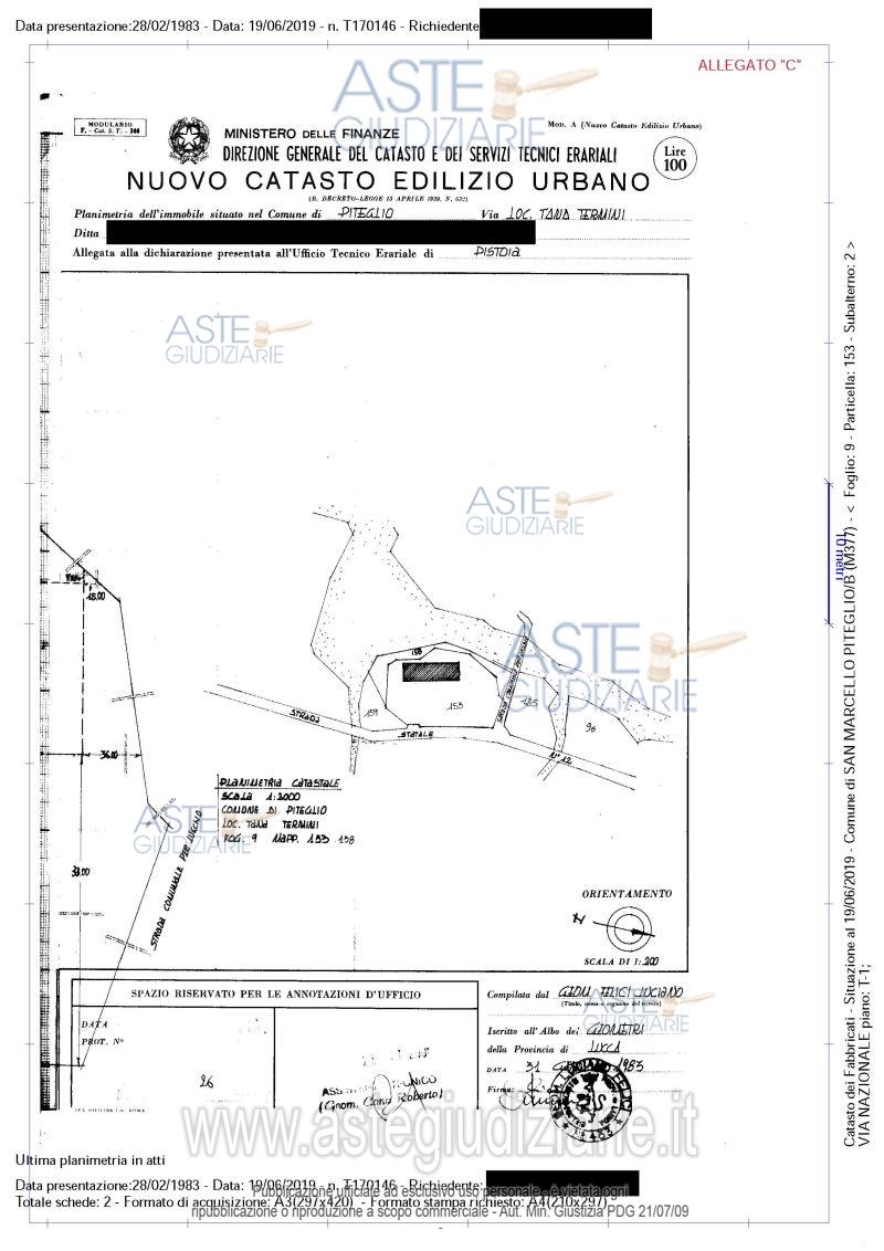Vendita all'asta Senza incanto, con gara telematica asincrona - LOTTO 1: Industrial building with a surrounding exclusive courtyard located in the locality of Tana Termini, in the district of Popiglio, along the State road no. 12 of Abetone and Brennero (or via Nazionale) n.c. 246, with direct access from said State road. The industrial building is articulated on three floors, basement, ground, and first, consisting of a single rectangular structure with the following destinations inside: - On the basement floor, accessible from the outside, it consists of a large room already set up for processing concrete blocks, a warehouse-shed, a warehouse room, and another shed; - On the ground floor, it consists of a workshop, a warehouse with a mezzanine, a space for mechanical vehicles (rooms accessible from the outside), a small waiting room, an office, a storage room, a bathroom, and a storage-warehouse room; - On the first floor, there is an apartment for the caretaker, with its own entrance and staircases branching off from the ground floor, consisting of a hallway, kitchen-diner, living room, three bedrooms, a storage room, a bathroom, and a terrace, as well as an unlivable attic. Prezzo base € 62.933,20 (offerta minima € 47.199,90). Data inizio operazioni di vendita: 26/05/2026 ore 11:00. In caso di più offerte valide si procederà a gara che inizierà il 26/05/2026 ore 11:00 e terminerà il 29/05/2026 ore 11:00. Giudice Dott. Nicoletta Maria Caterina Curci. Professionista delegato alla vendita Dott. Michele Gucci - Tel. 335 5770733. Rif. Tribunale di Pistoia - Nuovo concordato preventivo n. 22/2013