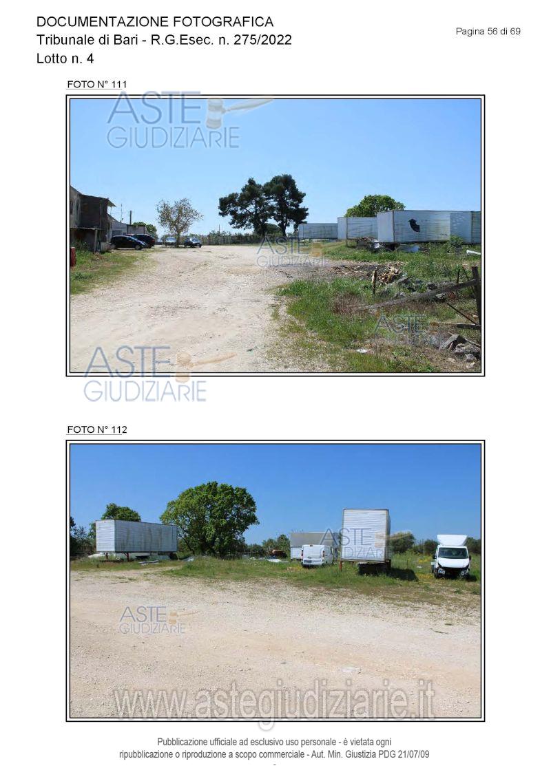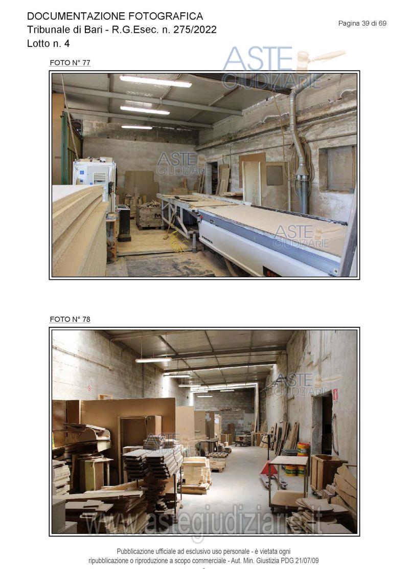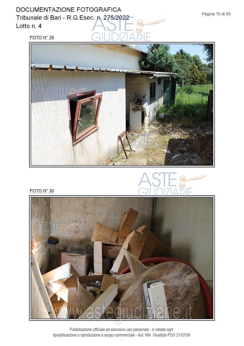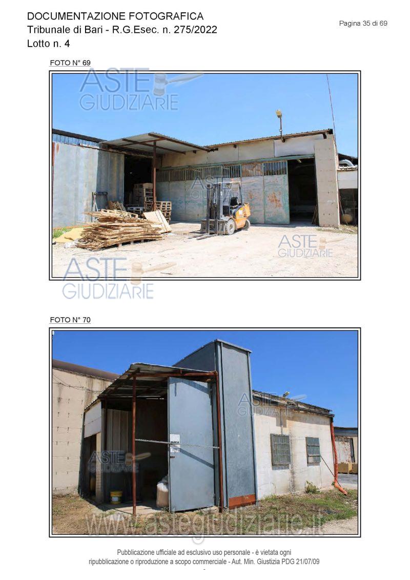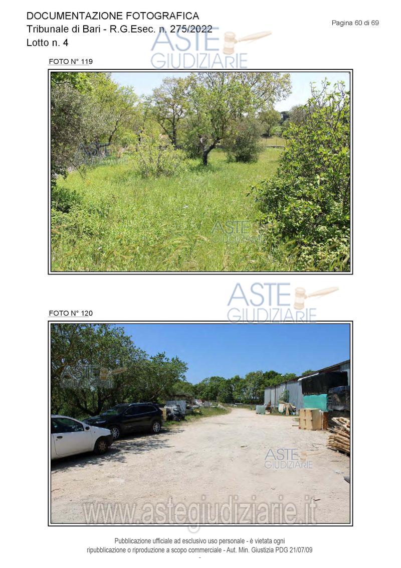 Vendita all'asta Senza incanto, con gara telematica asincrona - LOTTO 4: Piena proprietà degli immobili costituenti un opificio ( due corpi di fabbrica) destinato a laboratorio artigianale e da tre fondi rustici. Prezzo base € 462.462,00 (offerta minima € 346.847,00). Data inizio operazioni di vendita: 15/12/2025 ore 10:00. Giudice Dott. Antonio Ruffino. Professionista delegato alla vendita Not. Francesco Amendolare - Email "famendolare@notariato.it"; Tel. 0803036189. Custode Giudiziario Not. Francesco Amendolare - Email "famendolare@notariato.it"; Tel. 0803036189. Rif. Tribunale di Bari - Esecuzione immobiliare post legge 80 n. 275/2022